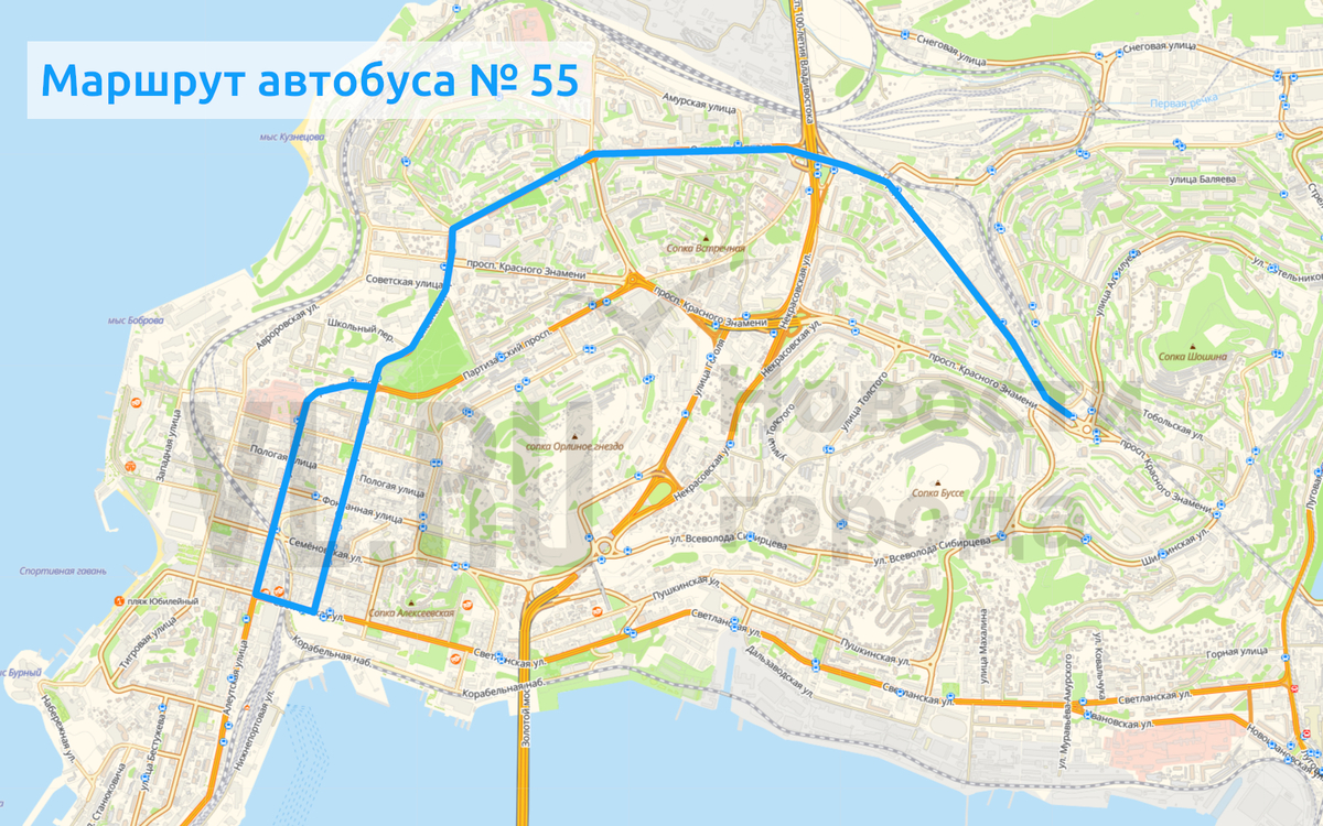 Автобусы № 55 пойдут с остановки «Третья Рабочая» до «Площади Борцов Революции», в обратном направлении – с «Диомида» до «Луговой»;