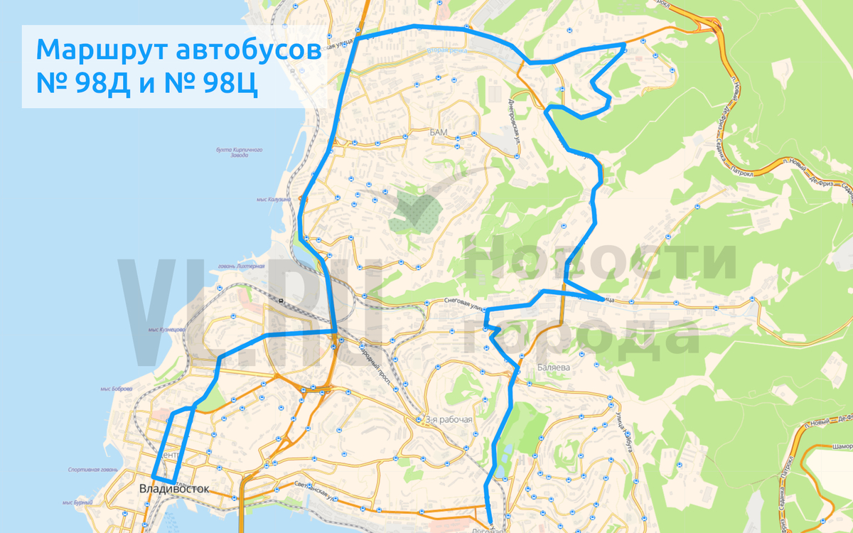 Автобусы № 98Д, 98Ц будут работать по маршруту «Луговая – Снеговая Падь – площадь Борцов Революции – Снеговая Падь – Луговая»;