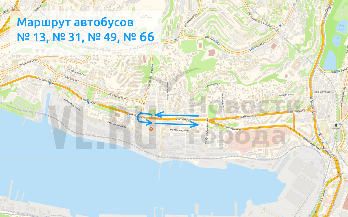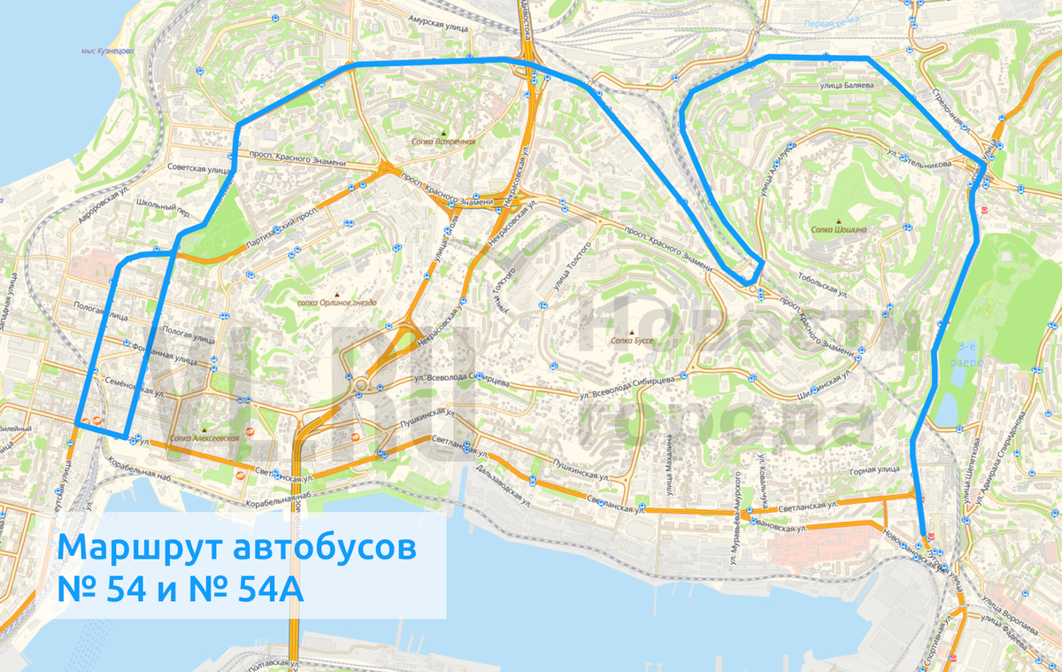 Автобусы № 54, 54А пойдут по маршруту «Луговая – Баляева – 1-я Речка – площадь Борцов Революции – 1-я Речка – Баляева – Луговая»;