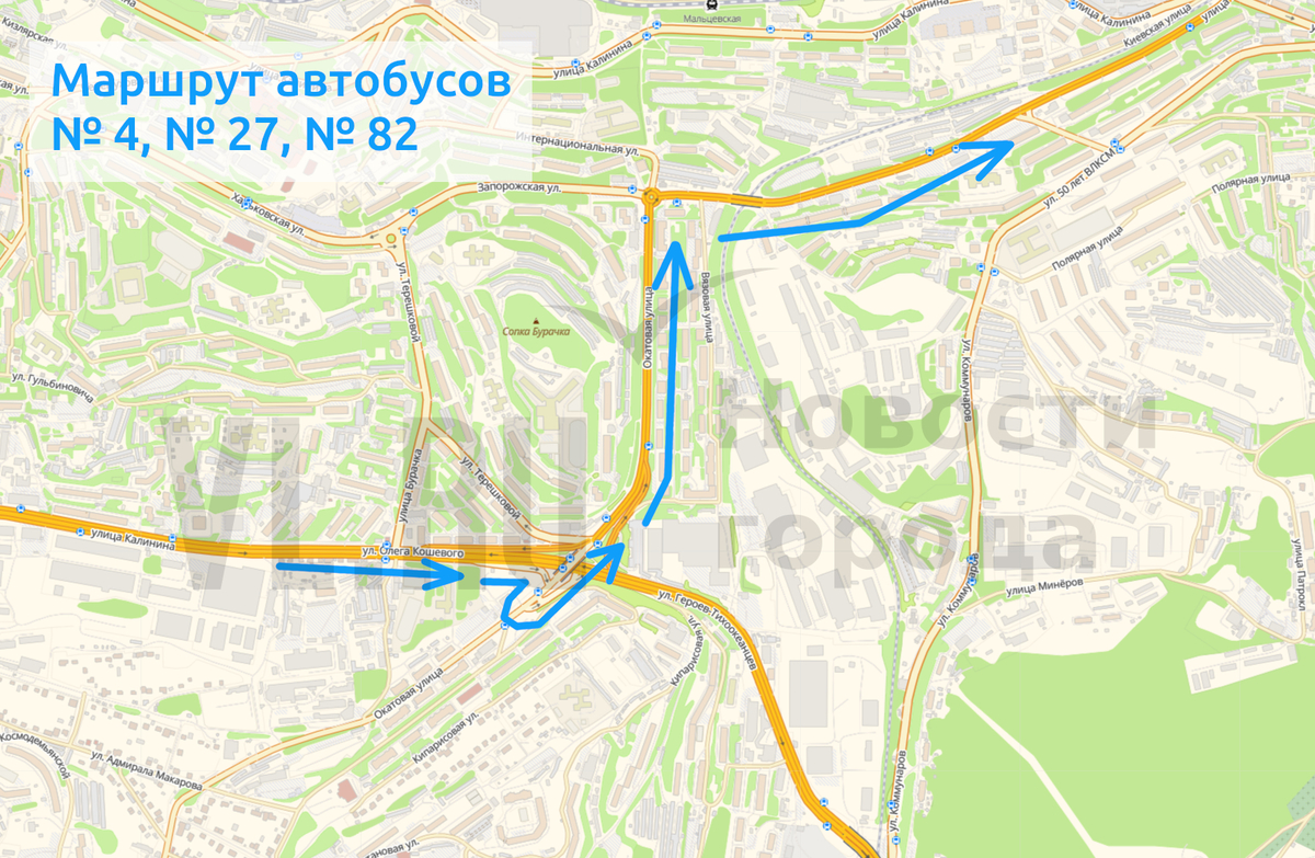 Автобусы № 4, 27, 82 будут идти до «Окатовой», далее по улице Вилкова и установленному маршруту.