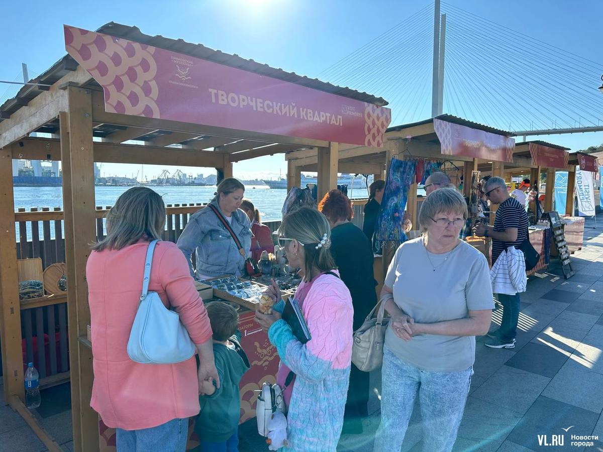 На набережной Цесаревича сегодня проходит первый день фестиваля «Приморские муссоны». По программе он идёт уже почти два часа. Сейчас ещё не все площадки работают, но уже потихоньку открываются, играет музыка, есть фуд-корт.