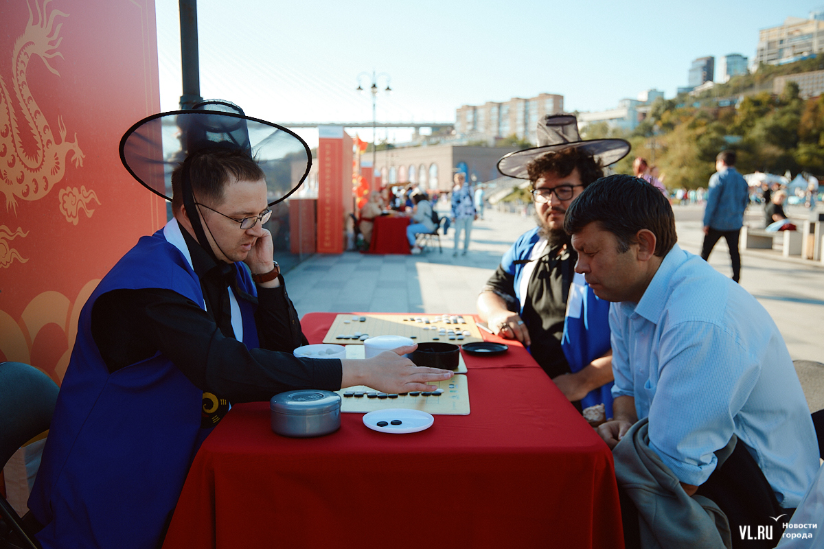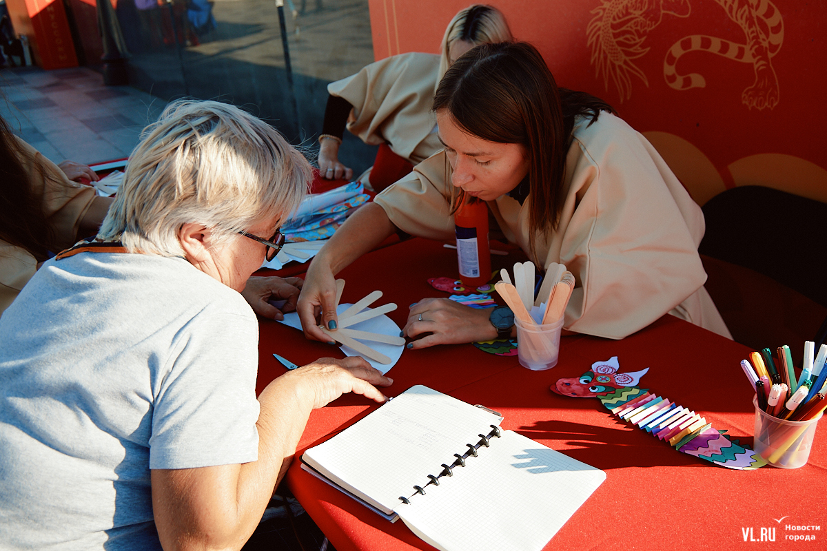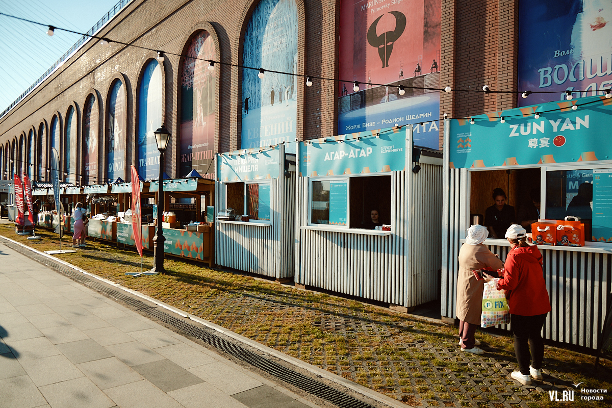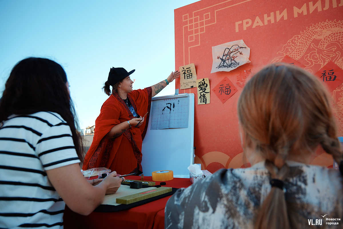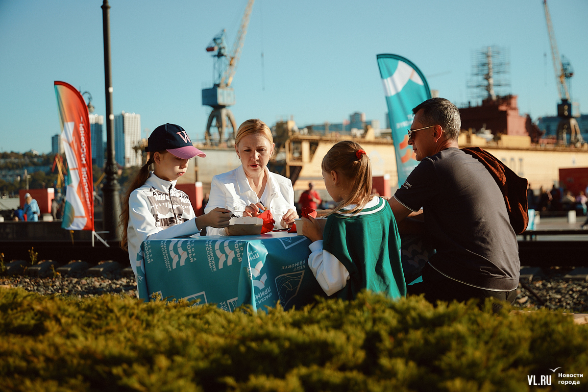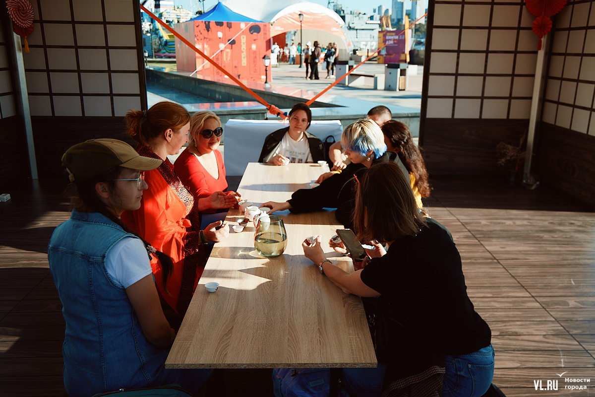 «Приморские муссоны» с азиатскими нотками продолжатся завтра. Здесь будут расписывать зонтики и керамические тарелки, готовить блюда дальневосточной кухни, делать разминку с «Адмиралом», проведут пять экскурсий – подробная программа здесь. В 16:00 будут есть на скорость хинкали, русские и китайские пельмени, пянсе и хот-доги. Призы – билеты в фан-зону концерта певицы МакSим, которая будет выступать в этот вечер в 20:00.