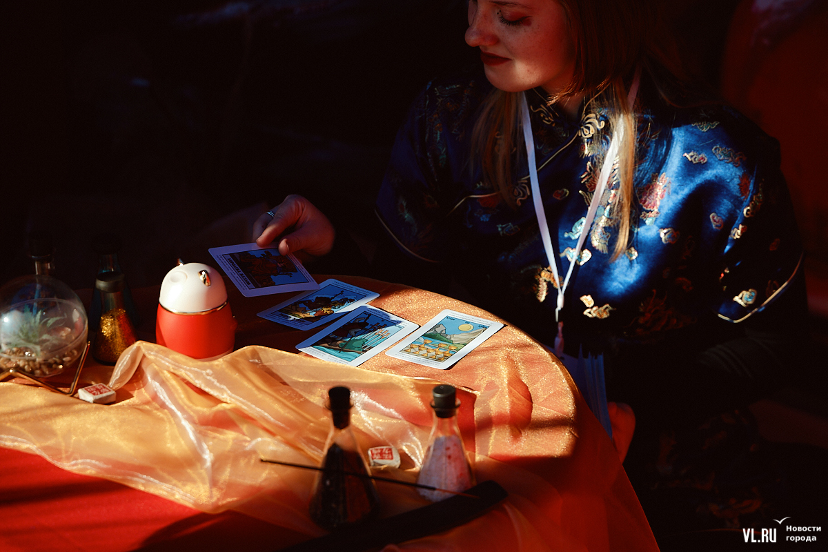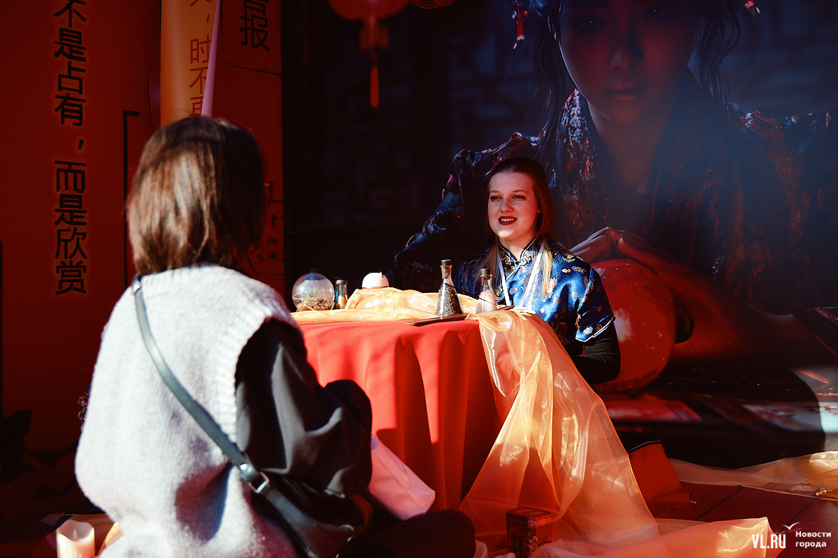 Взрослым предлагали зайти в шатёр предсказаний и узнать ответ на любой вопрос. Самым интересным в этом павильоне было то, как китайская культура переплетается с европейскими картами Таро. К сожалению, ответить на этот вопрос корреспонденту Новостей VL.ru не смогли ни люди, ни магия.