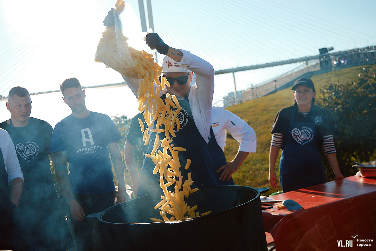 На набережной Цесаревича в пятницу, 27 сентября, стартовал фестиваль «Приморские муссоны» – «Грани Миллионки». Здесь можно было сыграть в го, узнать судьбу у гадалки, послушать деревянные барабаны, посмотреть, как готовят кимчи, смастерить бумажный веер. Но самой долгожданной, пожалуй, была бесплатная жареная картошка с грибами и луком, приготовленная шефами популярных ресторанов Владивостока. Завтра фестиваль продолжится.