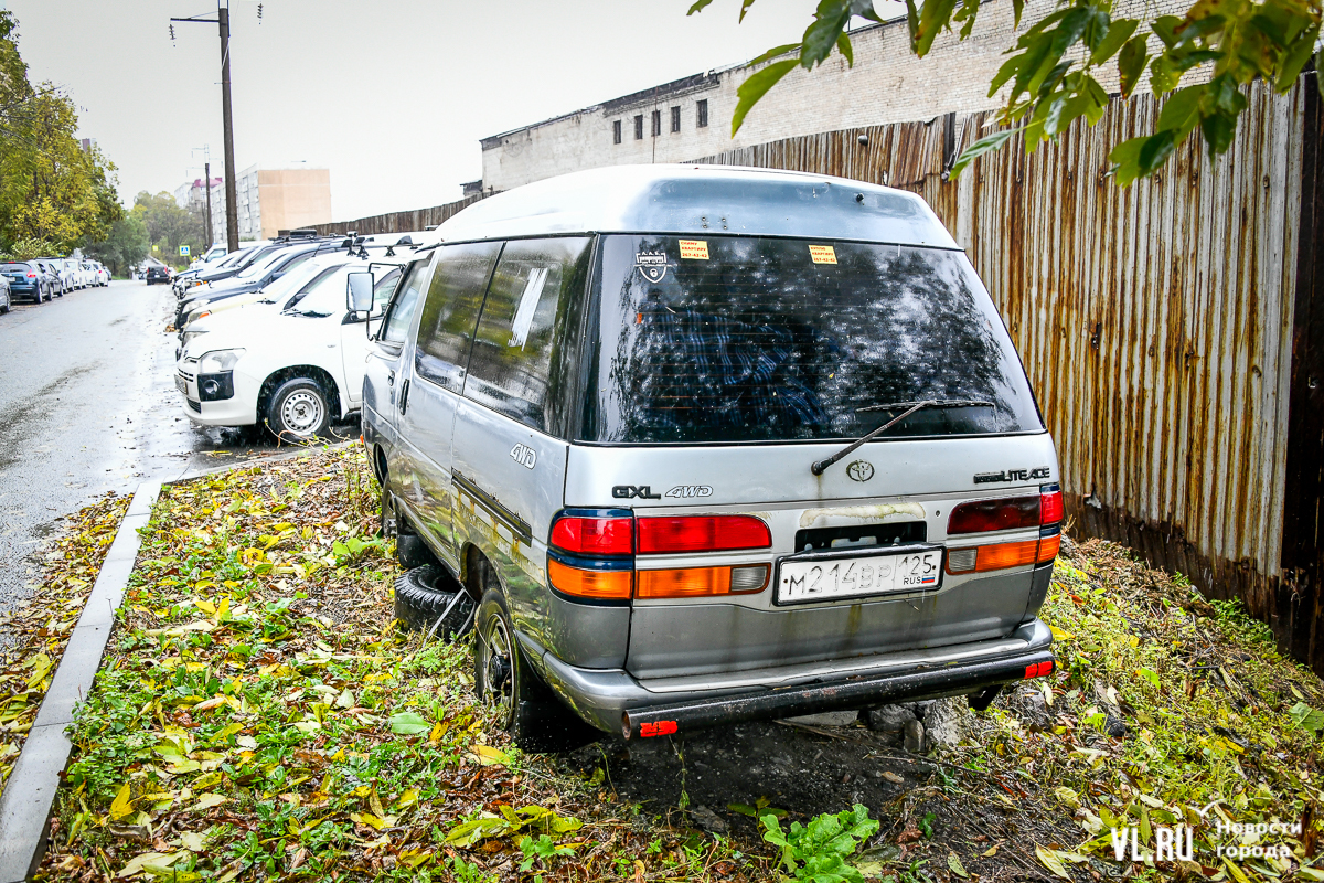 Toyota Lite Ace на Нерчинской, 52 тоже запретили вывозить. По ней вопросов также почти нет. Микроавтобус, конечно, по виду действительно давно стоит на месте, а чёрная краска с номера сильно выцвела, но в целом сильных повреждений, глубокой грязи и пыли на машине нет.