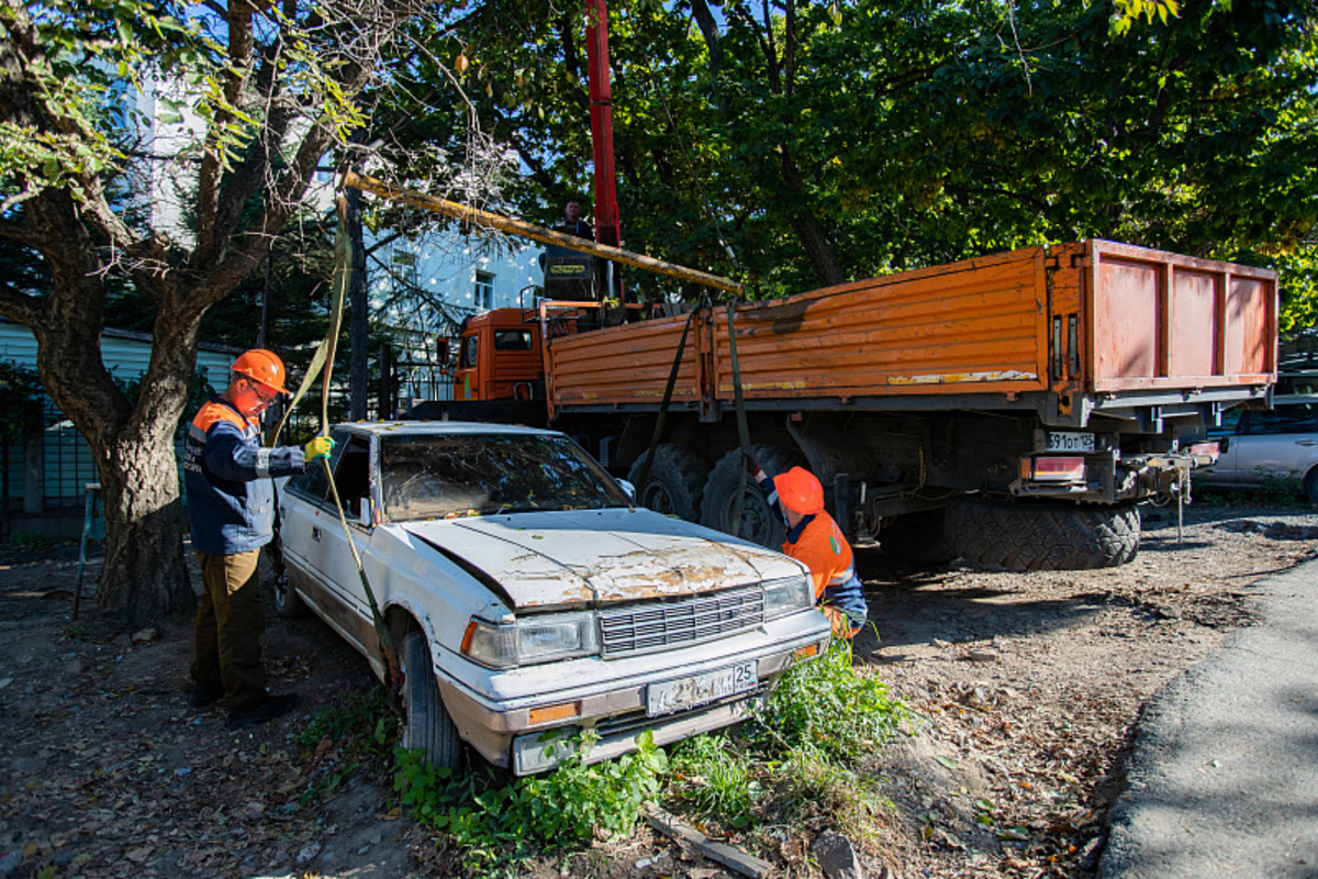 Администрация Владивостока впервые вывозит 14 брошенных автомобилей с госномерами. Ещё 24 транспортных средства, опознанных районными административно-территориальными управлениями (АТУ) как потенциально бесхозные, решено не убирать – за недостаточностью признаков, позволяющих признать их брошенными или разукомплектованными.