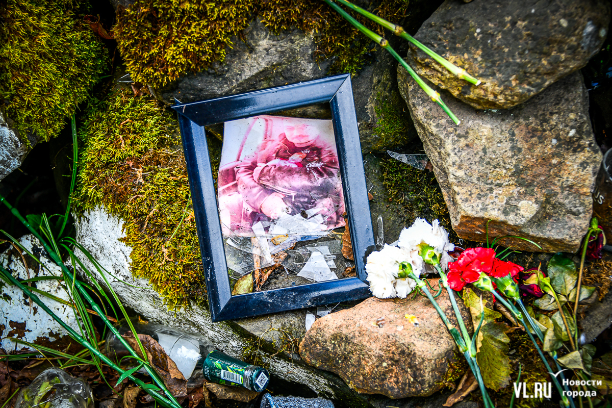 Мемориал мотоциклистам появился между Океанской и Шаморой в 2006 году. Вместе с товарищами его поставил байкер Игорь Соколов, Синус – сейчас он живёт в Камбодже. Байкеры выбрали это место, потому что часто здесь собираются и пробеги нередко стартуют отсюда. За памятником ухаживают – и сейчас, в октябре, на горе замшелых камней рядом с искусственными стоят живые цветы, свечи (в том числе из ДВС), мотошлемы и фотографии. У некоторых, правда, разбиты рамки. Элементами ограды стали ободы колёс мотоцикла.