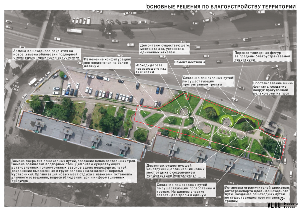 Во Владивостоке мэрия представила горожанам концепцию благоустройства сквера в районе домов № 96 и 98 на улице Некрасовской. Фактически это транзитная территория в районе въезда на Некрасовский путепровод и часть гостевого маршрута. Общественные обсуждения прошли 3 октября в школе № 56. Этот сквер весной стал победителем голосования, поэтому в 2025 году его обновят по федеральной программе «Формирование комфортной городской среды».