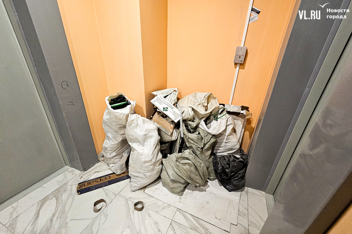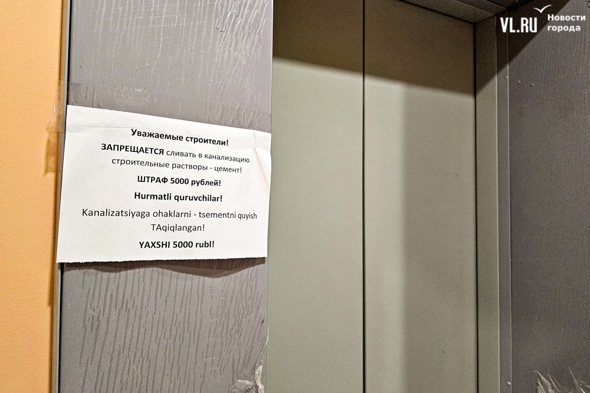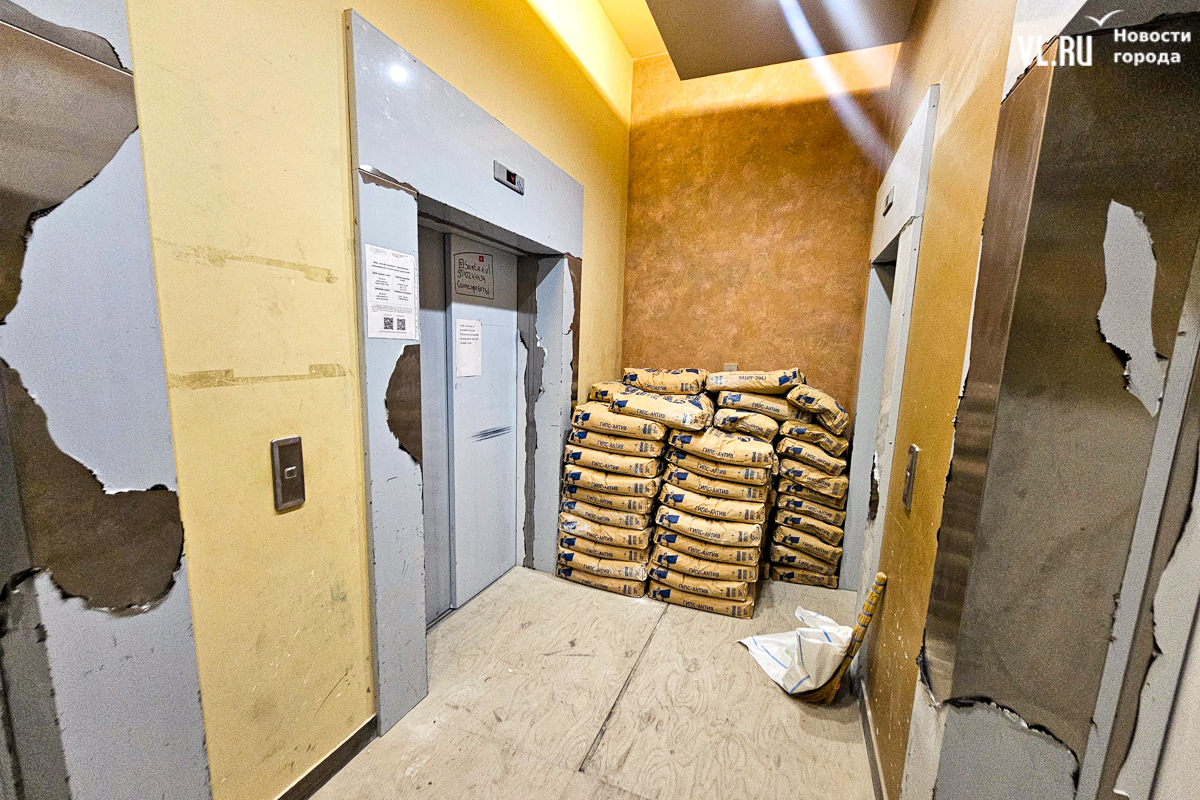 Проблемы тех самых «как минимум пяти лифтов» из существующих восьми, по мнению застройщика, были устранены, значит, они могут быть запущены в нормальную эксплуатацию. Для оставшихся трёх едут детали, когда их отремонтируют, неизвестно. А сами лифты ходят в режиме погрузки, вызвать их на нужный этаж можно только из кабины, поэтому корреспонденты Новостей VL.ru так и не смогли в них проехаться.