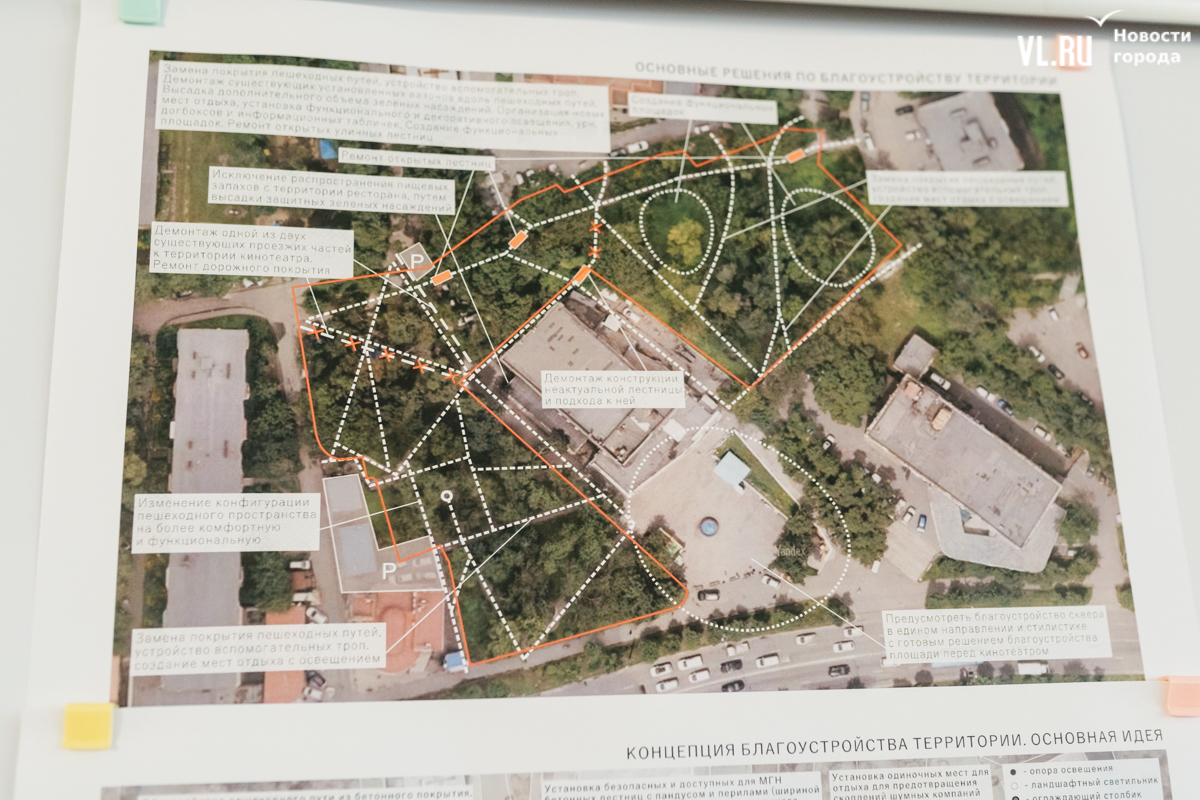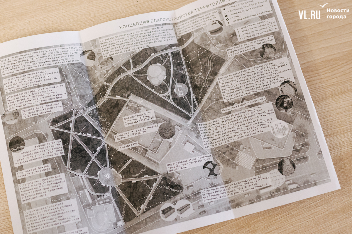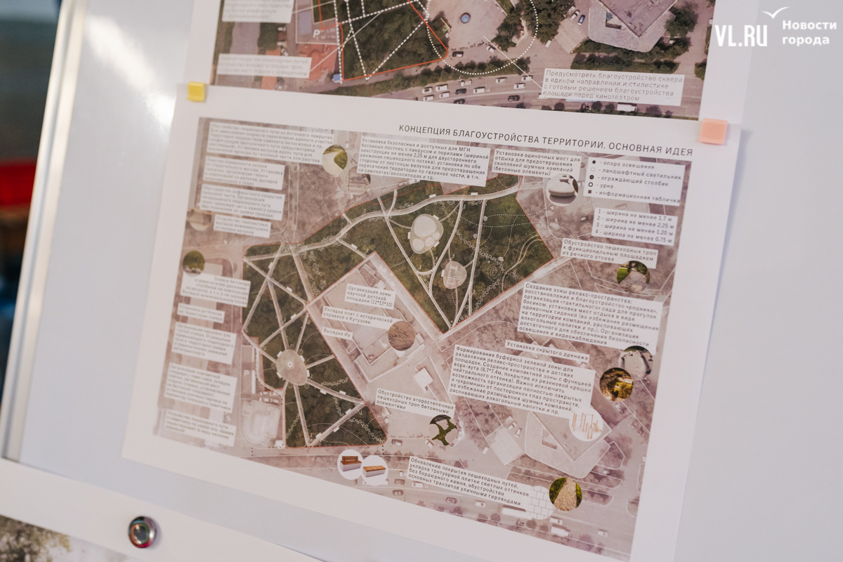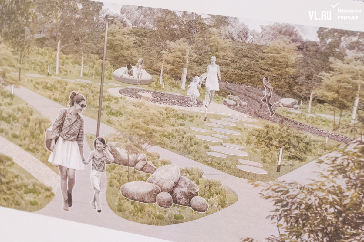 Как отметила и. о. директора МКУ «Зелёный Владивосток» Анастасия Лакида, это пока основная концепция, вслед за которой, с учётом пожеланий жителей, за детализацию и технические решения возьмутся проектировщики. Тем не менее общий облик уже читается.