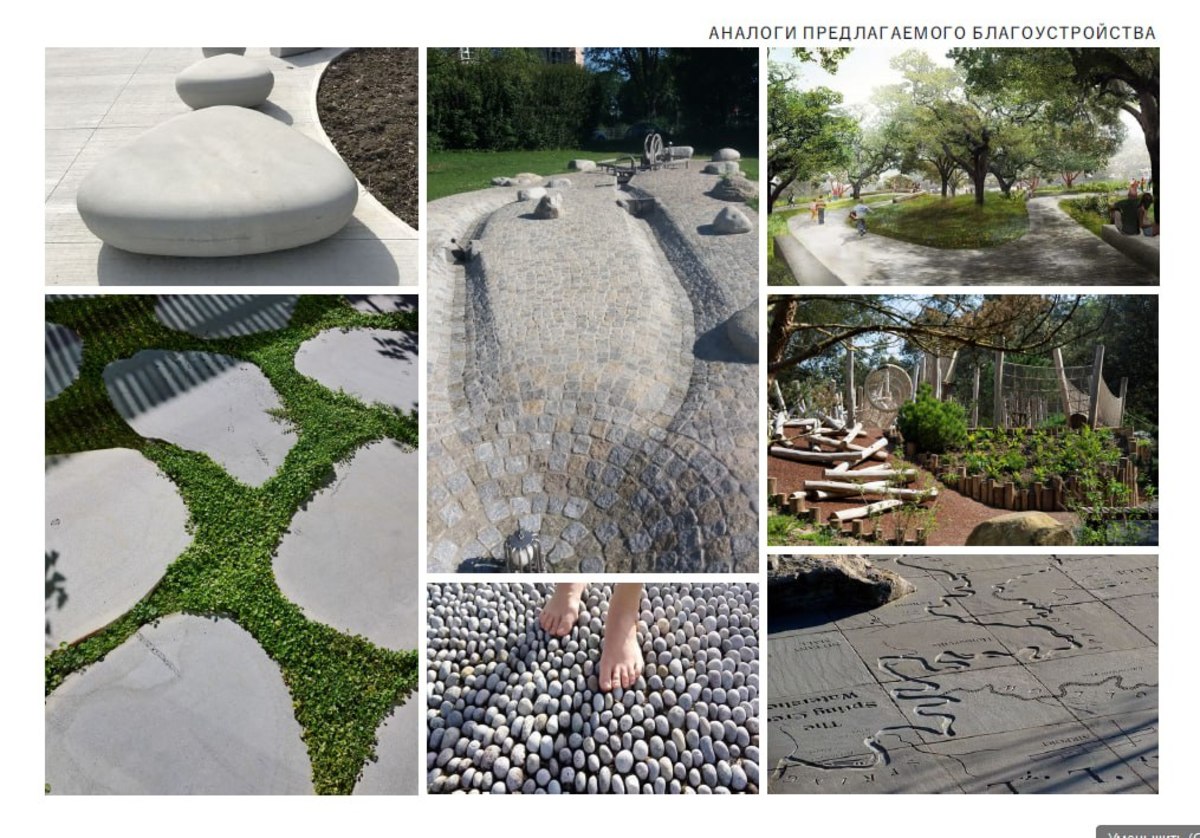 Жители отмечали, что во время дождей здесь «оживает» родник – его русло решено грамотно оформить, а в конце потока сделать сброс воды в ливневку. В сухие же периоды это будет ландшафтный сухой ручей.