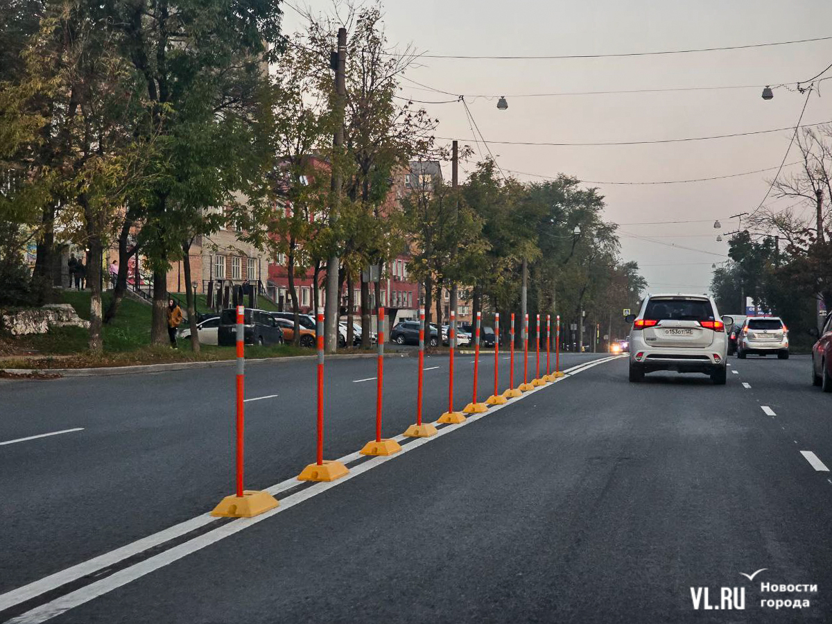 Корреспонденты Новостей VL.ru утром в среду проехались по улицам, где минувшей ночью устанавливали яркие столбики, и убедились, что делиниаторы своё дело делают: пока на этих участках водители ПДД не нарушают.