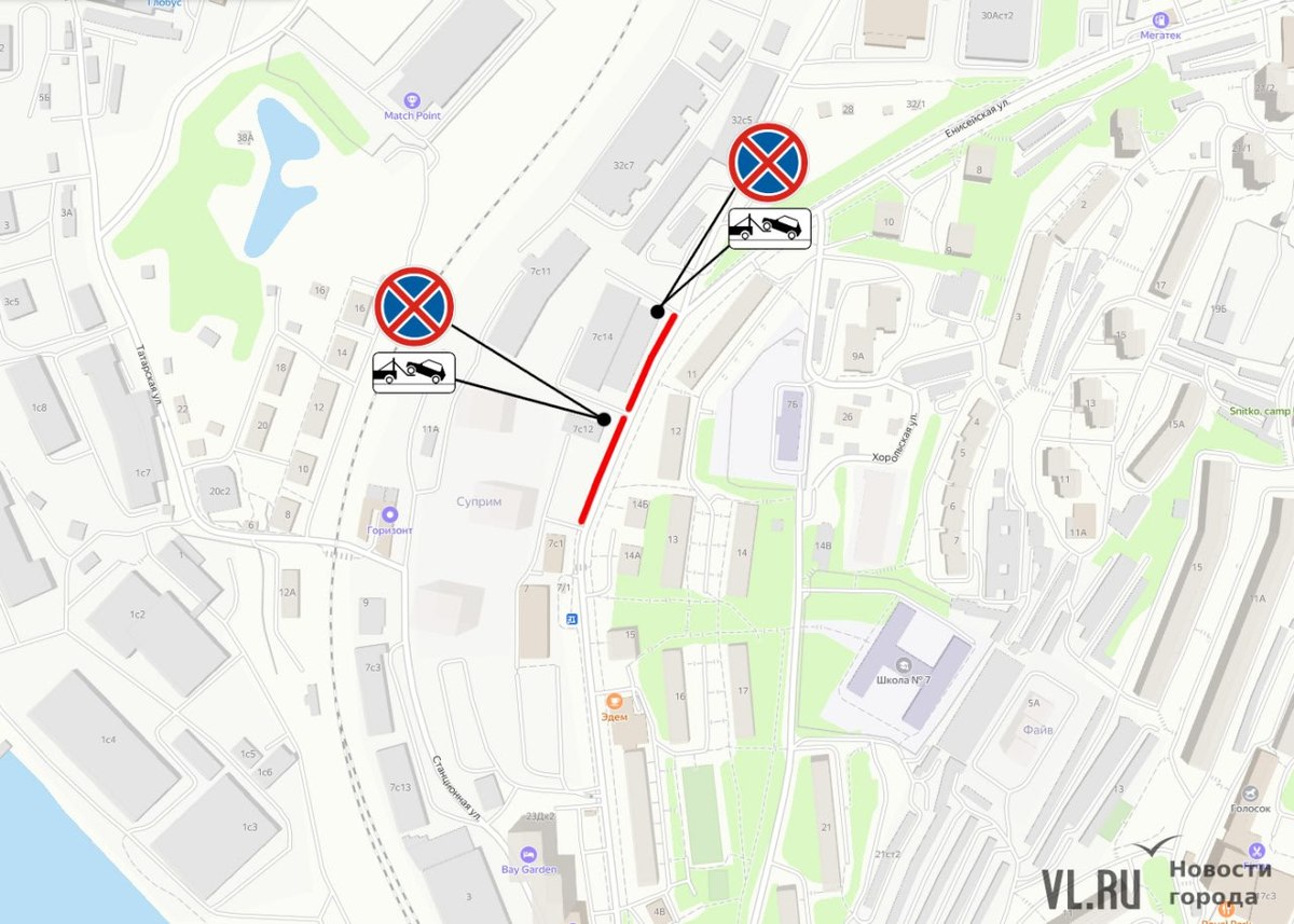 Знаки установят в районе ул. Енисейская, д. 7, стр. 14. Как следует из схемы, предоставленной редакции, запрет предполагается только с одной стороны, по ходу движения в сторону автовокзала.