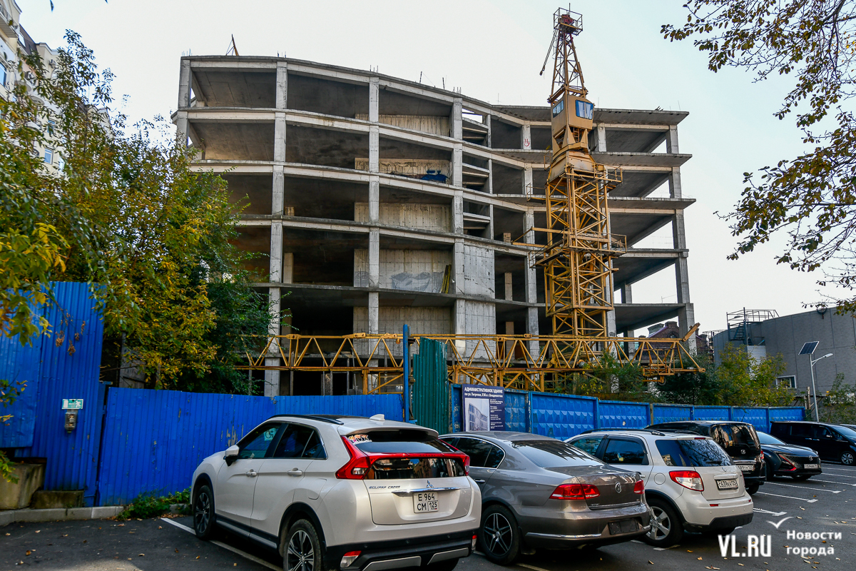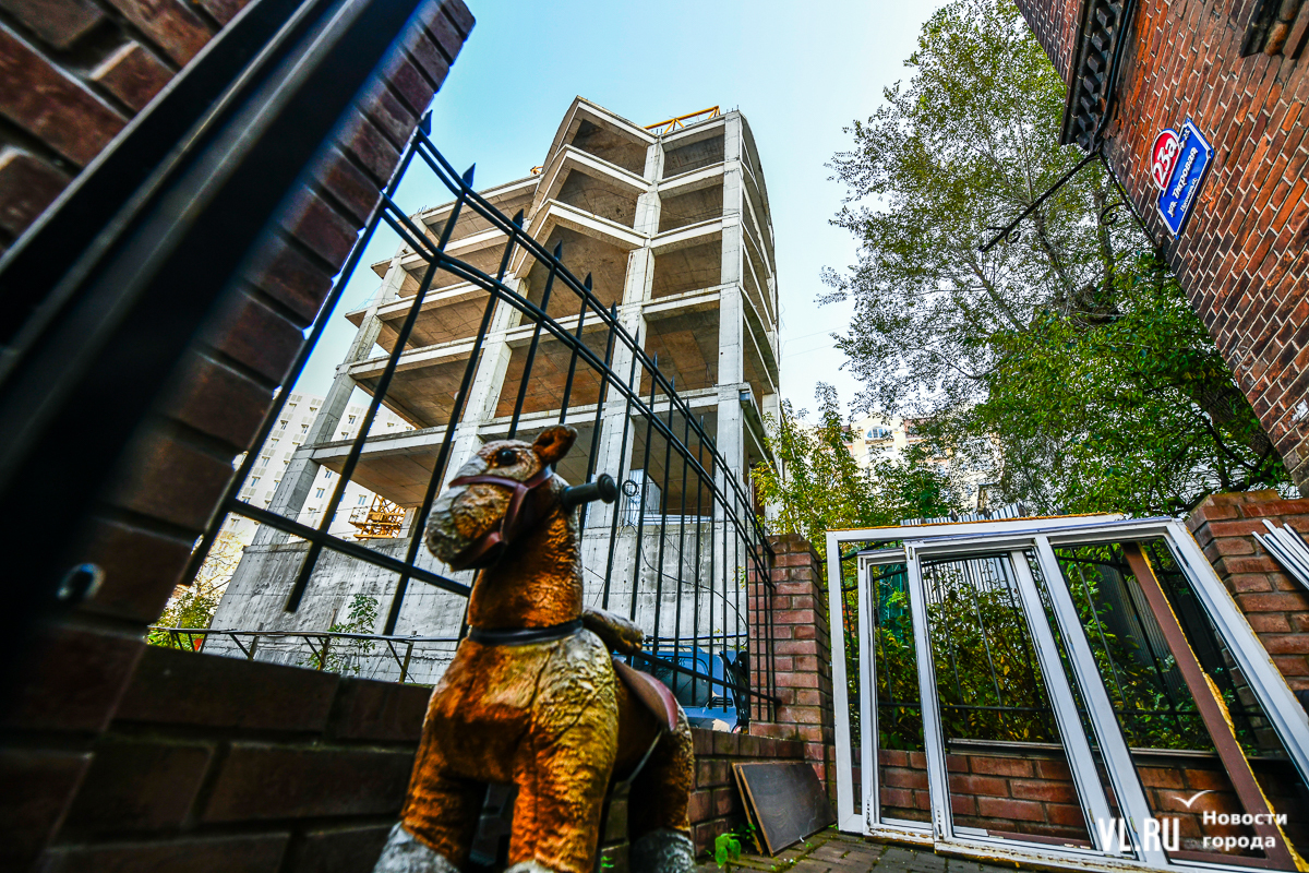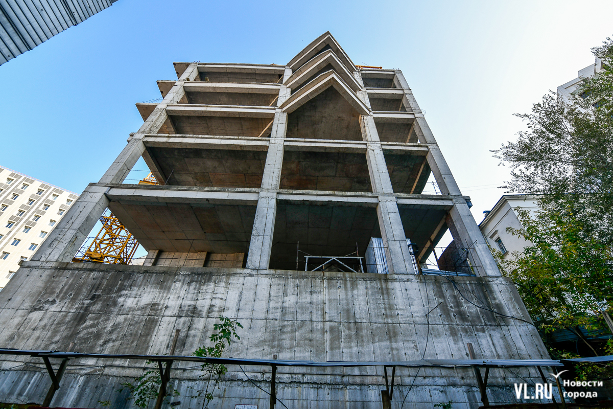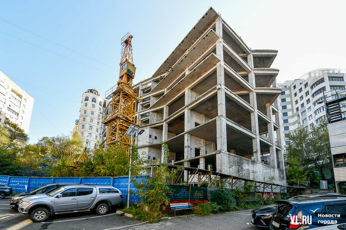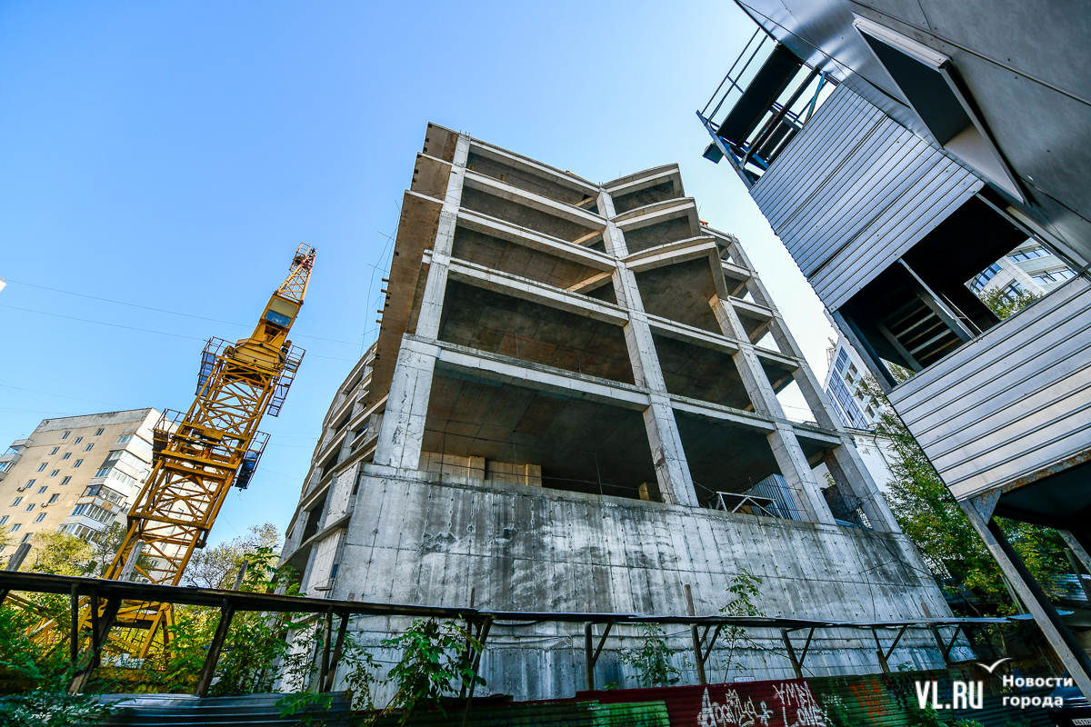 Однако в январе 2008 года администрация Владивостока выдаёт «Динасу» разрешение на строительство по проекту – то есть на 1362 «квадрата» площади застройки. Строительство велось с переменным успехом, и в 2012 году земельный участок площадью 1488 кв. м с кадастровым номером 25:28:020023:5 вместе с недостроем готовностью 21% ООО «Динас» перепродаёт «Динас Девелопмент Плюс», ещё через два года оно переходит к фирме-офшору «ТрансПасифик», а затем оказывается у ООО «ИнвестСтрой» – компании, связанной с Владимиром Николаевым. В процессе перепродажи было получено ещё одно разрешение на строительство, снова по проектной площади, но оно истекло.