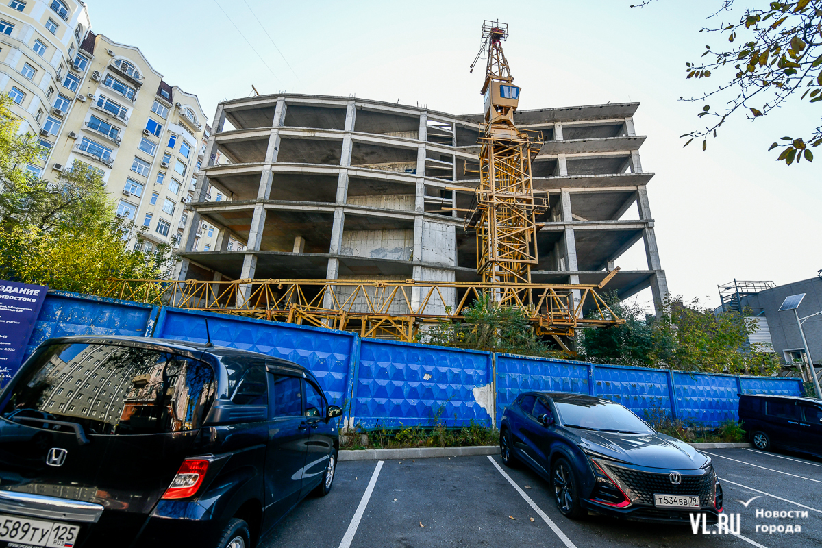 Строить «Оушен Сити» начинала небезызвестная компания «Динас». Историю участка на Тигровой, 23-б можно проследить по многочисленным судебным документам. В сентябре 2005 года ООО «Производственное объединение «Динас» и ОАО «Дальневосточное морское пароходство» в общую долевую собственность приобрели земельный участок площадью 1488 кв. м с кадастровым номером 25:28:020023:5 для реконструкции и дальнейшей эксплуатации расположенного на земельном участке административного здания. Судя по ЕГРН, на земле находилось одноэтажное здание 1918 года постройки. Как говорили местные жители – «казарма». Но, возможно, и просто жилой дом дореволюционной постройки, которые в том районе ещё остались.