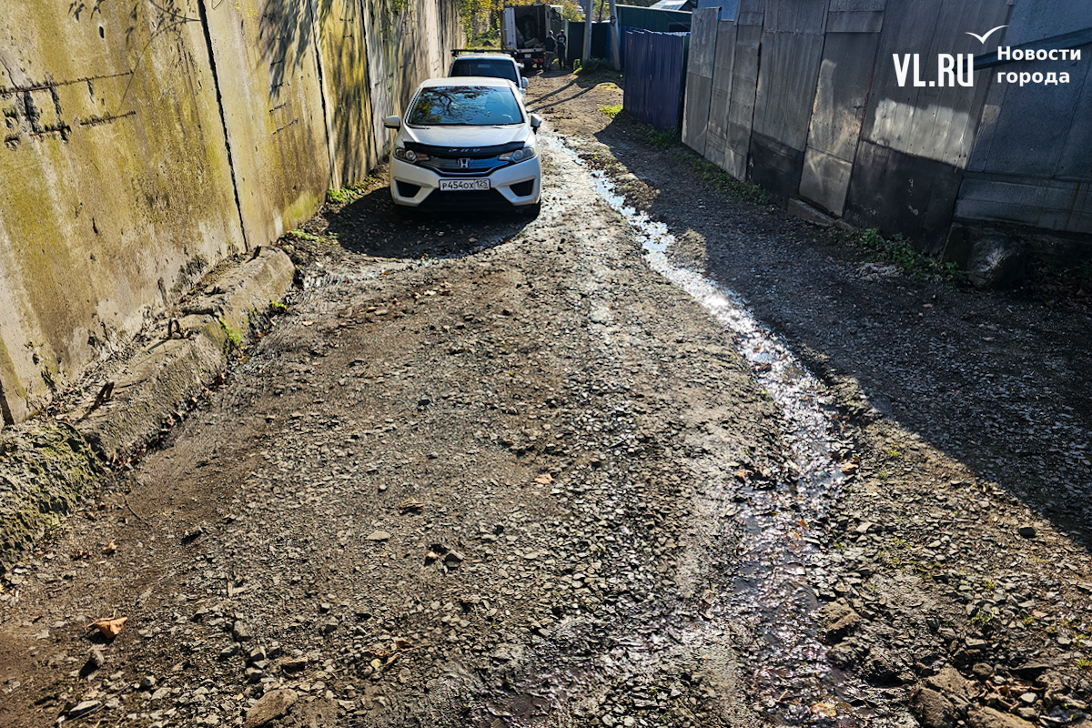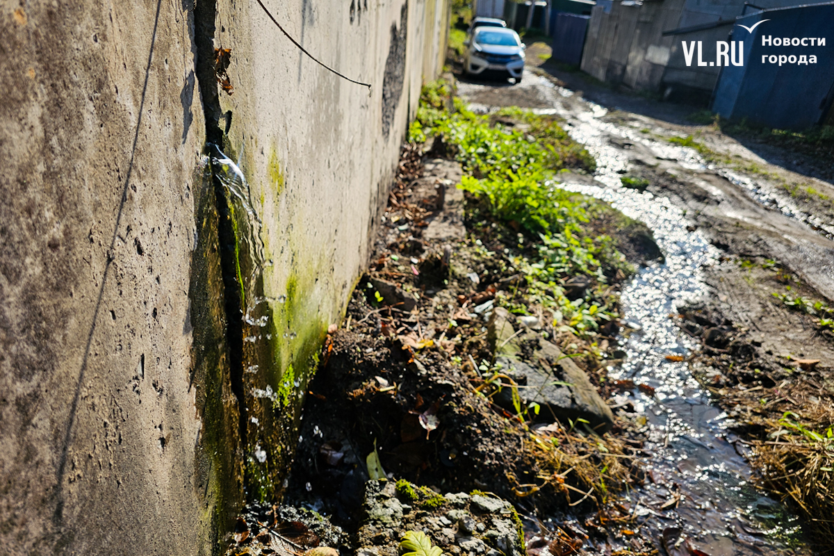 Корреспондент редакции Новостей VL.ru побывал на этой улице и убедился, что вода здесь продолжает литься прямо по дороге.