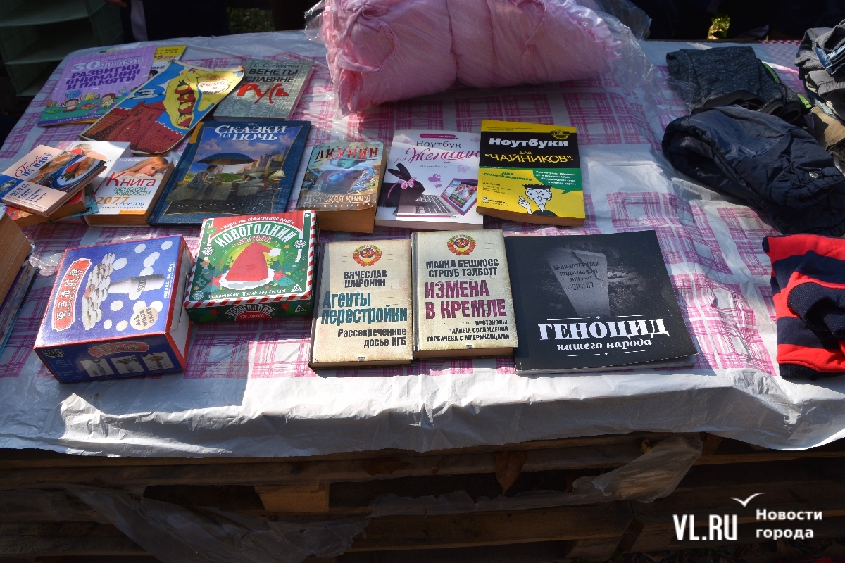 Кроме столов со своп-вещами, во дворике стоял ещё один прилавок – с красивыми ароматическими декоративными изделиями для дома и постельным бельём от владивостокских мастериц. Но хотя даже по виду можно было сказать, что творения качественные и сделаны с душой, ажиотажа вокруг стола не было. Сегодня всё внимание гости отдавали тому, что можно взять бесплатно.