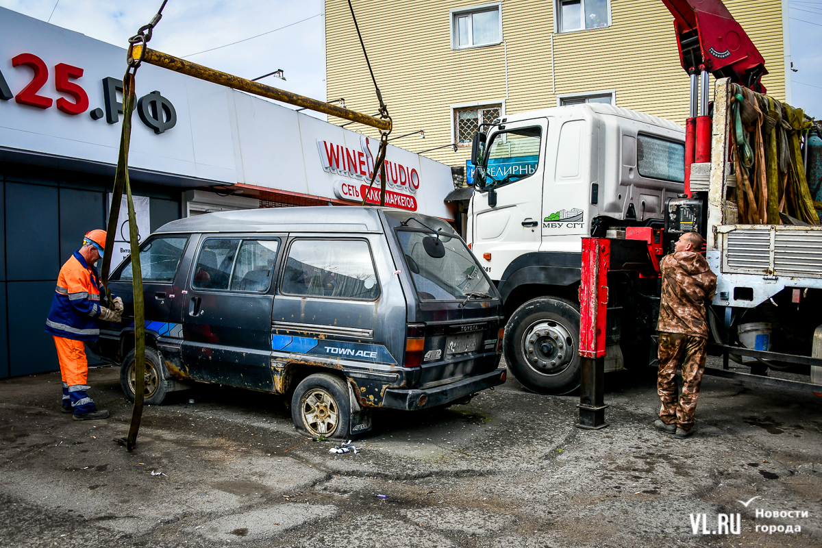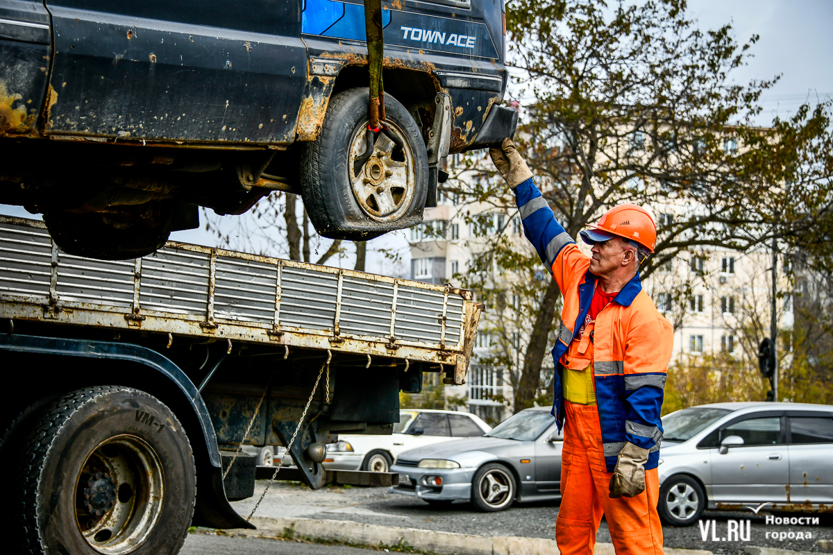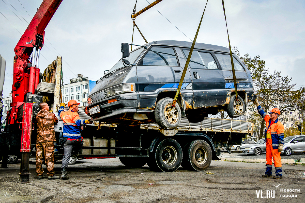 Во вторник, 15 октября, из дворов Владивостока вывезли ещё три брошенных автомобиля. С мусорной площадки на Эгершельде увезли микроавтобус, ставший рассадником крыс, с парковочного места у магазина на Тихой забрали микроавтобус со спущенными колёсами, который принадлежит лежачему инвалиду. С Чуркина эвакуировали старую «Волгу» без номеров. Владельцы могут забрать свой транспорт, если захотят, но придётся заплатить минимум 12 700 рублей, если нет – его могут признать бесхозным и утилизировать.