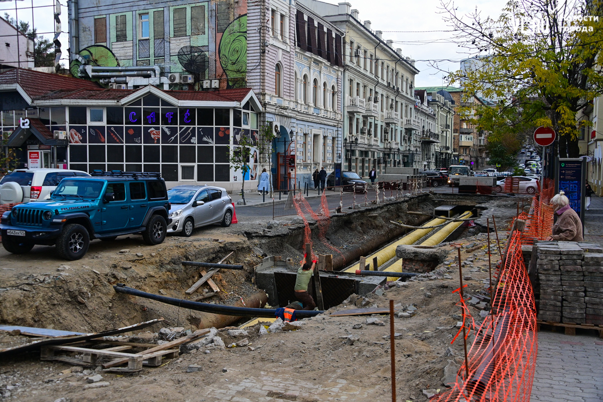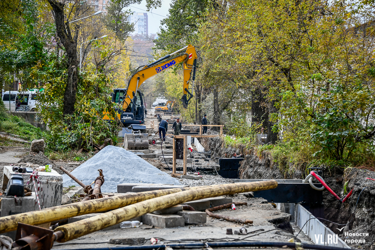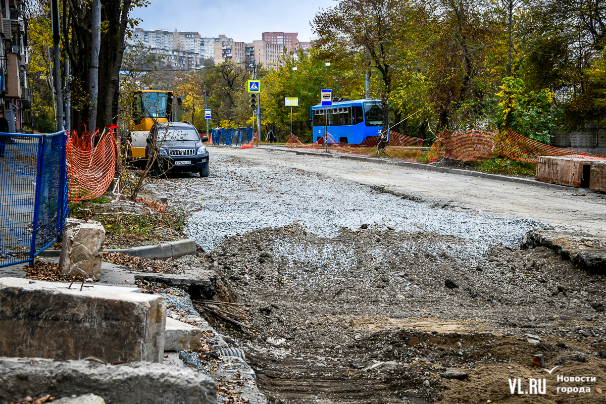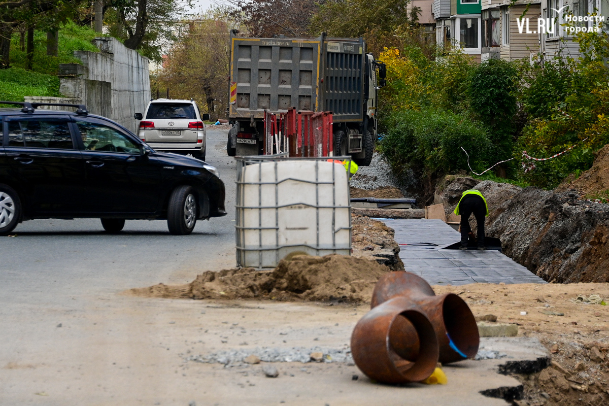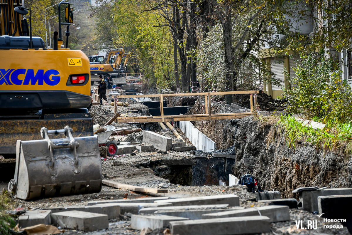 На одном из участков на Героев Хасана из-за раскопанной дороги приходится проезжать по очереди. Улица Борисенко в районе остановки «Новожилова» перекрыта до 5 ноября. Там примерно половина участка уже засыпана грунтом и щебнем. Наиболее разрытой кажется 2-я Строительная – перекопаны практически вся двухполосная дорога и часть тротуара. На вид здесь уложена только половина труб, но лотки уже подготовлены, рабочих тут сейчас стало больше, чем несколько дней назад.