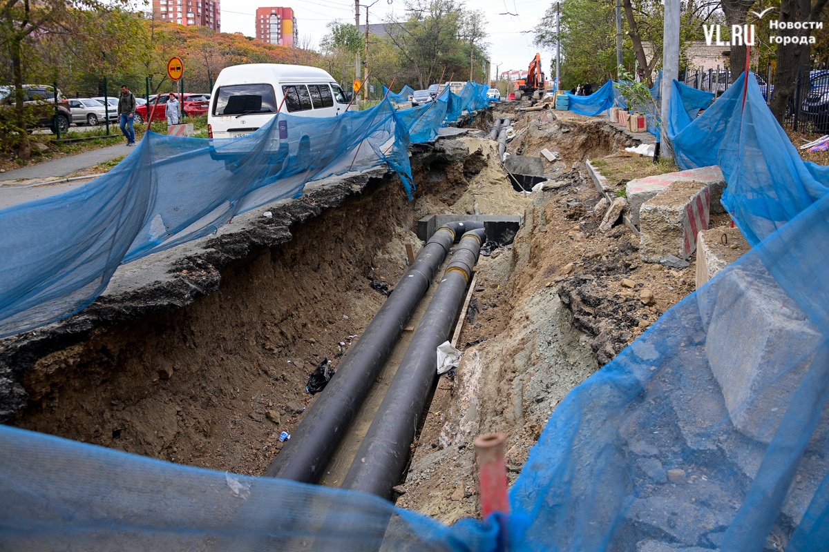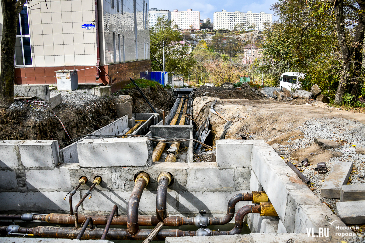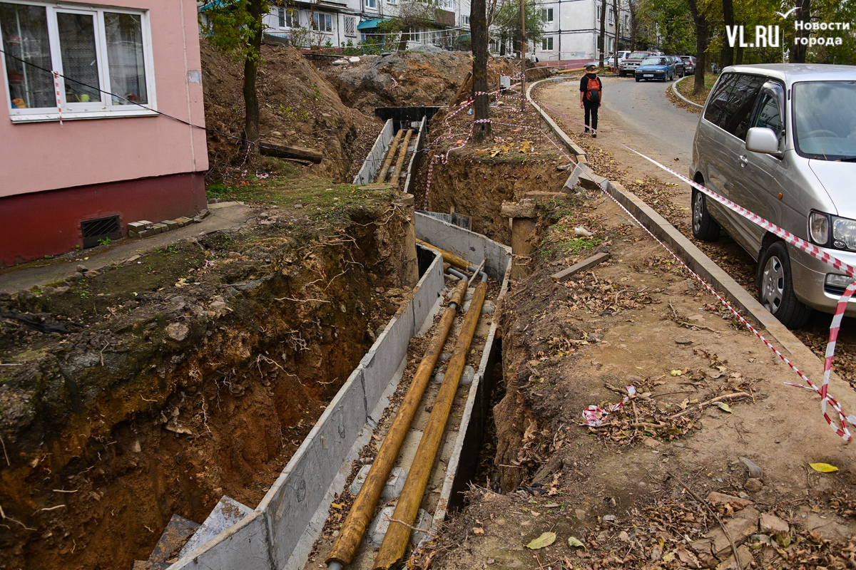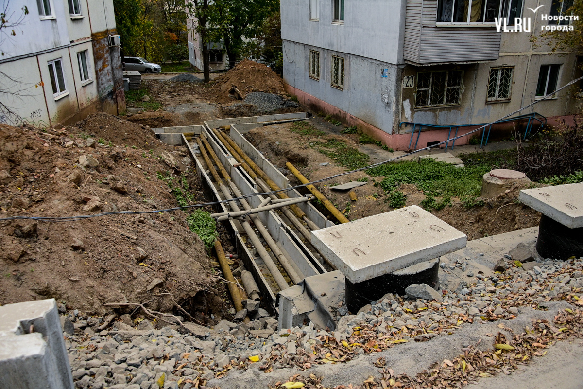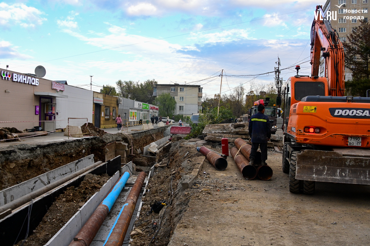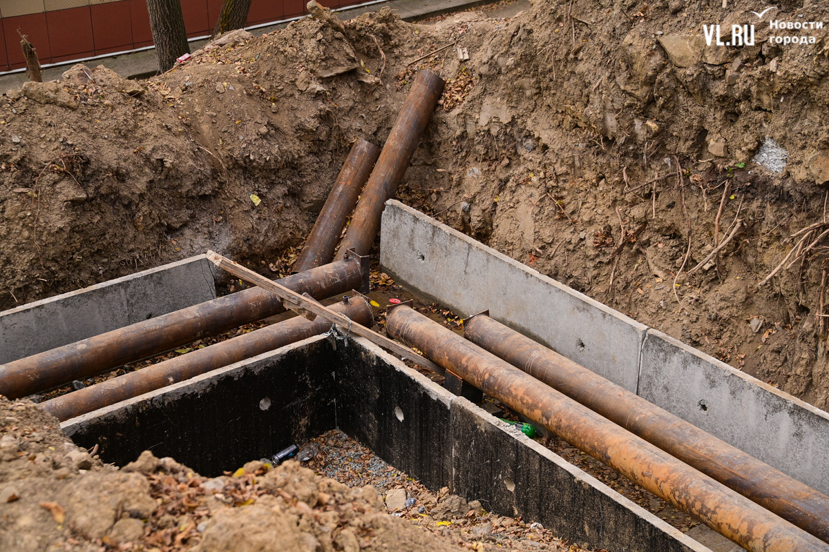 Фотокорреспондент Новостей VL.ru проехался по основным местам раскопок. Новые трубы в основном уже везде уложены, а вот до засыпки ещё далеко. Глубочайшие канавы местным жителям приходится обходить и всегда о них помнить, особенно по вечерам. Единственное исключение – участок на Магнитогорской.