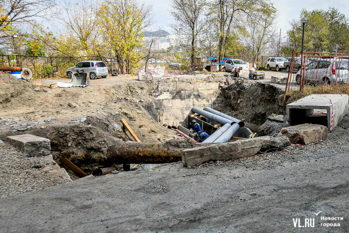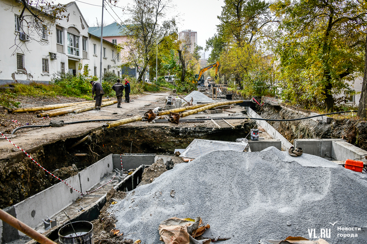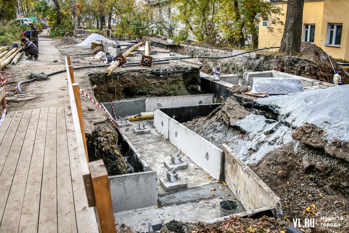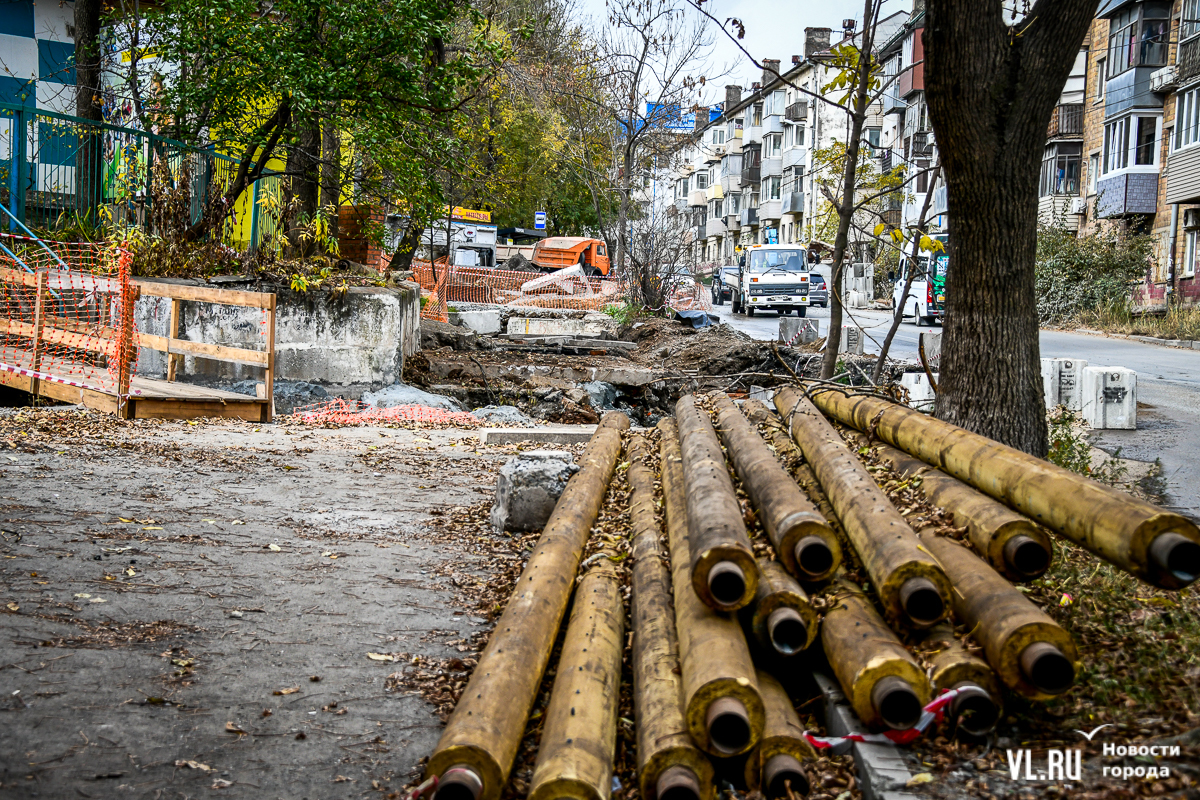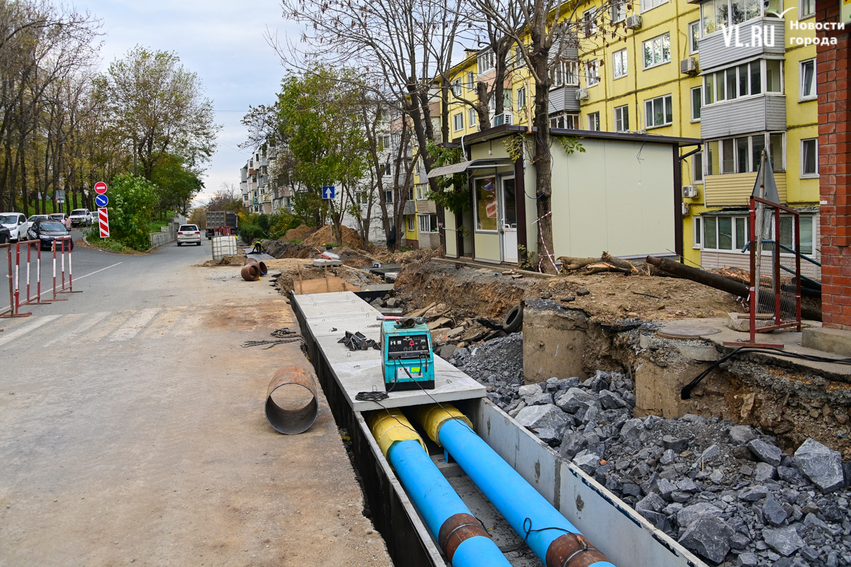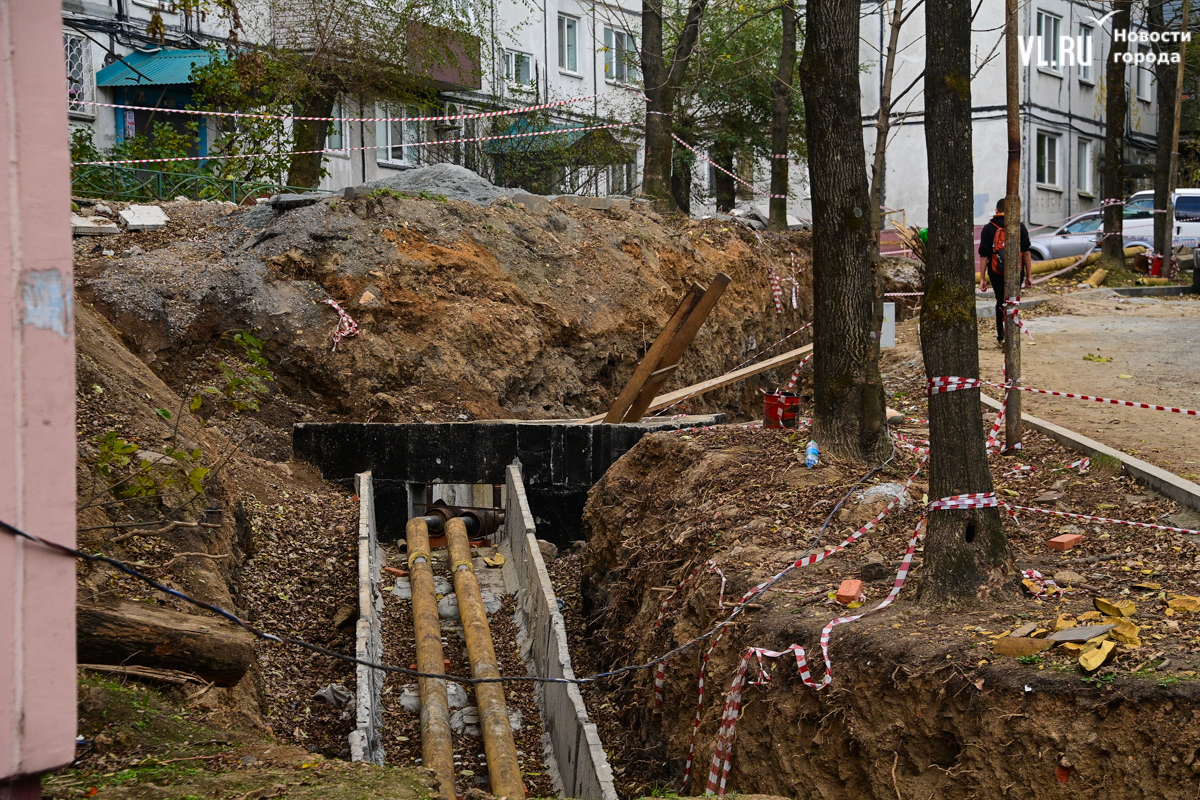 Фотокорреспондент Новостей VL.ru проехался по основным местам раскопок. Новые трубы в основном уже везде уложены, а вот до засыпки ещё далеко. Глубочайшие канавы местным жителям приходится обходить и всегда о них помнить, особенно по вечерам. Единственное исключение – участок на Магнитогорской.