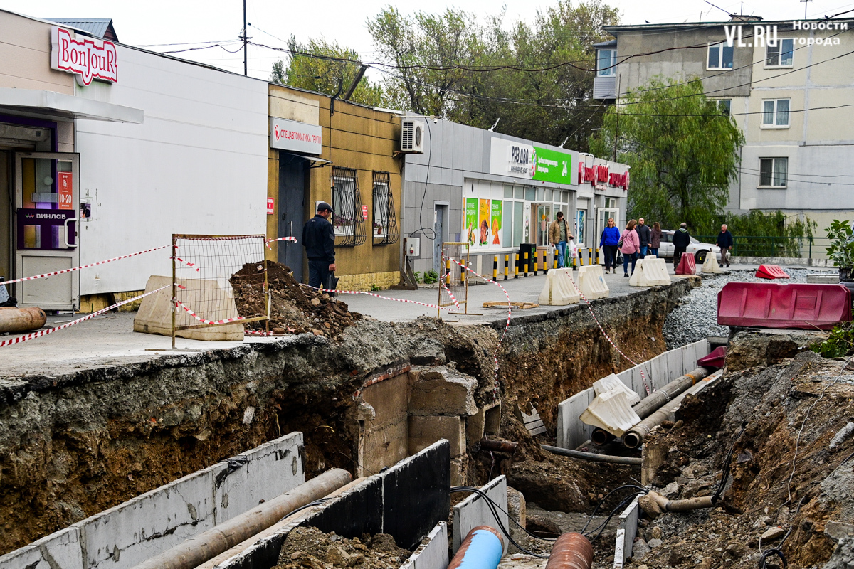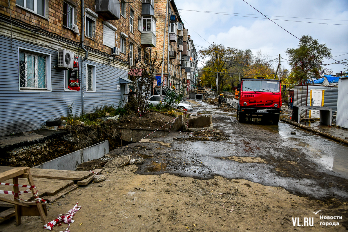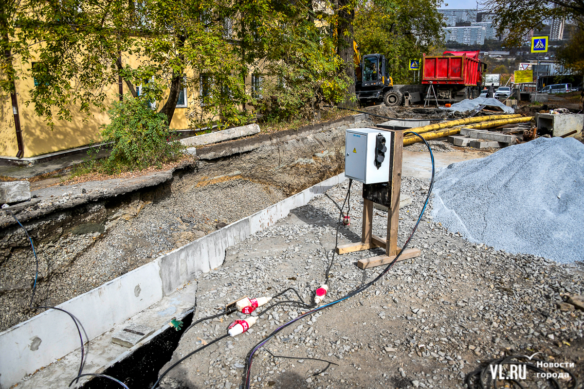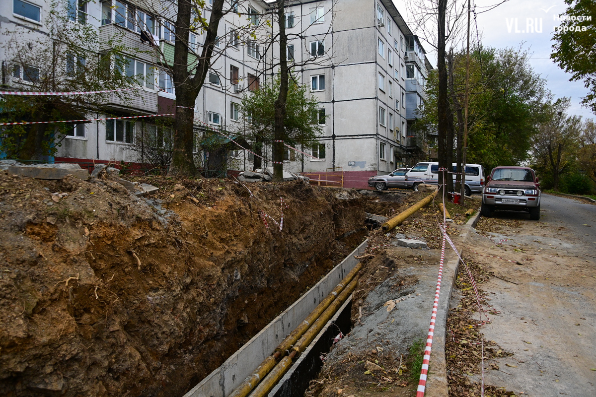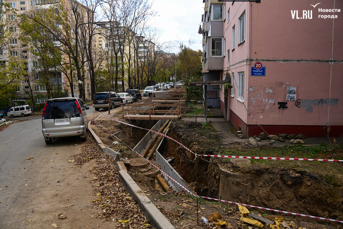 Фотокорреспондент Новостей VL.ru проехался по основным местам раскопок. Новые трубы в основном уже везде уложены, а вот до засыпки ещё далеко. Глубочайшие канавы местным жителям приходится обходить и всегда о них помнить, особенно по вечерам. Единственное исключение – участок на Магнитогорской.