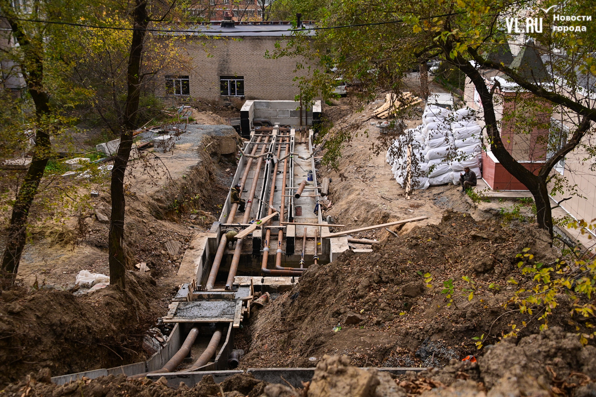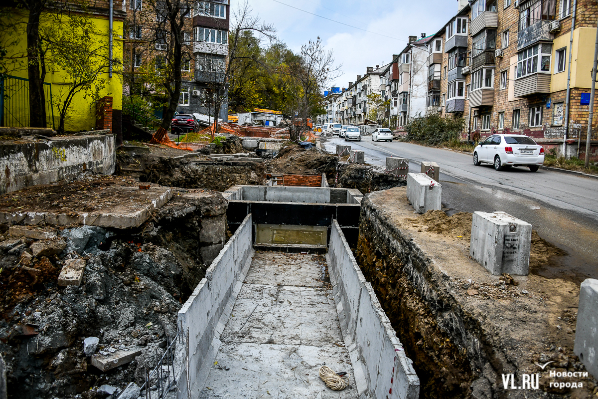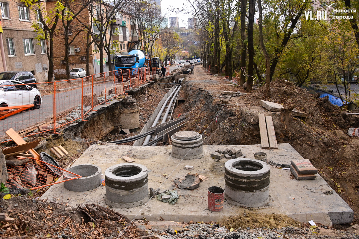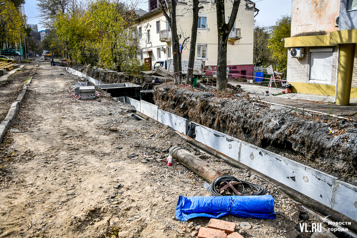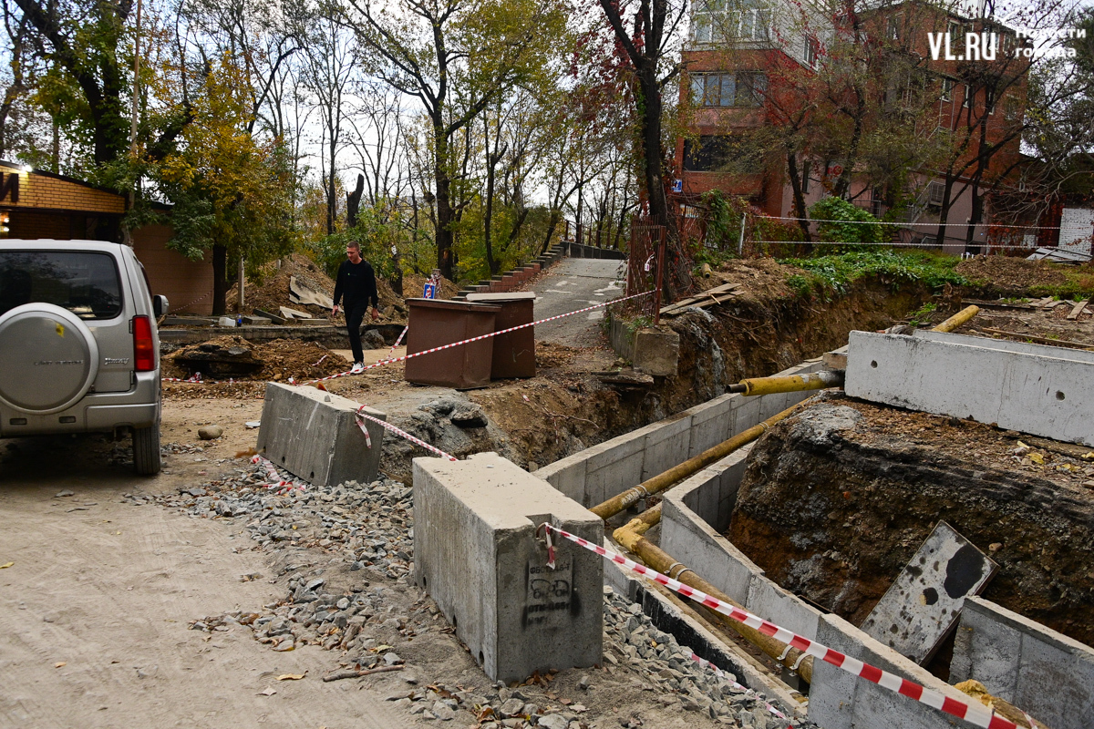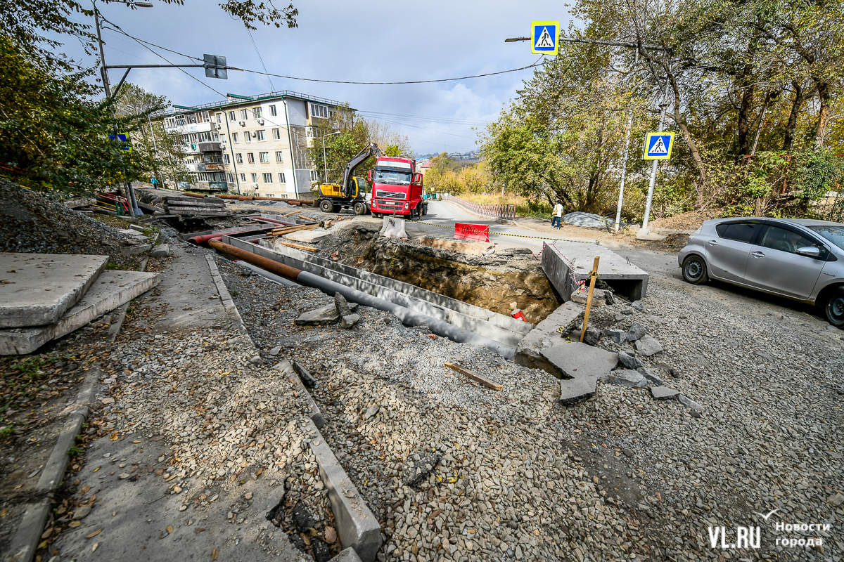 Фотокорреспондент Новостей VL.ru проехался по основным местам раскопок. Новые трубы в основном уже везде уложены, а вот до засыпки ещё далеко. Глубочайшие канавы местным жителям приходится обходить и всегда о них помнить, особенно по вечерам. Единственное исключение – участок на Магнитогорской.