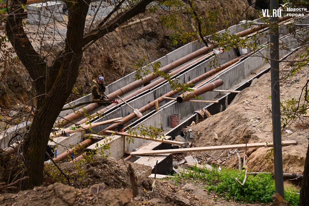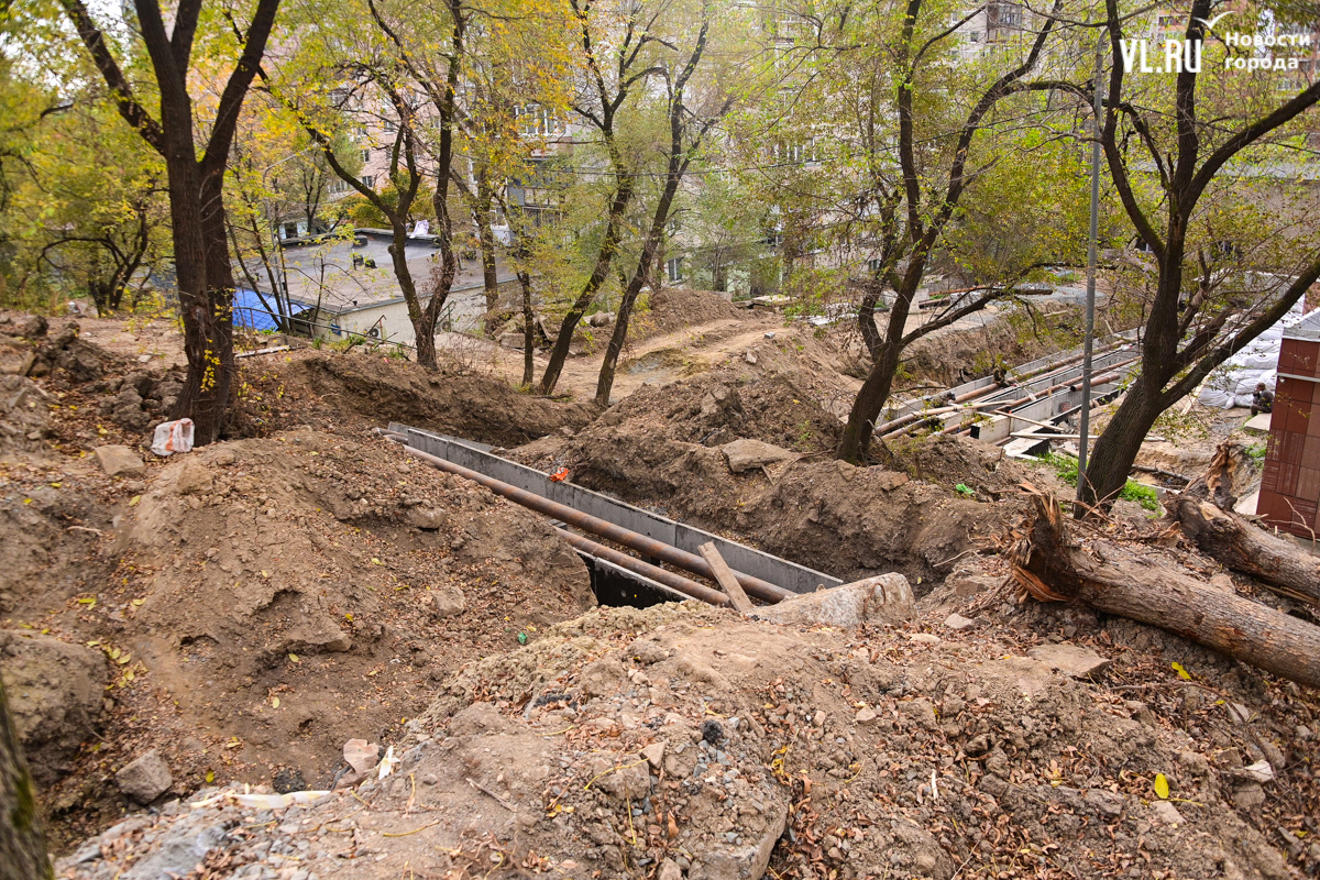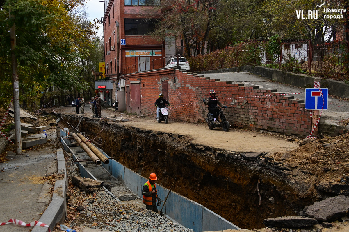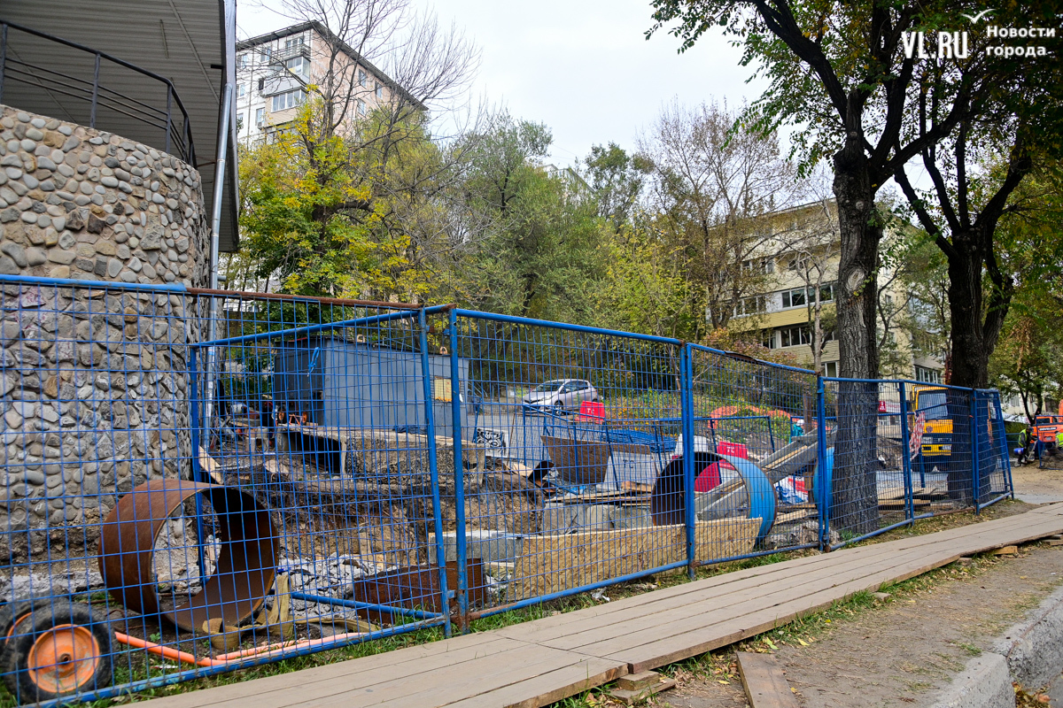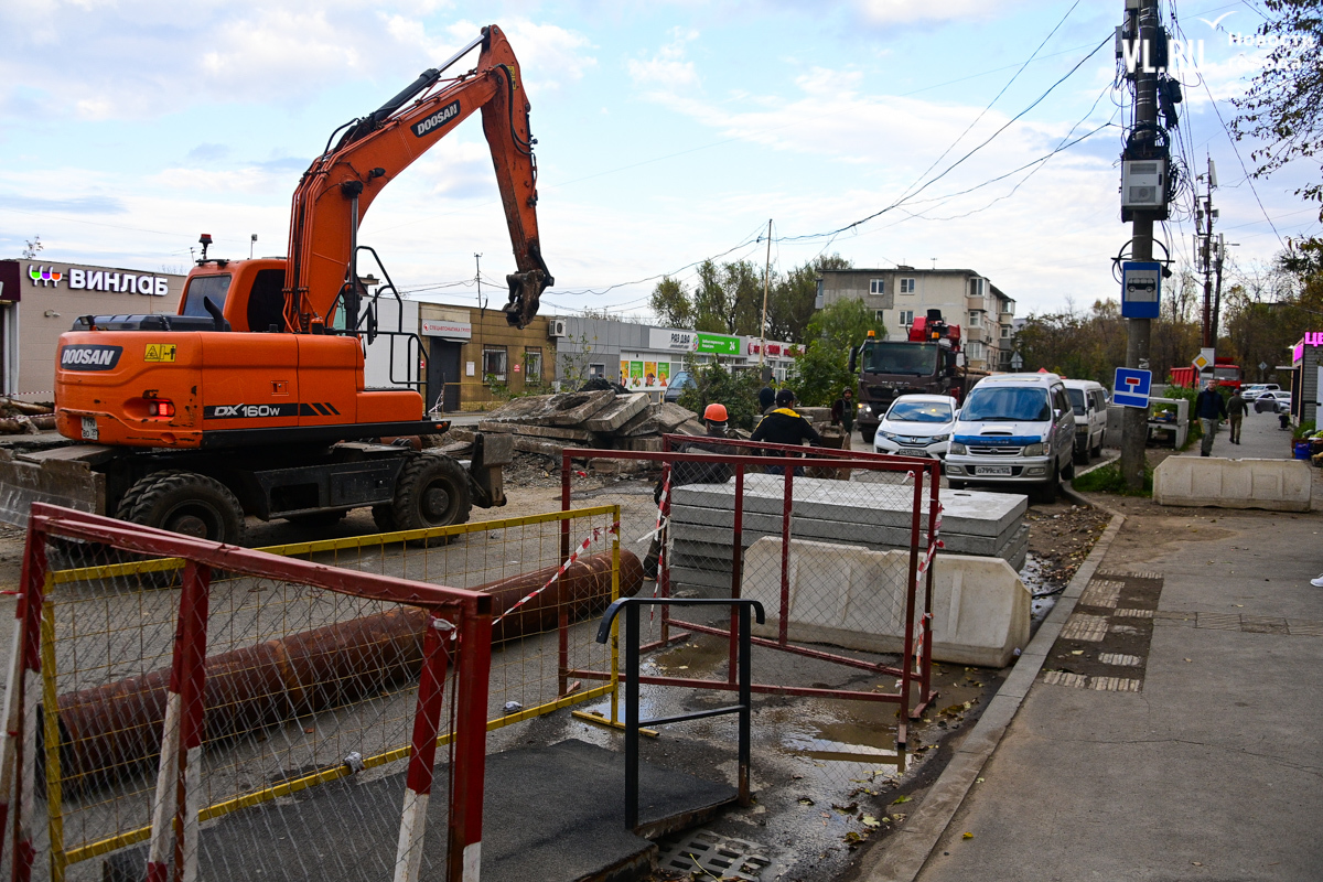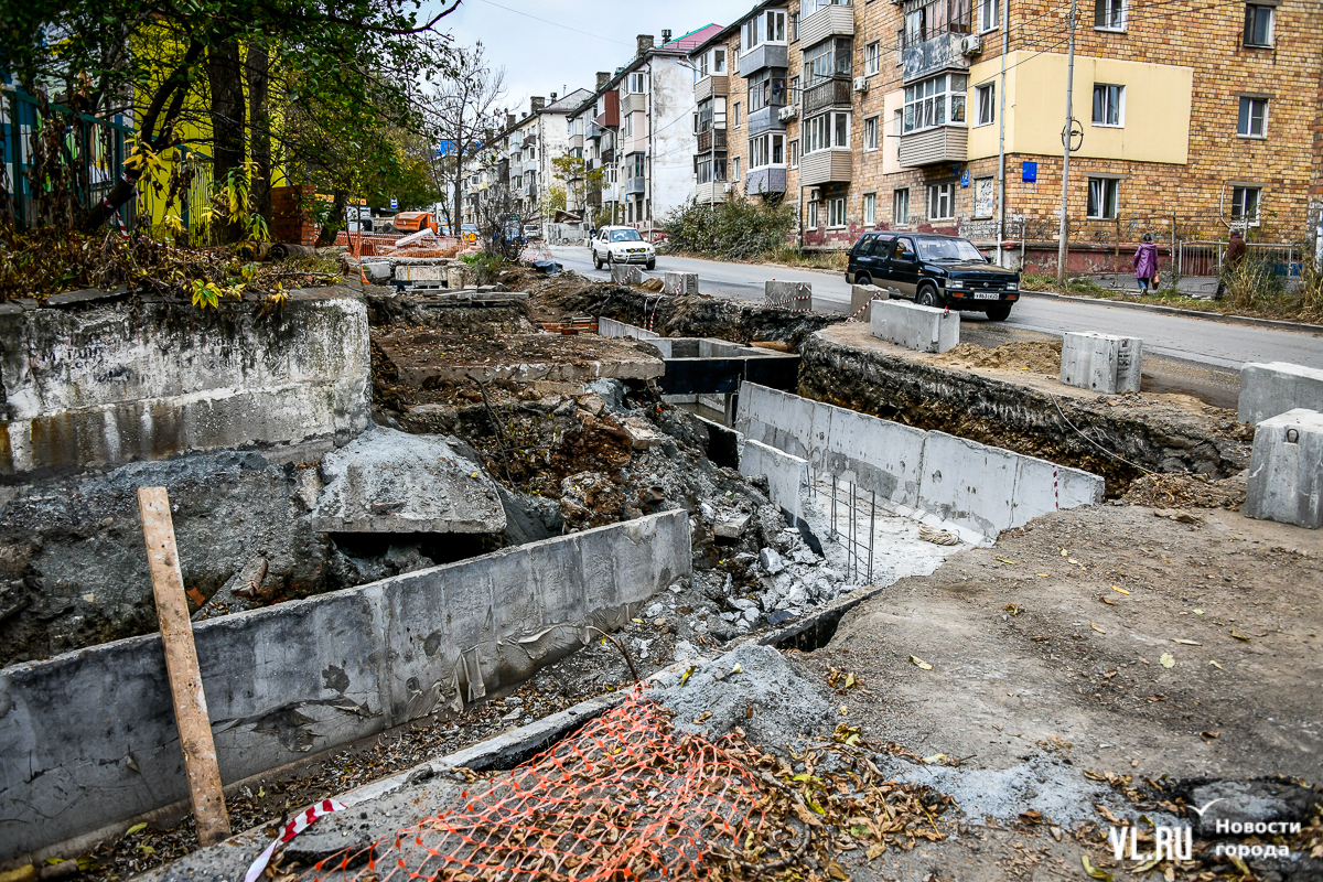 Фотокорреспондент Новостей VL.ru проехался по основным местам раскопок. Новые трубы в основном уже везде уложены, а вот до засыпки ещё далеко. Глубочайшие канавы местным жителям приходится обходить и всегда о них помнить, особенно по вечерам. Единственное исключение – участок на Магнитогорской.