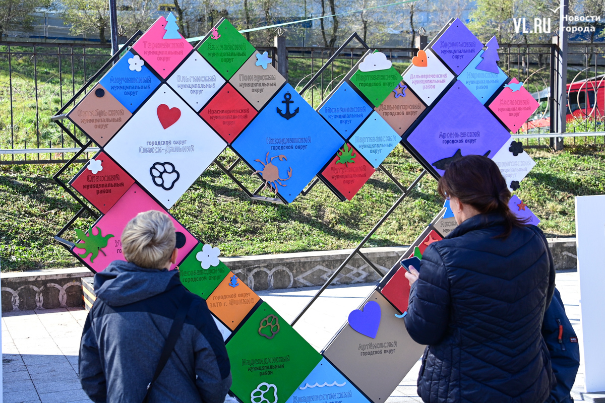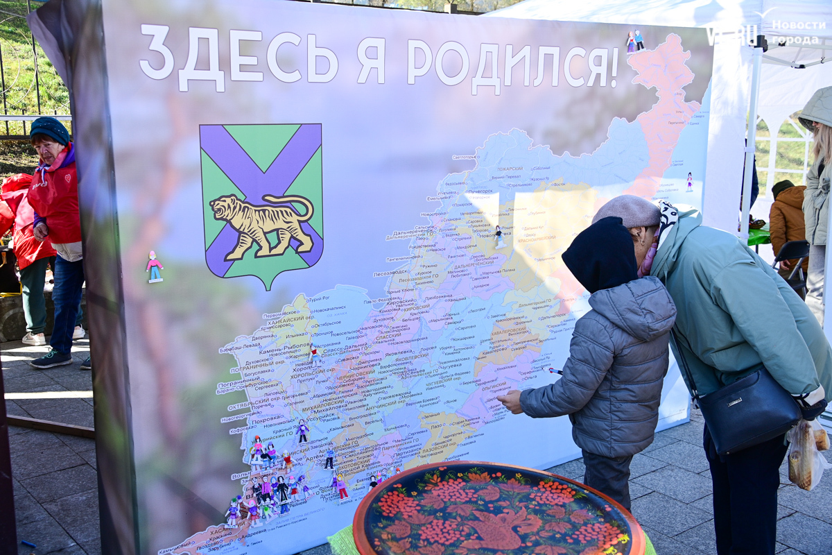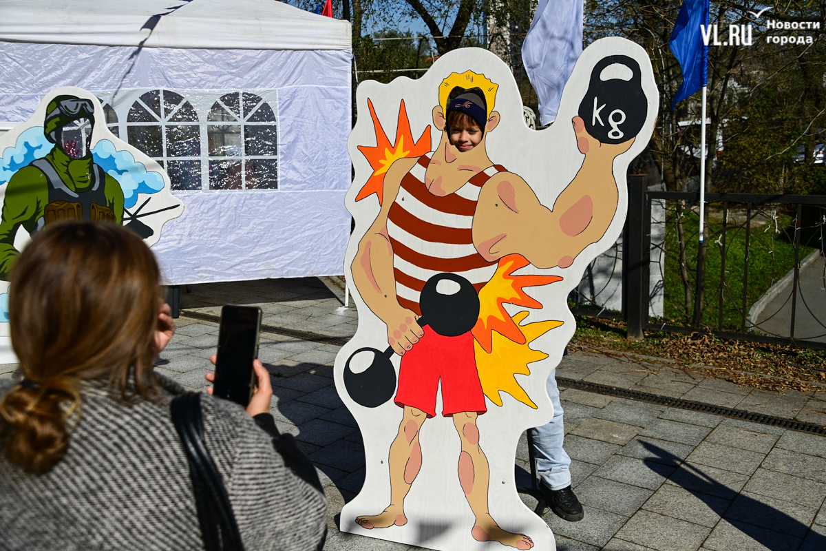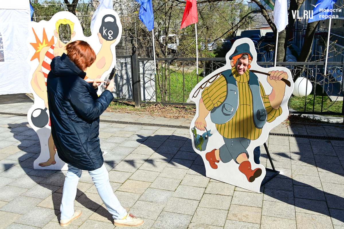 На площадке расположились несколько фотозон: Токаревский маяк, фигуры с отверстиями под лица, изображающие рыбака, моряка, спортсмена и военного, а также карты Приморья. Одна из фотозон продолжала создаваться и совершенствоваться прямо на празднике: гости рисовали человечков, подписывали свои имена и наклеивали их на карту края с обозначенными населёнными пунктами. А самой популярной была фотозона, на которой работал фотограф, создававший моментальные снимки на большом аппарате. Ждать снимок приходилось меньше минуты, а своей очереди – намного больше.