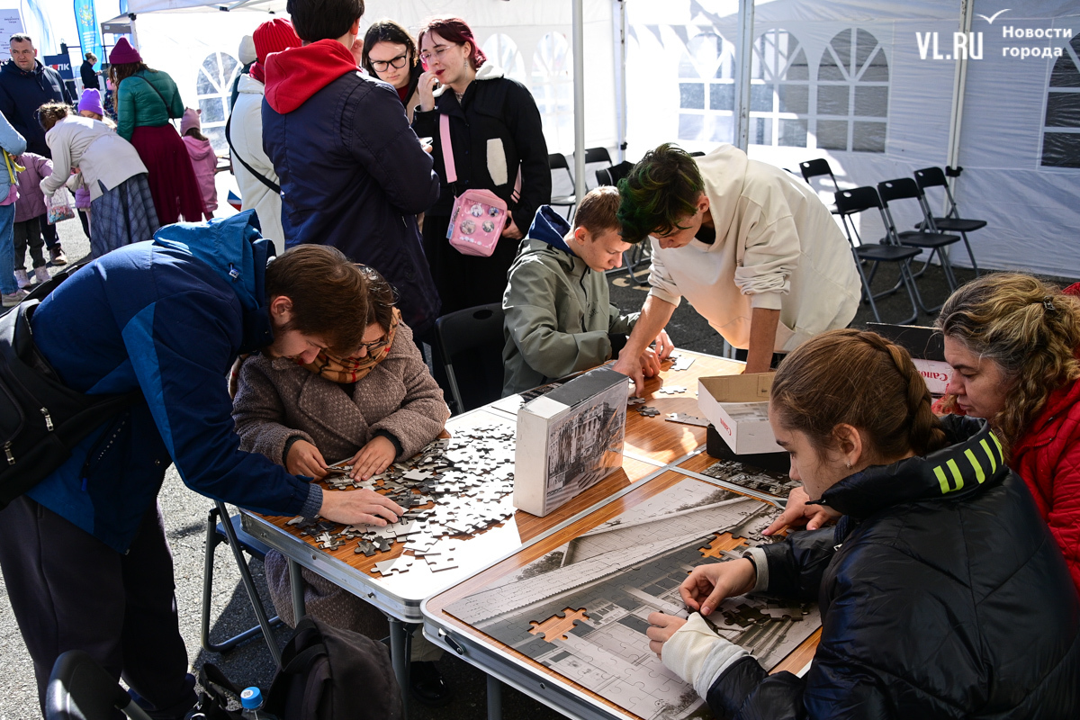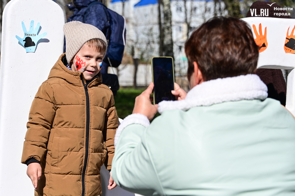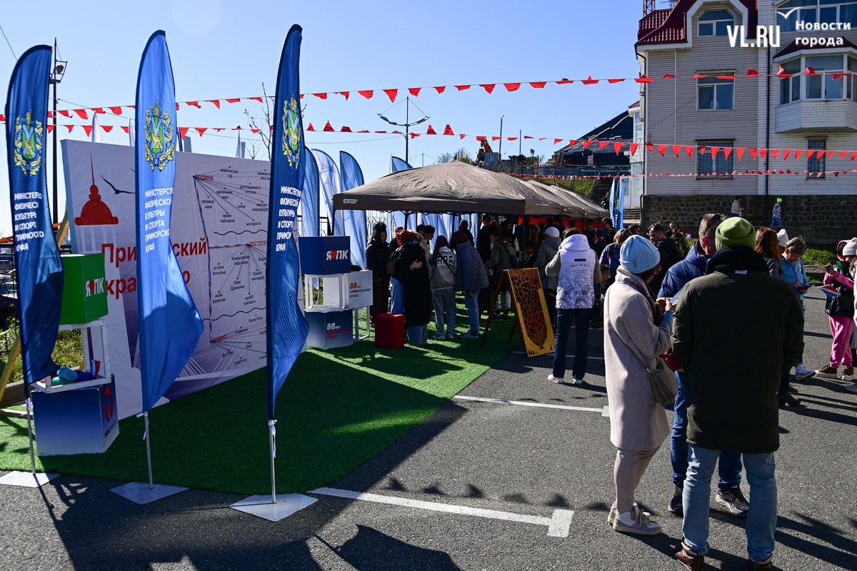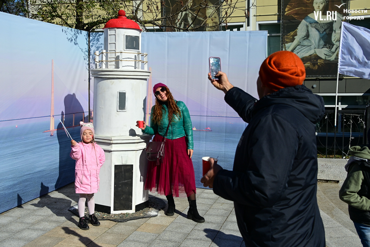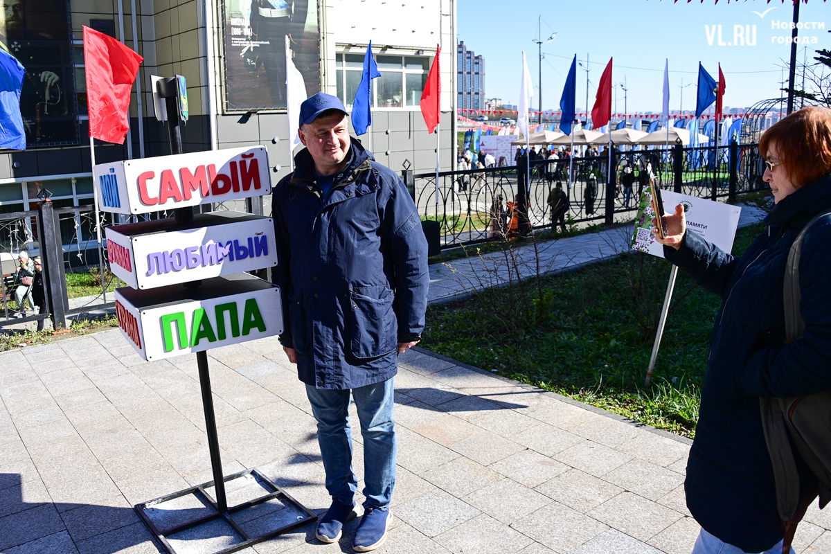 На площадке расположились несколько фотозон: Токаревский маяк, фигуры с отверстиями под лица, изображающие рыбака, моряка, спортсмена и военного, а также карты Приморья. Одна из фотозон продолжала создаваться и совершенствоваться прямо на празднике: гости рисовали человечков, подписывали свои имена и наклеивали их на карту края с обозначенными населёнными пунктами. А самой популярной была фотозона, на которой работал фотограф, создававший моментальные снимки на большом аппарате. Ждать снимок приходилось меньше минуты, а своей очереди – намного больше.