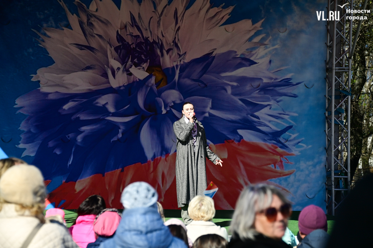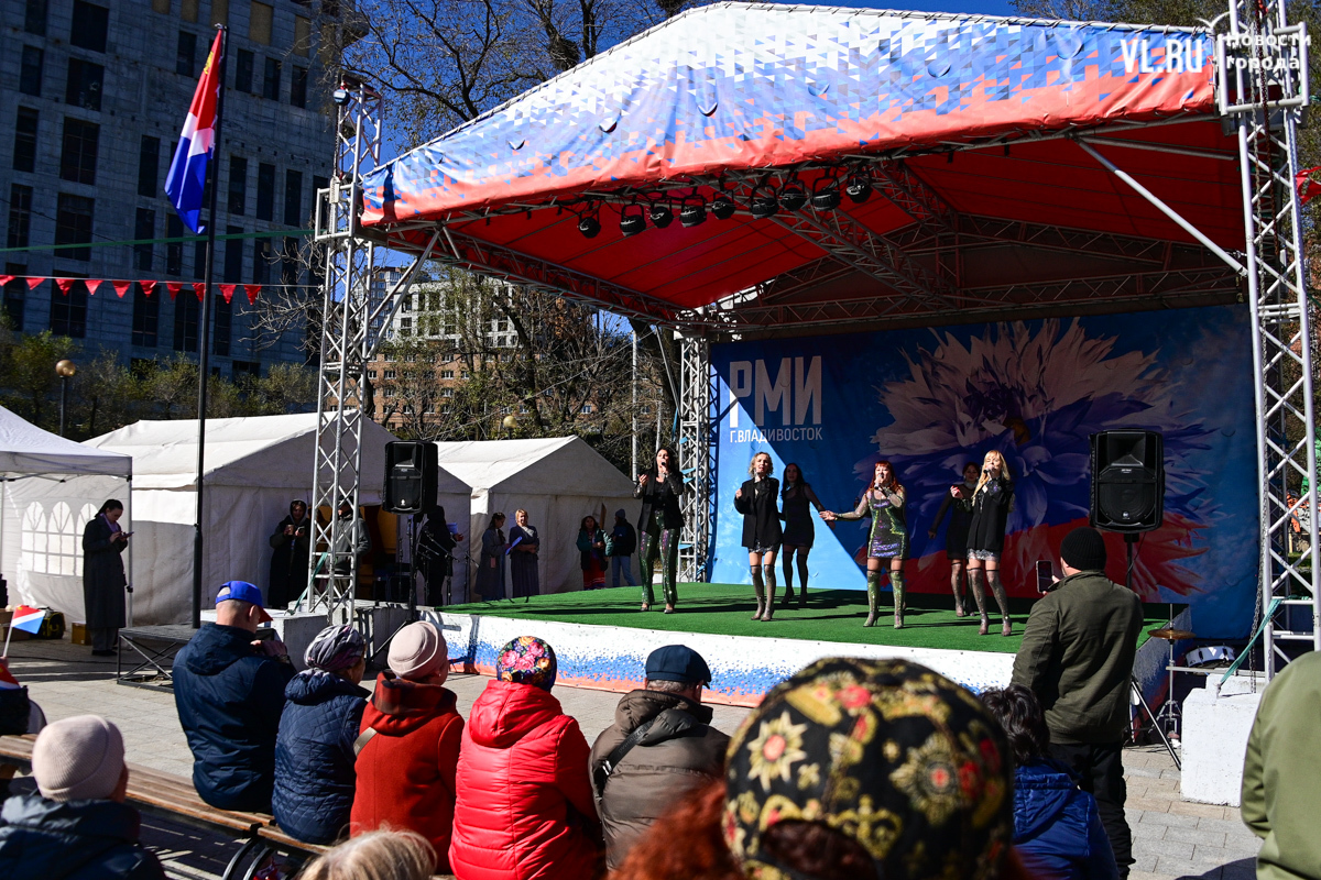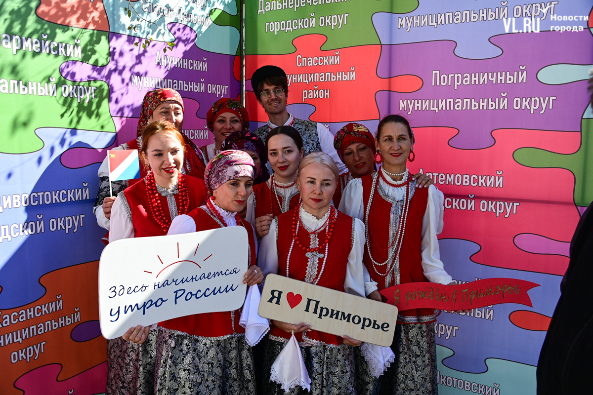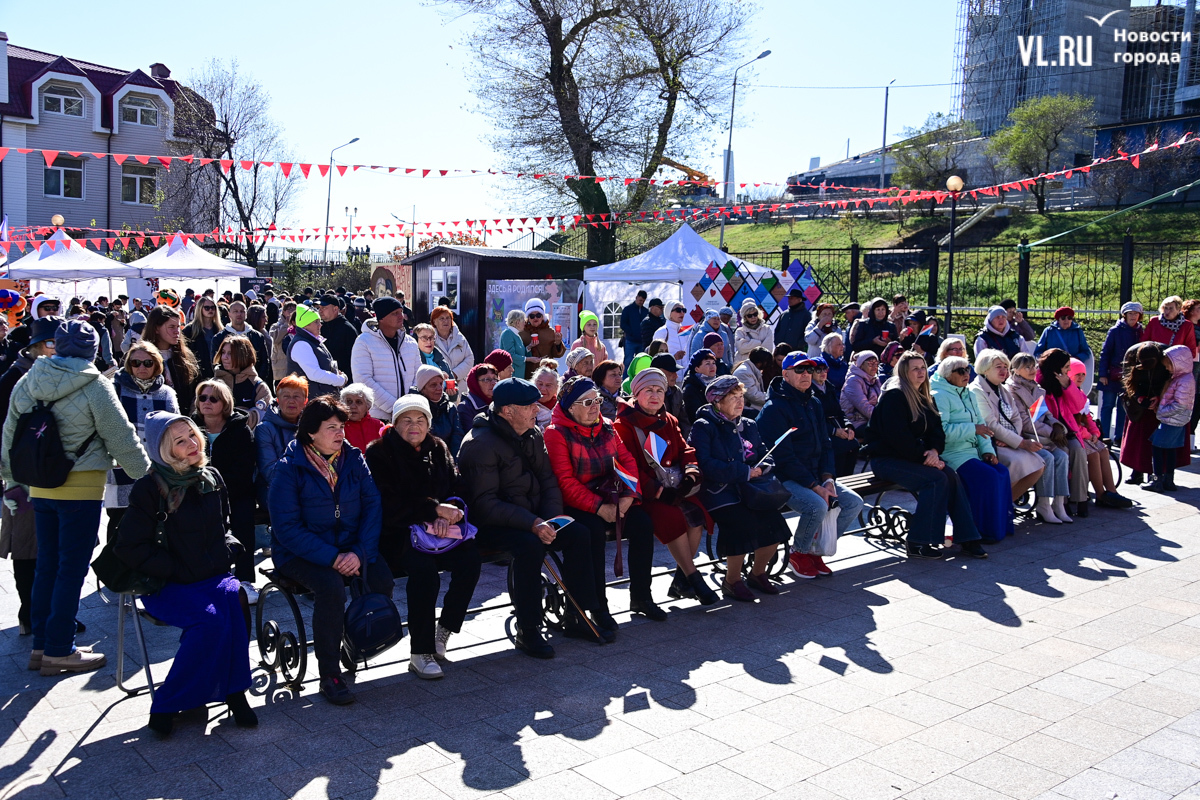 Праздник начали в полдень. У сцены собрались горожане, представители музыкальных коллективов, молодёжь с флагами Приморья, партий и разных объединений, аниматоры в костюмах тигров. После нескольких патриотических песен на сцену поднялся губернатор Приморского края с поздравлениями. Когда он ушёл, поредели и ряды зрителей.