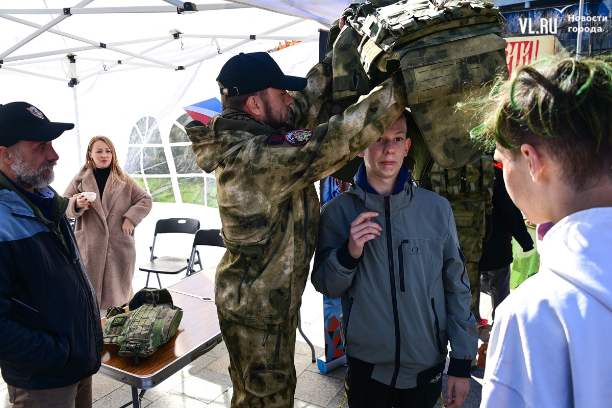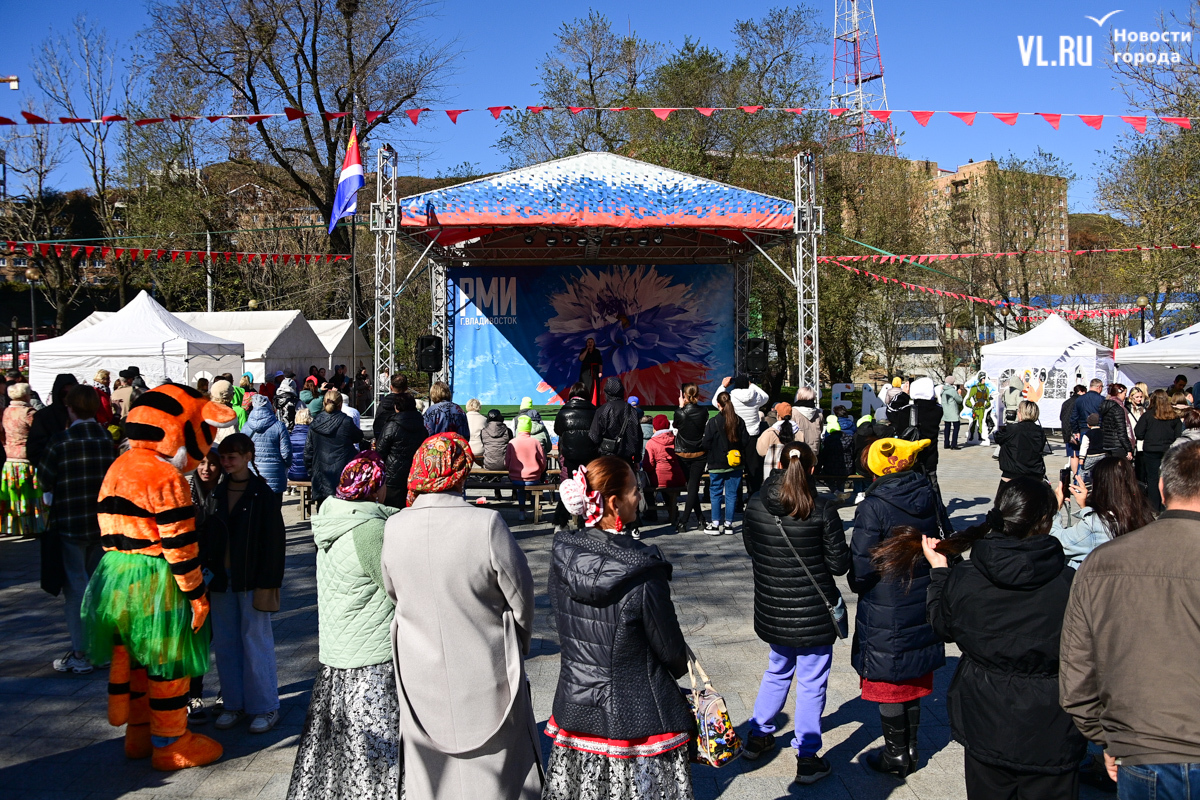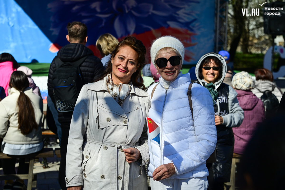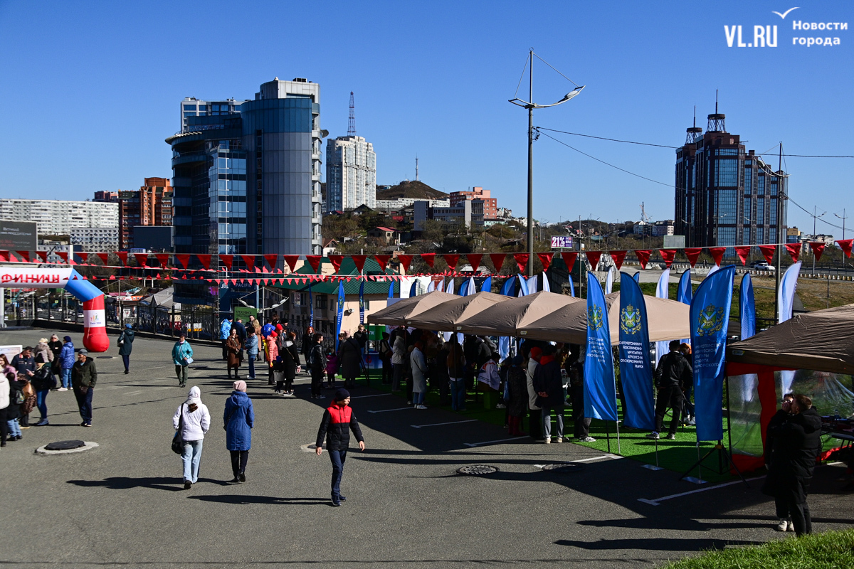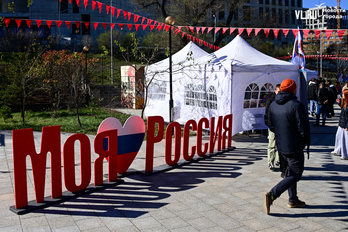 Праздник начали в полдень. У сцены собрались горожане, представители музыкальных коллективов, молодёжь с флагами Приморья, партий и разных объединений, аниматоры в костюмах тигров. После нескольких патриотических песен на сцену поднялся губернатор Приморского края с поздравлениями. Когда он ушёл, поредели и ряды зрителей.