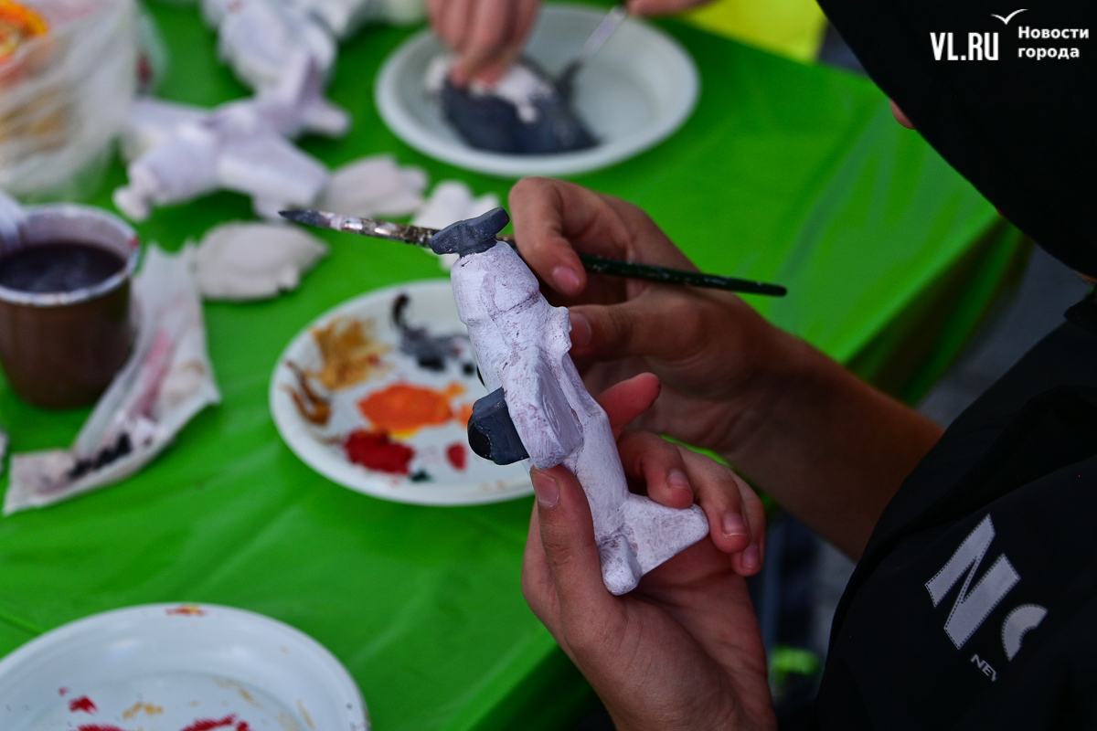 Этими мастер-классами развлечения для детей не заканчивались. Полны были столы, за которыми рисовали на камнях, клеили медали из золотого картона, раскрашивали гипсовые и керамические фигурки, из цветной бумаги вырезали ладошки и превращали их в тигров или семью.