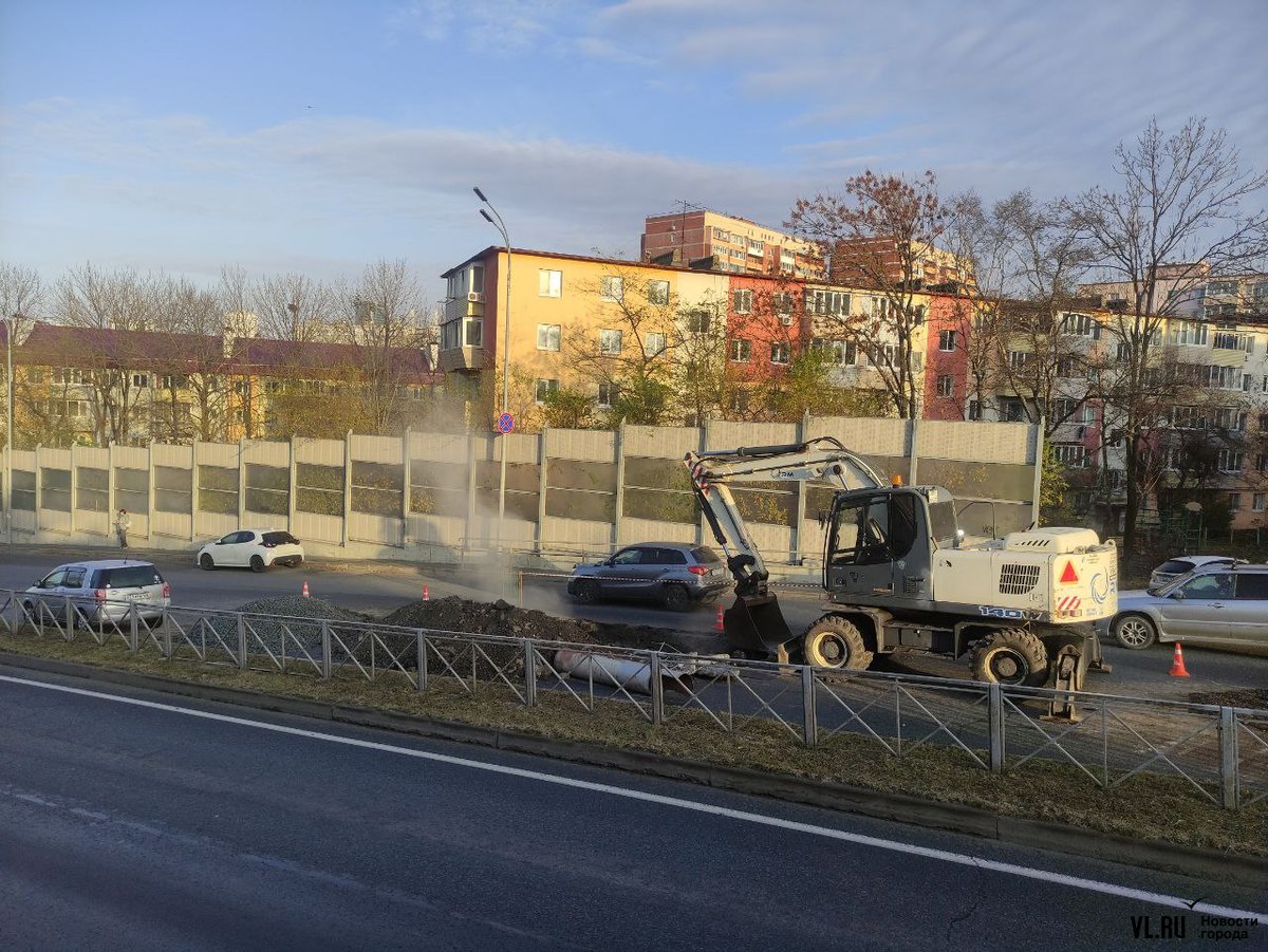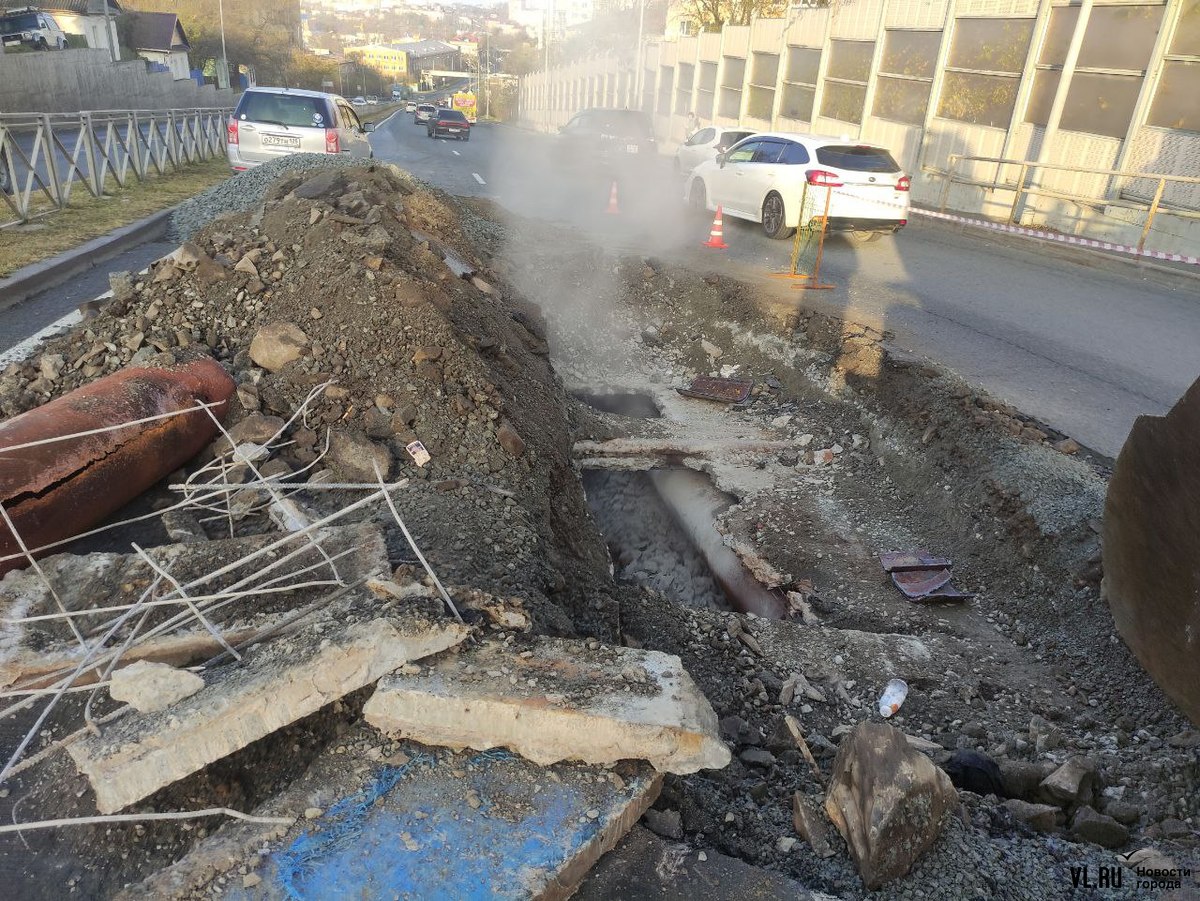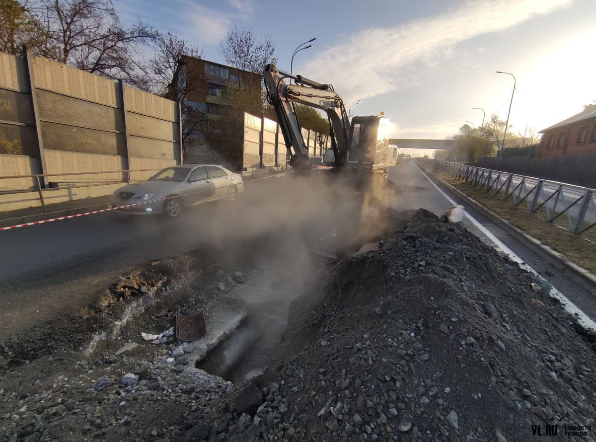 «Сегодня ночью энергетики Приморских тепловых сетей определили место повреждения трубопровода, выполнили земляные работы и начали демонтаж. В настоящее время ведётся замена участка трубопровода диаметром 426 мм и протяжённостью 5 м. Все работы планируется выполнить до конца дня и включить участок в работу. На эффективность теплоснабжения потребителей Владивостока данный участок не повлияет».