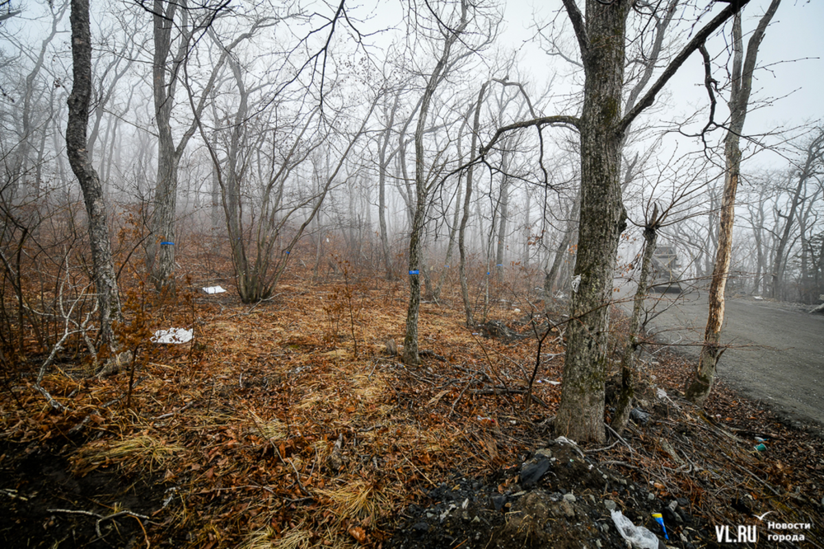 Сейчас же на участке нет никаких следов будущего строительства. Он не огорожен, поэтому вдоль дороги завален мусором. Некоторые деревья помечены синим и жёлтым скотчем. Из разговора с Рамилем кажется, что именно плата за вырубку деревьев сейчас притормаживает процесс.