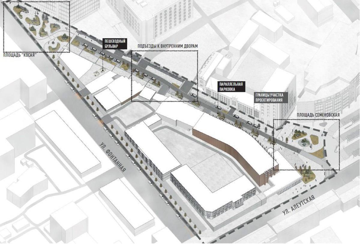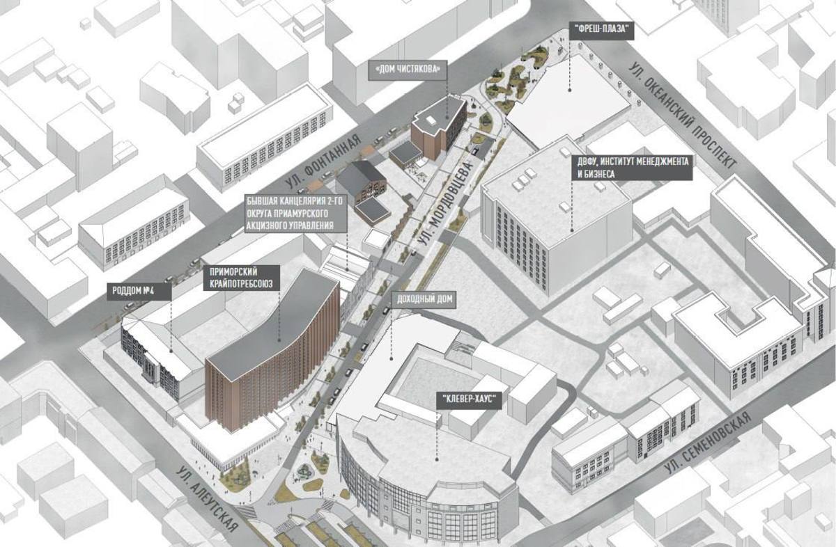 Как сообщает администрация Владивостока, от пересечения с Океанским проспектом до улицы Алеутской может появиться широкая и зелёная пешеходная зона. Рядом с бизнес-центром планируют сделать «Косую» площадь с искусственными холмами, деревьями, тематической инсталляцией. На площади Семёновской сделают прогулочную зону, а напротив Института менеджмента и бизнеса – пешеходный бульвар.