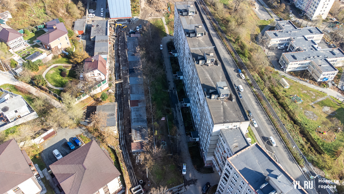 По информации УК «Приморские коммунальные системы» и «Приморские коммунальные технологии» на начало недели, подводящих труб к домам, которые обслуживают эти компании, не было по меньшей мере по 10 адресам – Борисенко, 6, 6а, 30, 32, Нарвская, 6, Никифорова, 4, 16 и 18, Сафонова, 20, 33. По состоянию на 14 октября, труб к домам точно не было на Сафонова, 8, 24, 26, 30, 33, Часовитина, 10, 15, 17, Нарвской, 6 и Новожилова, 25, 27.