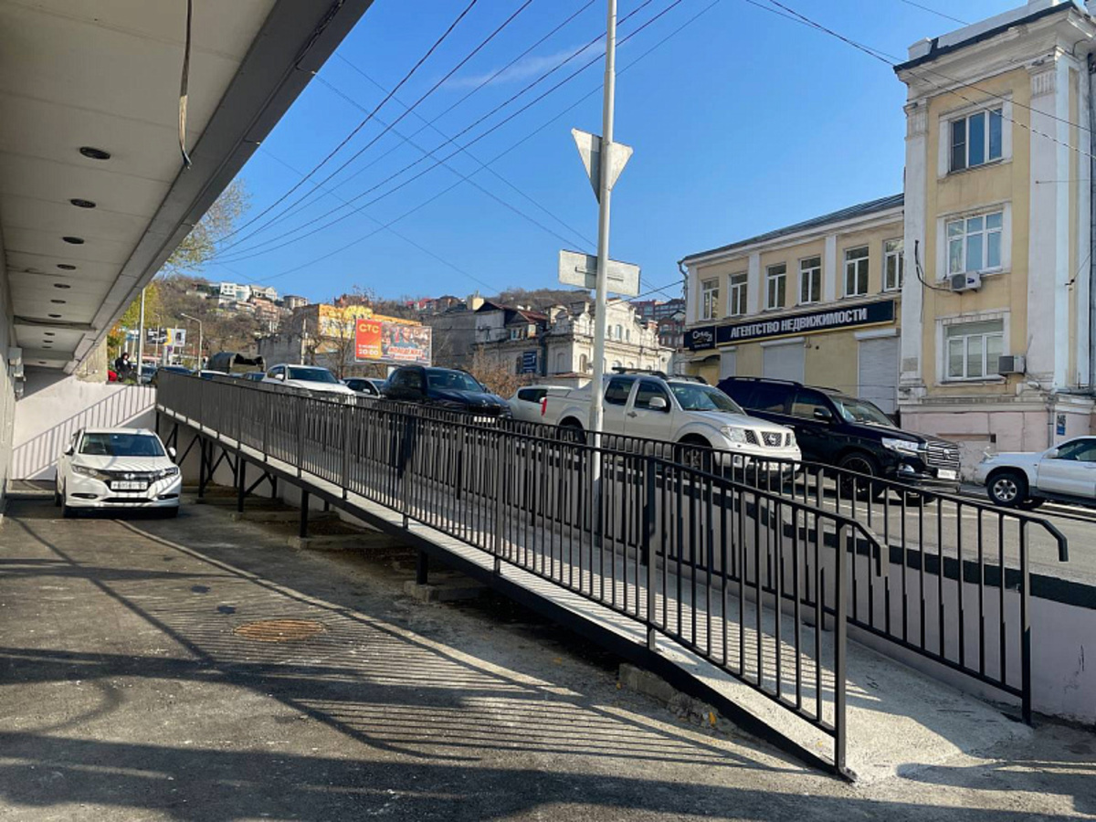Строители завершили обустройство пешеходного пандуса вдоль торца дома по Светланской, 143. Общая протяжённость конструкции составила 25 метров. Местные жители уже пользуются пандусом и находят его удобным – раньше тут приходилось идти по проезжей части на Капитана Шефнера, уворачиваясь от машин.