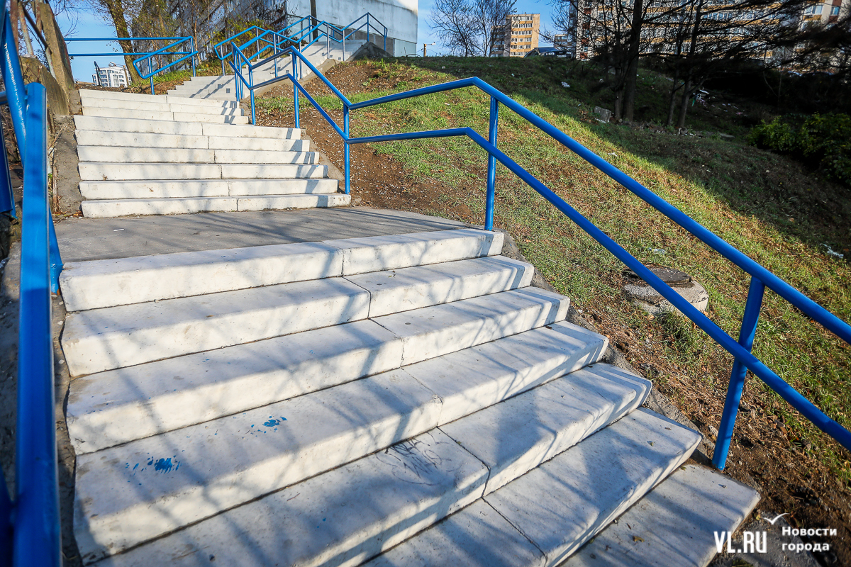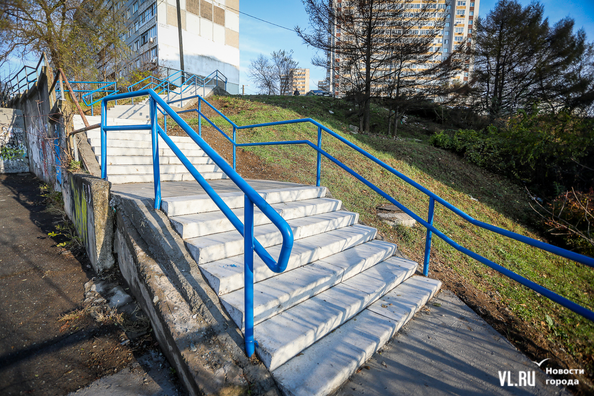 Всего этом году во Владивостоке планируется отремонтировать около 70 лестниц в различных районах города. Среди них более чем по 50 адресам работы уже завершены. Сейчас специалисты подрядных организаций подводят к завершению работы по ремонту лестниц в районе Адмирала Юмашева, 28а, Адмирала Кузнецова, 40а, Невельского, 21 и Кизлярской, 7.
