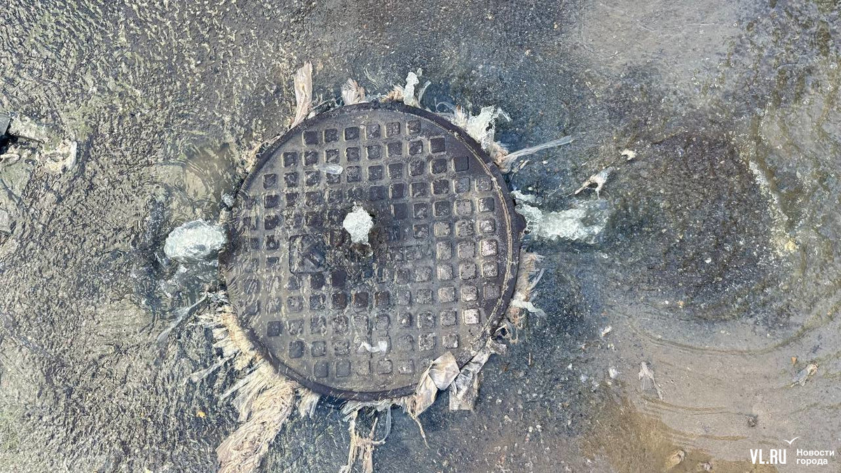 Днём в понедельник, 28 октября, около Майора Филипова, 5 и 7 корреспондент Новостей VL.ru застал очередной засор на сети канализации. Вода мутным потоком льётся из канализационных люков, за крышкой видны обрывки неразлагаемых салфеток. Вода не успевает утекать в ливнёвку, на проезде – большая лужа. Нечистоты раскатывают по округе колёса автомобилей.