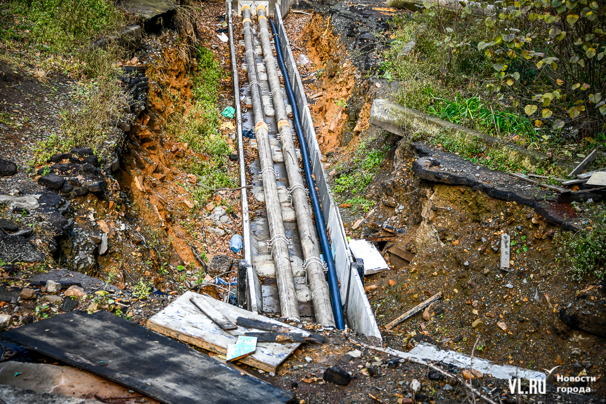 «Ремонт сетей теплоснабжения в рамках реконструкции системы теплоснабжения по улицам: Садовая, Острякова пр-т, Хабаровская производит подрядная организация ООО «Сибэнергомаш», заказчиком которых является МУПВ «ВПЭС». При производстве земляных работ экскаватором были повреждены трубопроводы холодного водоснабжения (диаметром 50 и 63 мм). 26 октября специалистами КГУП «Приморский водоканал» были проведены мероприятия по отключению линии ХВС и замена повреждённого водопровода длиной 2 метра. На текущей момент уставлена временная труба, подача холодного водоснабжения осуществляется в штатном режиме. Специалисты Примводоканала уже проложили постоянную трубу холодного водоснабжения, на следующей неделе будет производиться переврезка бесперебойной подачи воды».