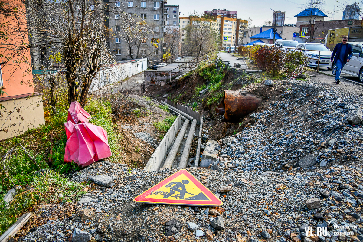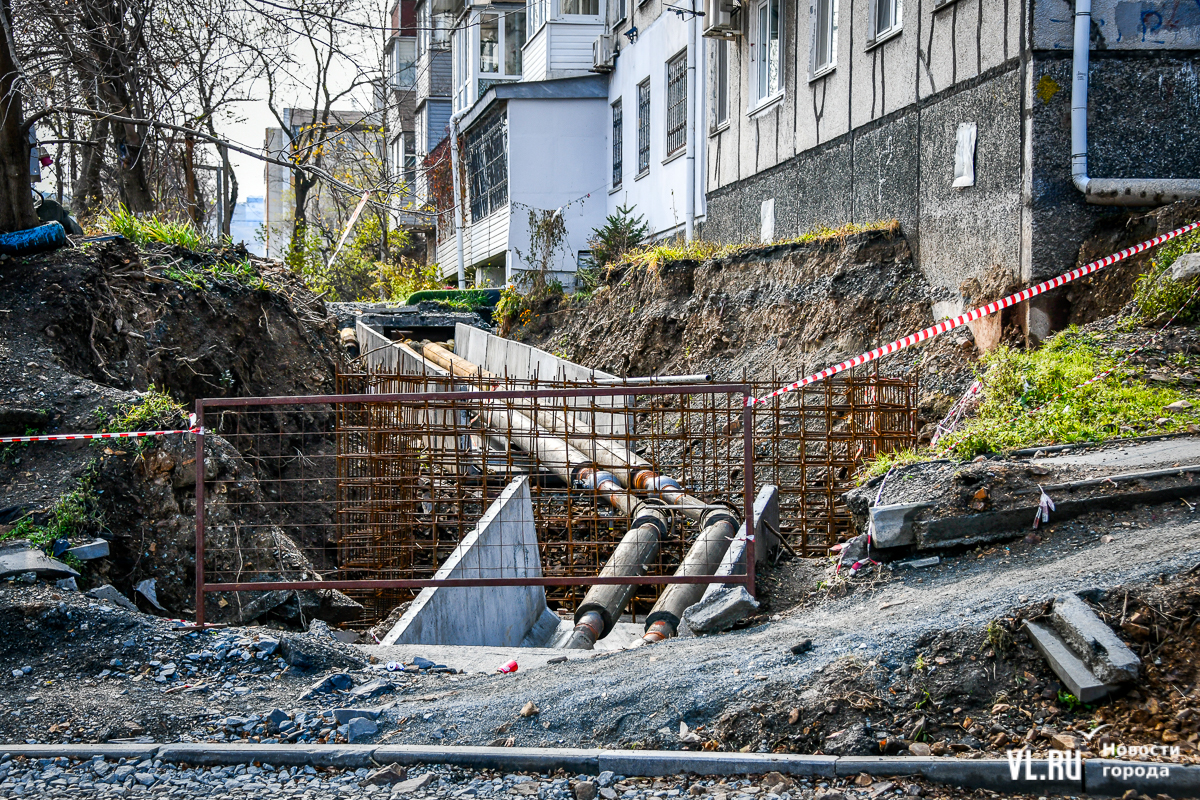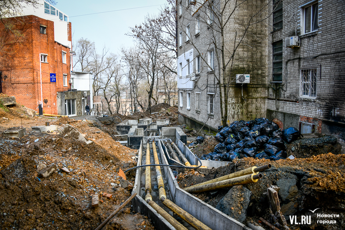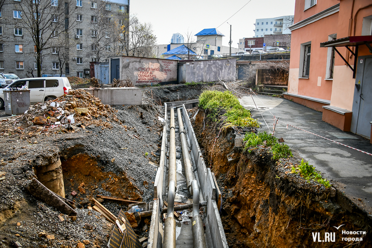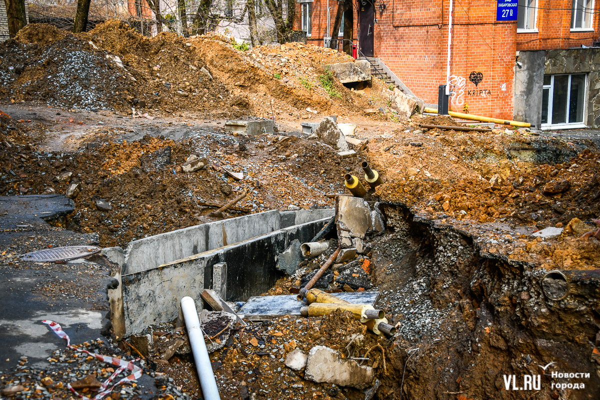 Обновление 19:30: По словам депутата Думы Артёма Володина, который неоднократно выезжал на место проведения работ, все порывы подрядчик фиксировал с ВПЭС и Примводоканалом. Много труб, на которые натыкались рабочие, было не учтено, и вопросы, по его мнению, должны быть к тем, кто составлял схемы и делал экспертизу проекта. Подрядчик также не укладывается в сроки с восстановлением благоустройства. По этому поводу Володин собирается обращаться в прокуратуру и Государственную жилищную инспекцию.