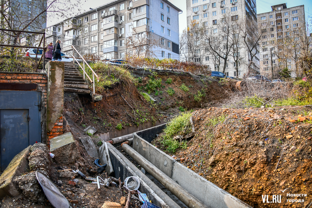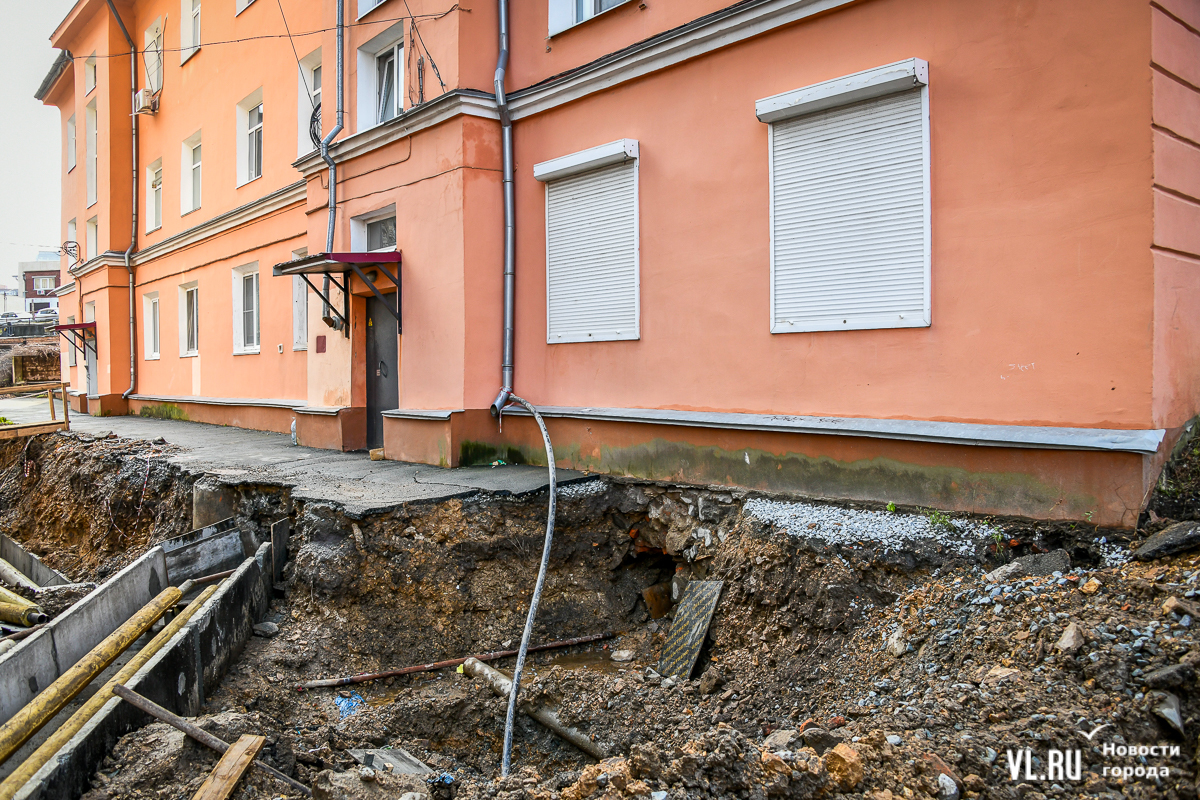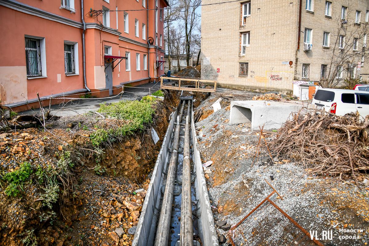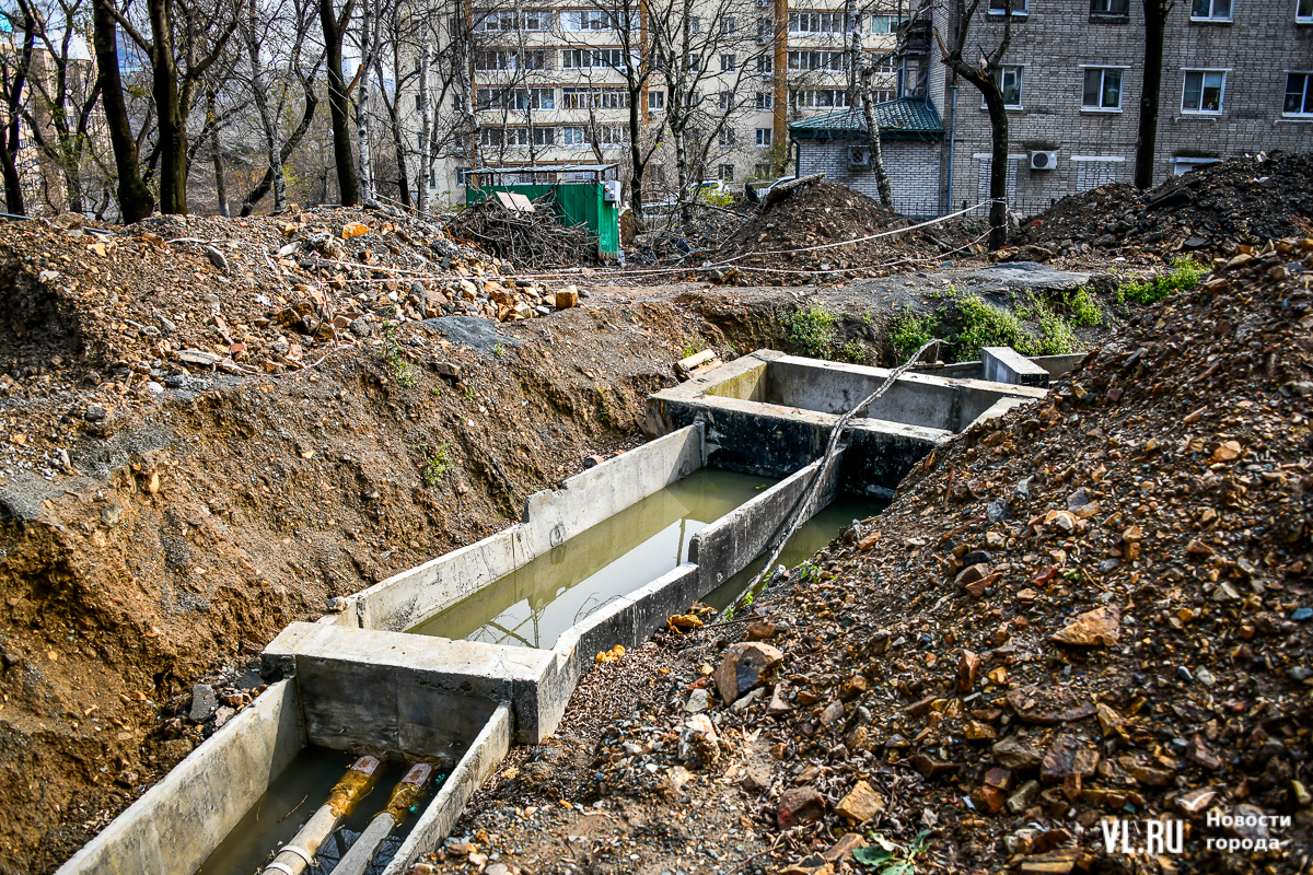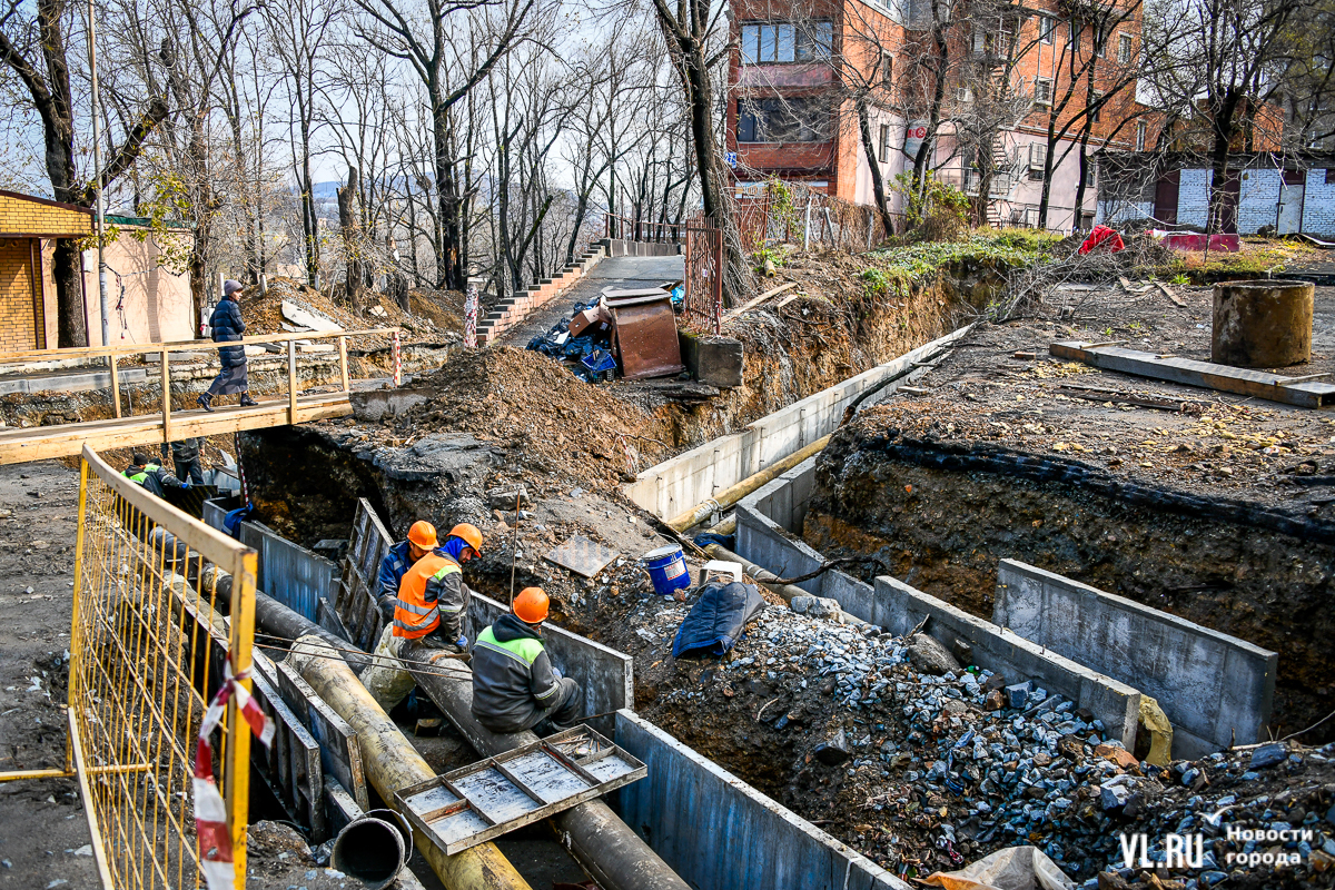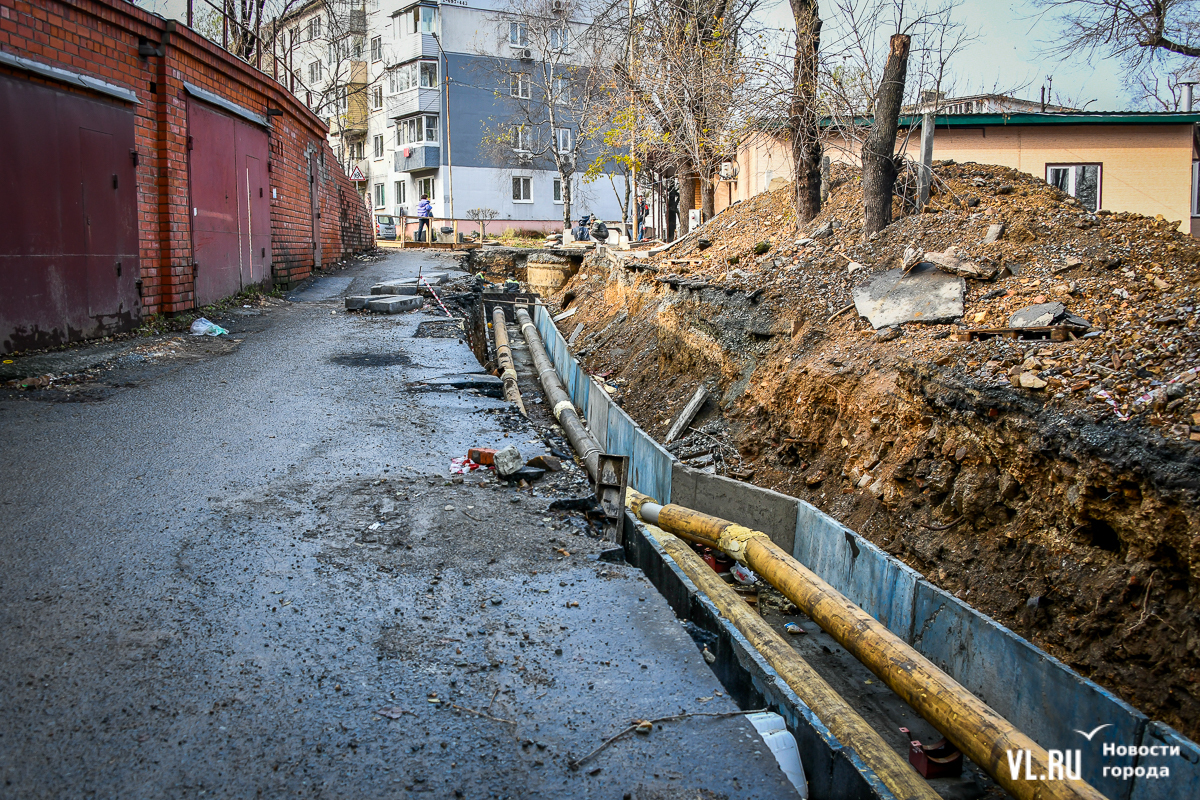 Обновление 19:30: По словам депутата Думы Артёма Володина, который неоднократно выезжал на место проведения работ, все порывы подрядчик фиксировал с ВПЭС и Примводоканалом. Много труб, на которые натыкались рабочие, было не учтено, и вопросы, по его мнению, должны быть к тем, кто составлял схемы и делал экспертизу проекта. Подрядчик также не укладывается в сроки с восстановлением благоустройства. По этому поводу Володин собирается обращаться в прокуратуру и Государственную жилищную инспекцию.