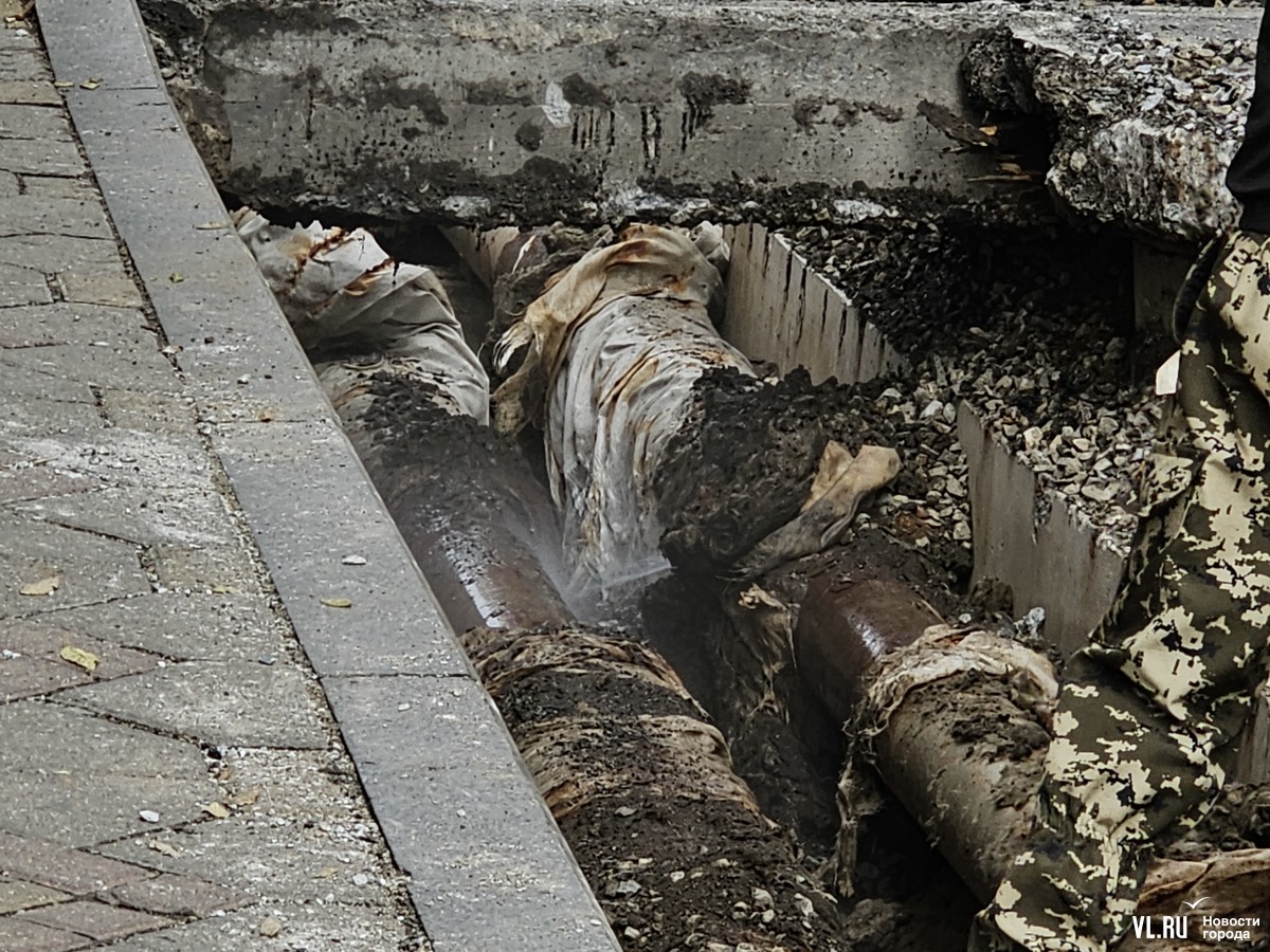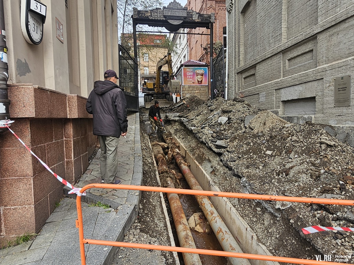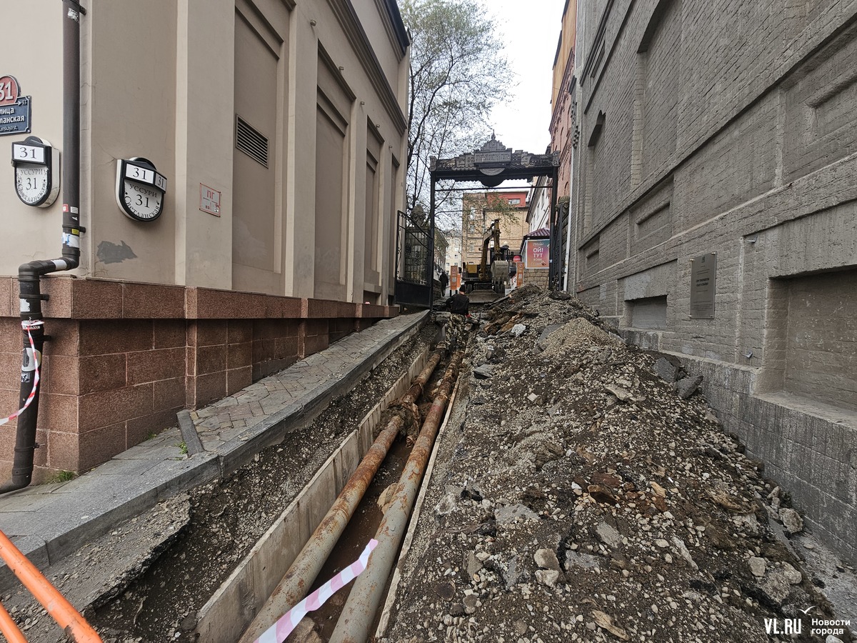 Проезд от Светланской в Старый дворик ГУМа между кинотеатром «Уссури» и зданием универмага раскопали для работы на сетях. Открыт участок, судя по всему, теплотрассы. Причём на одной из труб образовался свищ, из него бьёт струя холодной воды. Но ВПЭС, ДГК и Приморский водоканал говорят, что это не их участок. Кто проводит работы и в какие сроки их завершат, выяснить не удалось, однако на подачу тепла и воды в округе это как будто не повлияло.