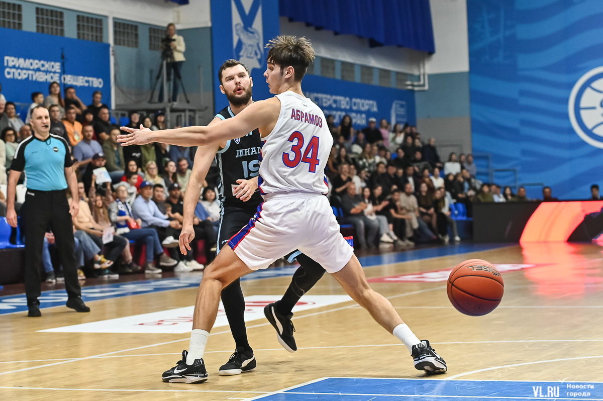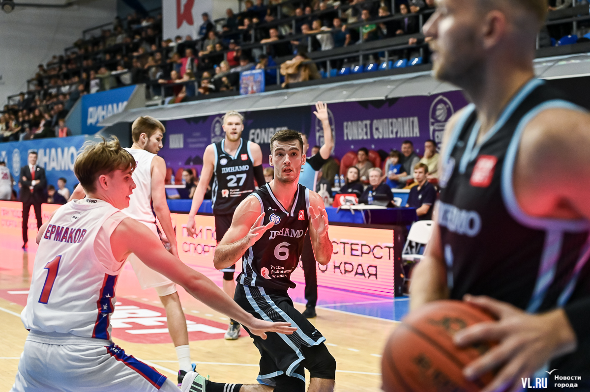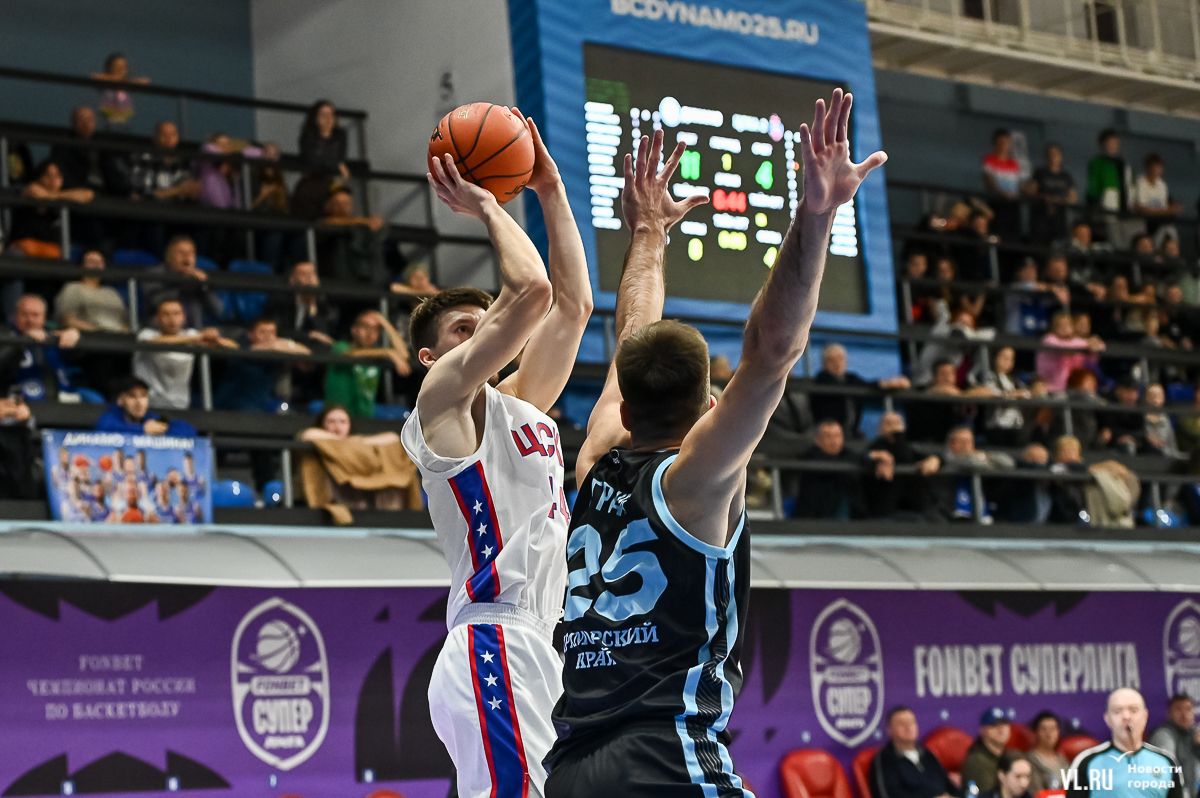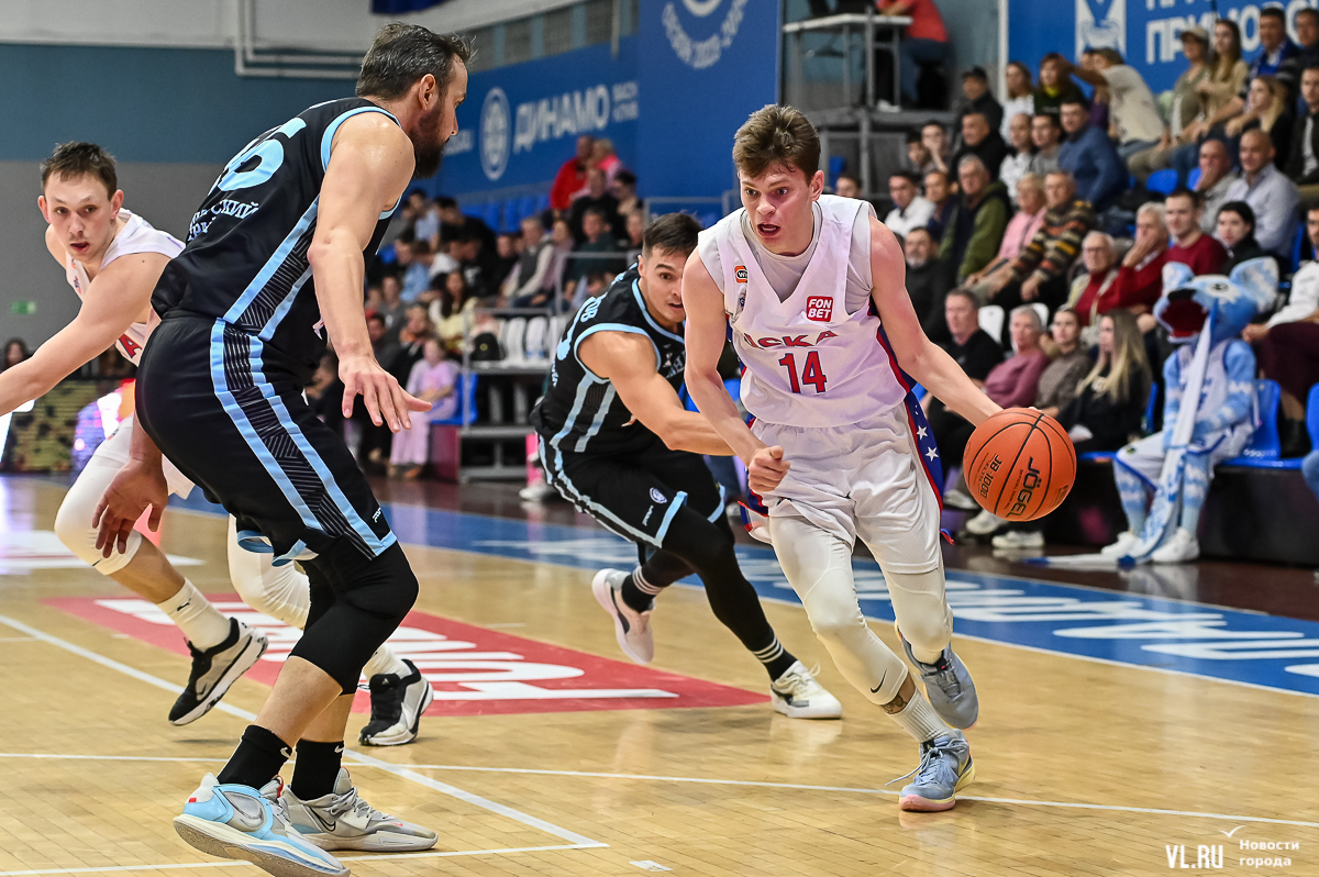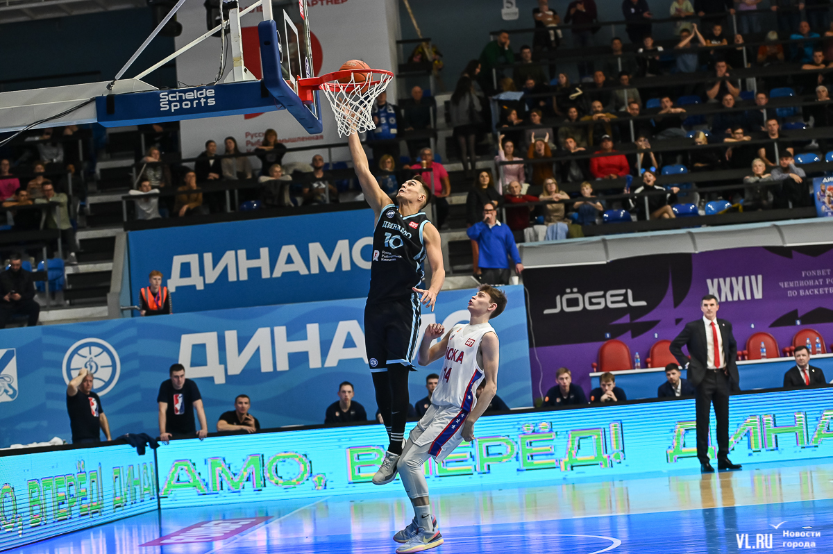 Приморский баскетбольный клуб «Динамо» в нервной концовке матча Суперлиги против ЦСКА-2 упустил лидерство и впервые в сезоне 2024/2025 потерял очки. Встреча во Владивостоке завершилась со счётом 86:90 (27:21, 20:26, 25:20, 14:23) в пользу фарм-клуба московского ЦСКА. Лидером игры стал «армеец» Илья Ермаков (26 очков), лучшим в составе хозяев – Вячеслав Грачёв (20 очков).