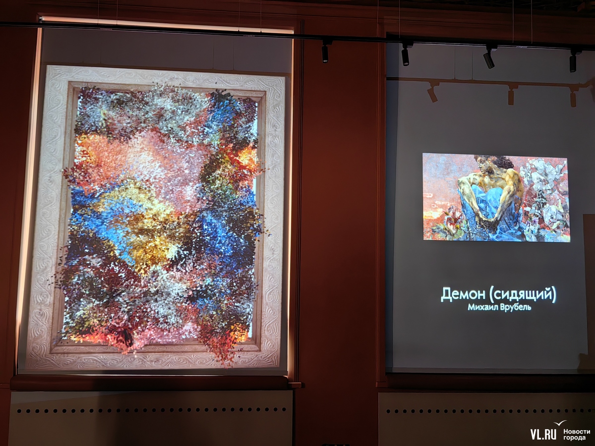 Для инсталляции Влада Дуглас, художница и преподаватель магистерской программы ДВФУ «Цифровое искусство», использовала шесть общеизвестных картин XIX-XX веков: «Золотая осень» И. Левитана, «Купание красного коня» К. Петрова-Водкина, «Демон» М. Врубеля, «Композиция VII» В. Кандинского, «Вихрь» Ф. Малявина и «Рожь» И. Шишкина.