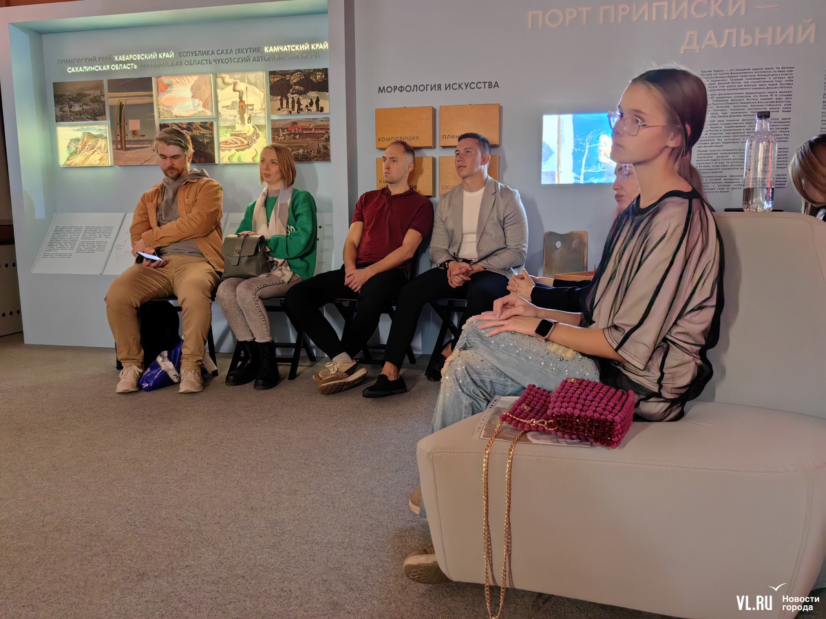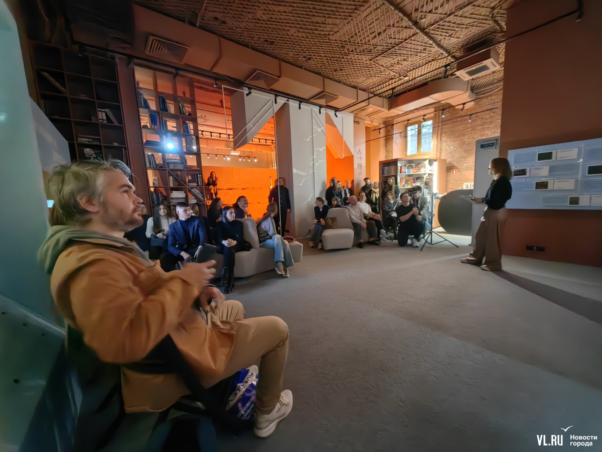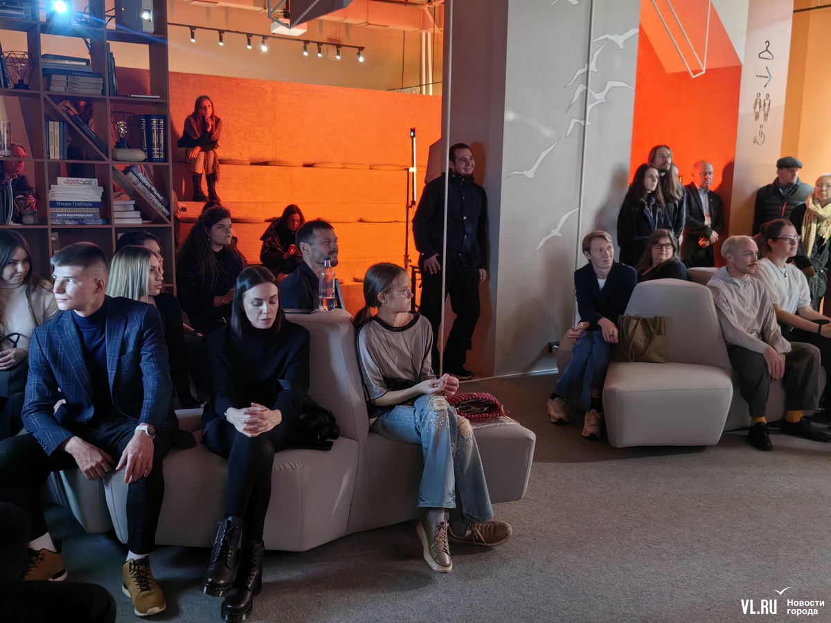 Зрители на презентации явно знали толк не только в искусстве в общем, но и в современных тенденциях. И потому после выступления художницы принялись фотографироваться на фоне экрана и с бликами современного диджитал-арта на лицах.