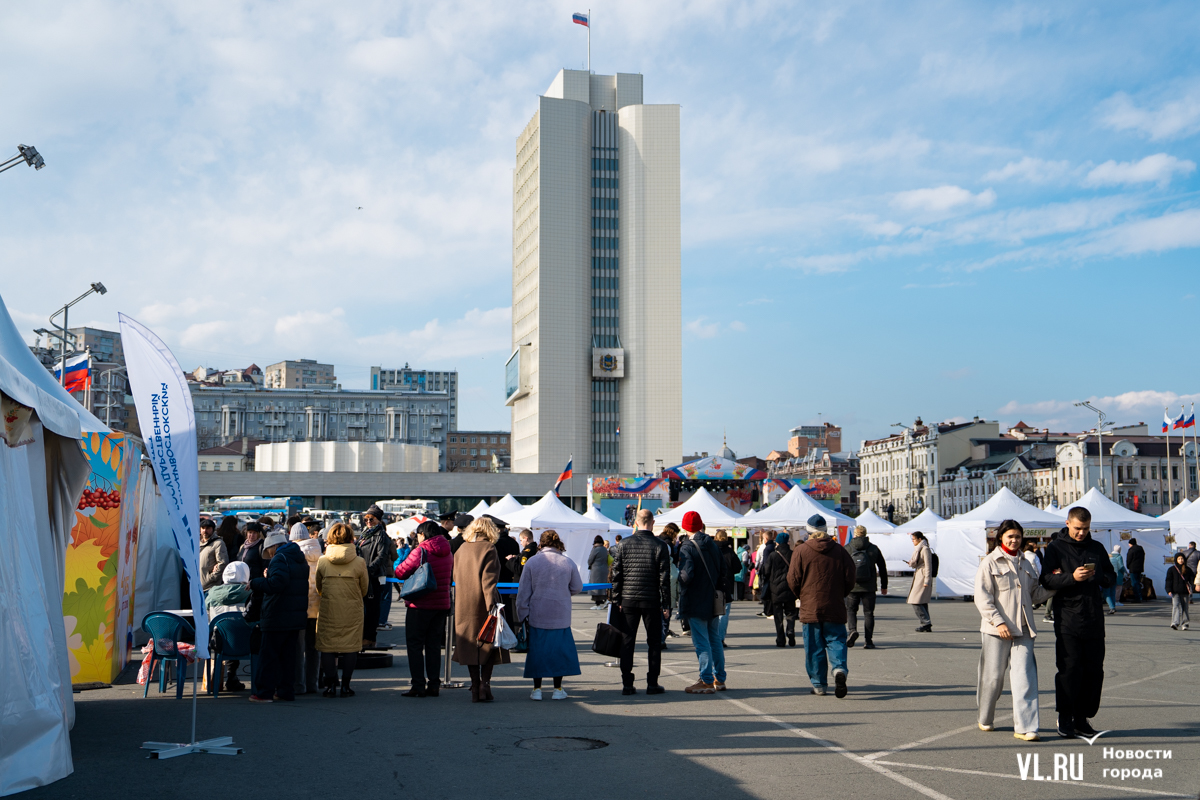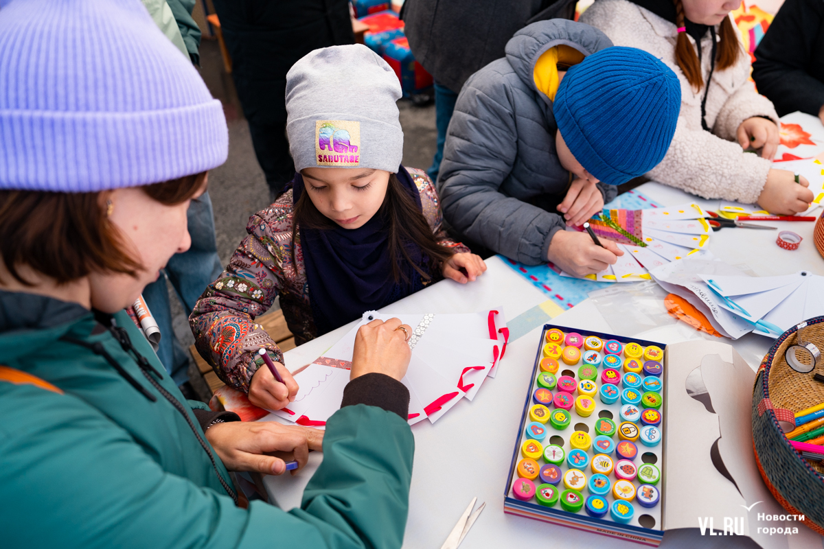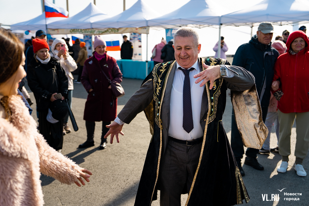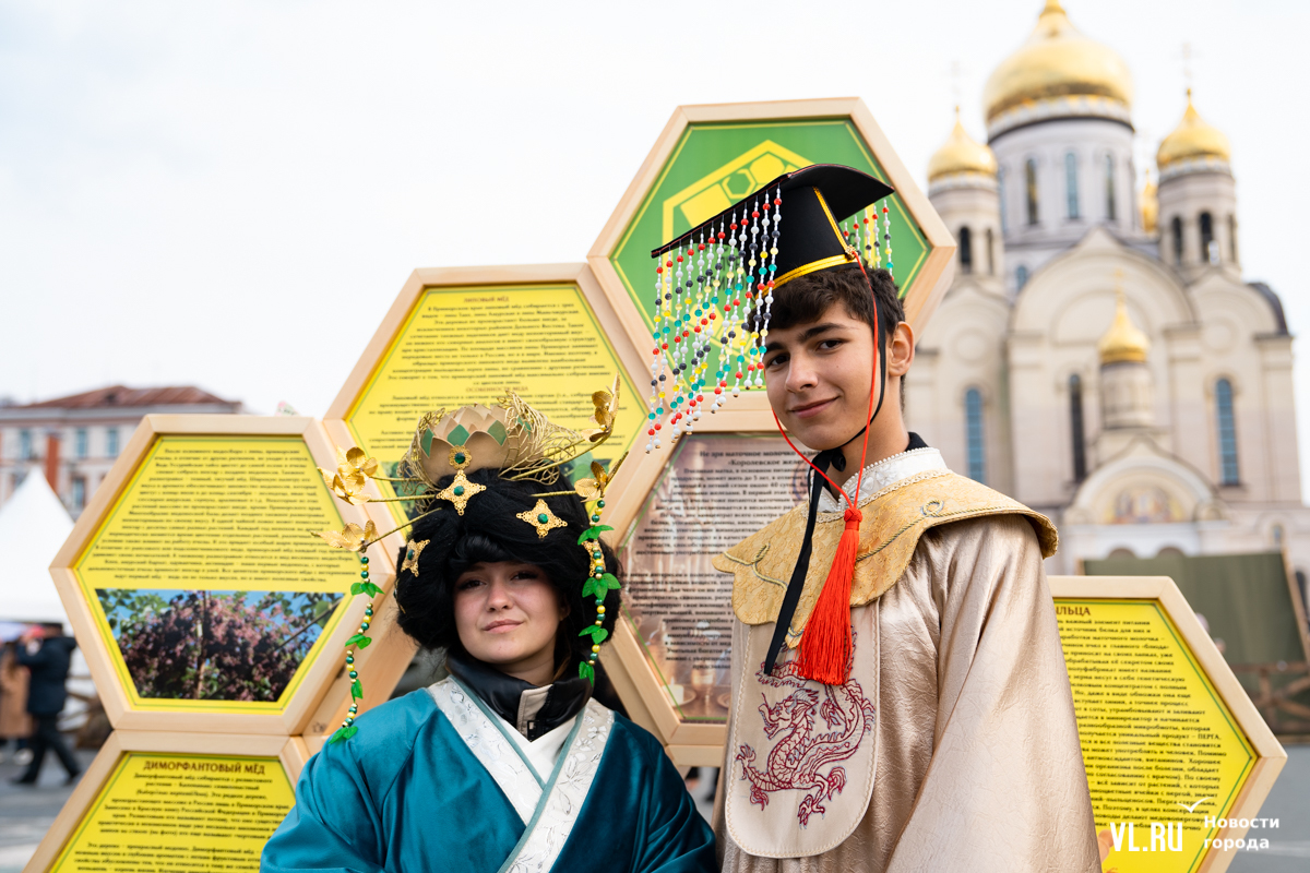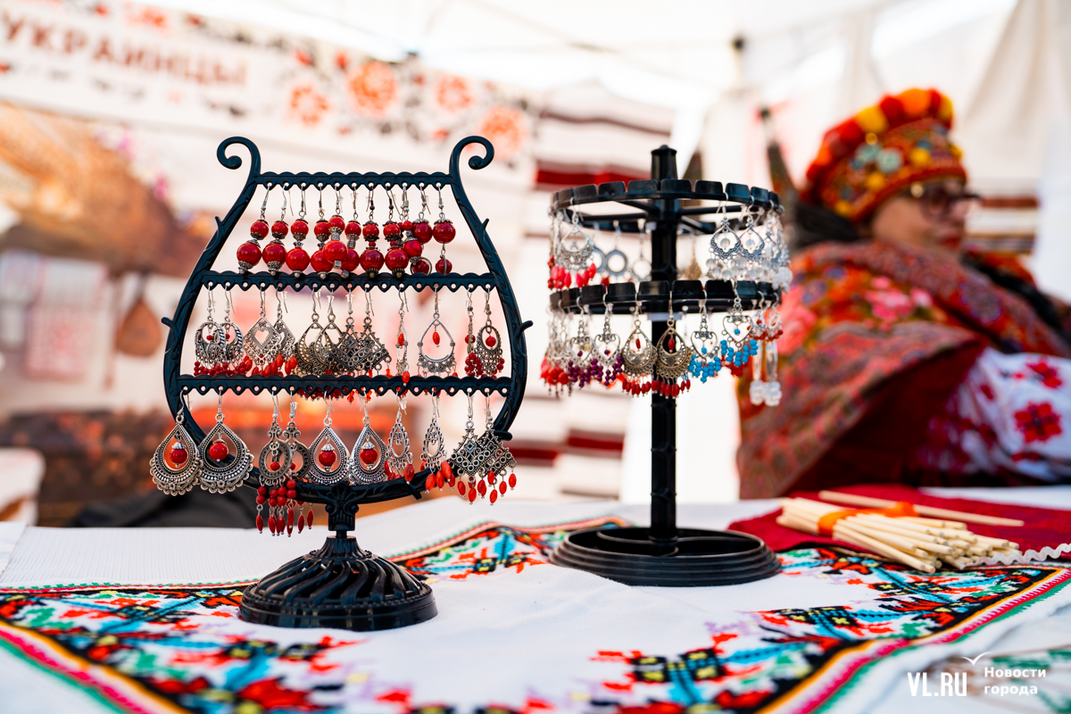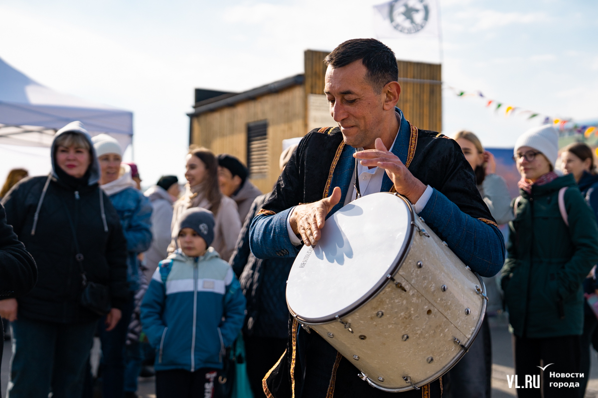 В понедельник, 4 ноября, по всей России отмечают День народного единства, во Владивостоке основной праздничной площадкой стала центральная площадь. Здесь встали десятки тематических палаток, средневековая деревня и большая сцена, где выступали народные коллективы. Казалось, что именно музыка объединила людей. В пляс пустились узбеки в золотых расшитых нарядах, неподалёку от них танцевали азербайджанцы под живой аккомпанемент народных инструментов, а ближе к сцене кружили хороводы и пели «Катюшу».