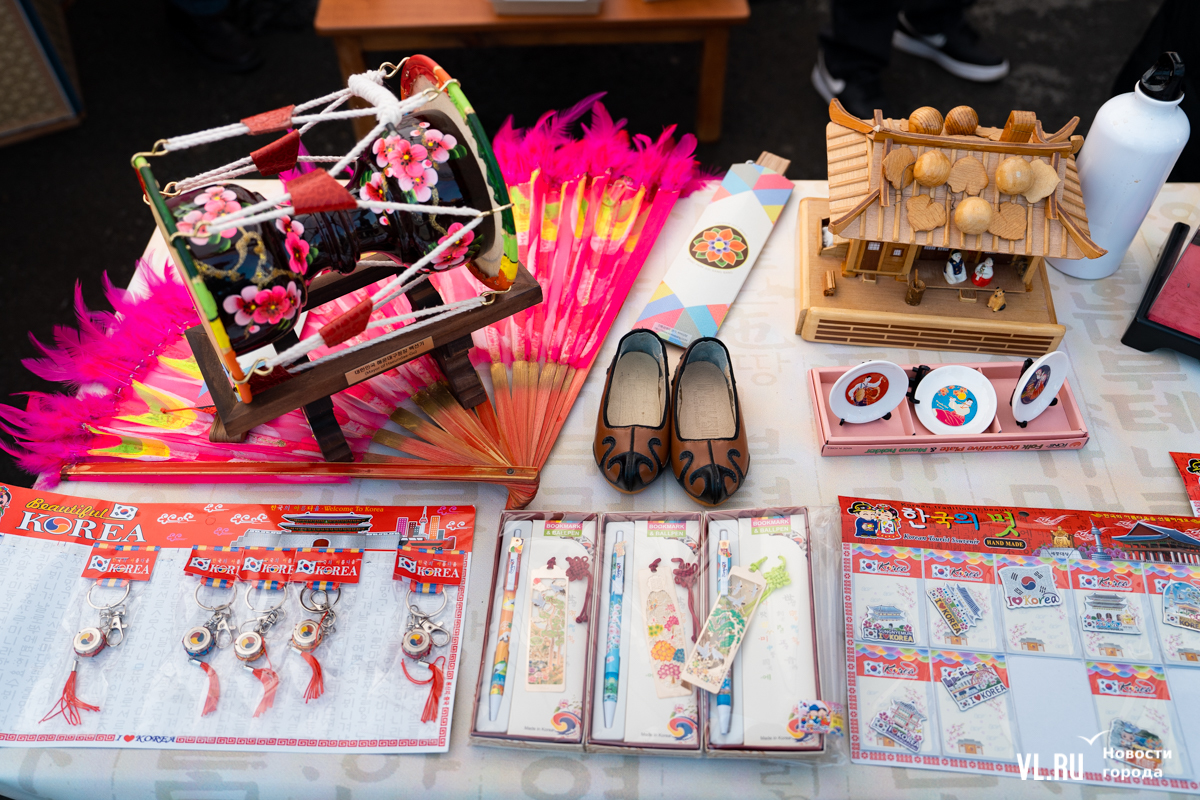 «Это просто веер для украшения, он бумажный. Мы его раскрытым делаем, закрепляем рёбра и украшаем скотчем и штампиками. Это не какая-то технология, популярная в Корее. Просто сама традиция веера идёт из Кореи», – рассказали в палатке корейцев.