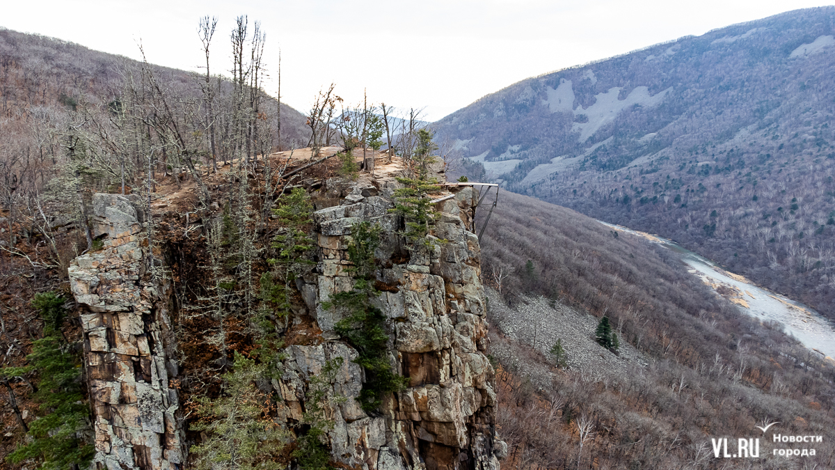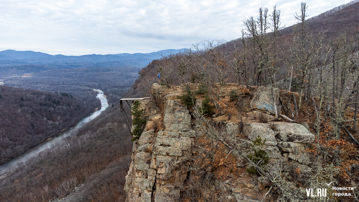 Преодолев валуны, мы вышли на скалу и через пять минут оказались перед многометровым обрывом. Это и была скала Замок Принцессы. На краю обрыва установлен небольшой деревянный помост, который используют любители острых ощущений для прыжков на верёвке или роупджампинга. В остальное время это одно из любимых мест для фотосессий у туристов, хоть и очень опасное. Правила безопасности гласят, что на помост нельзя выходить без страховки и присмотра инструктора.